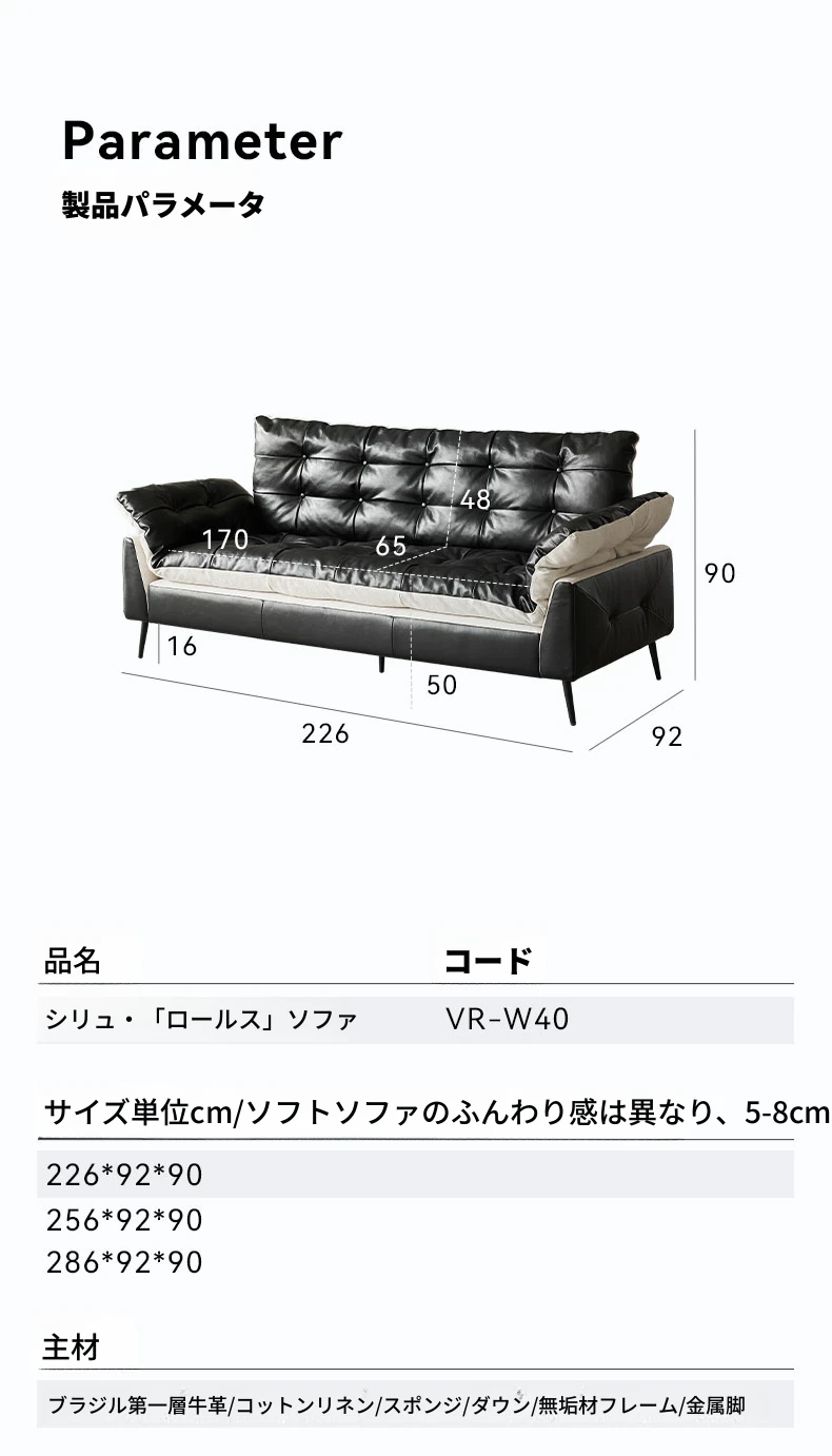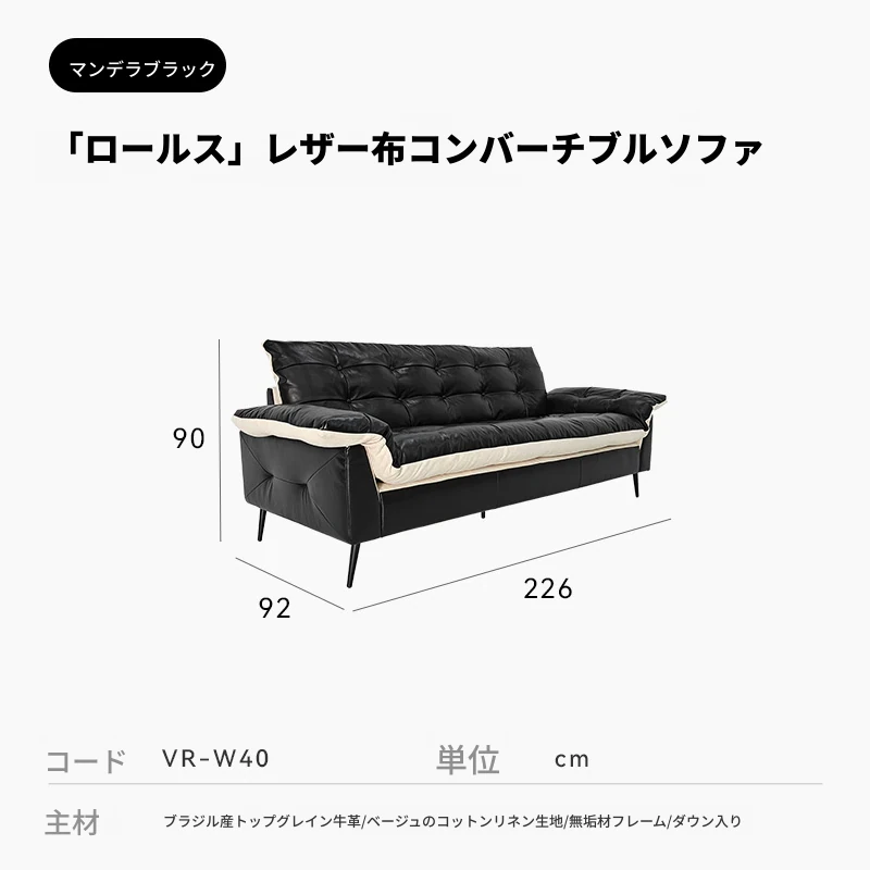 「ロールス」2.26メートルソファ(合皮・布両用/マンドラゴラブラック)【定価16999元、特価9999元】