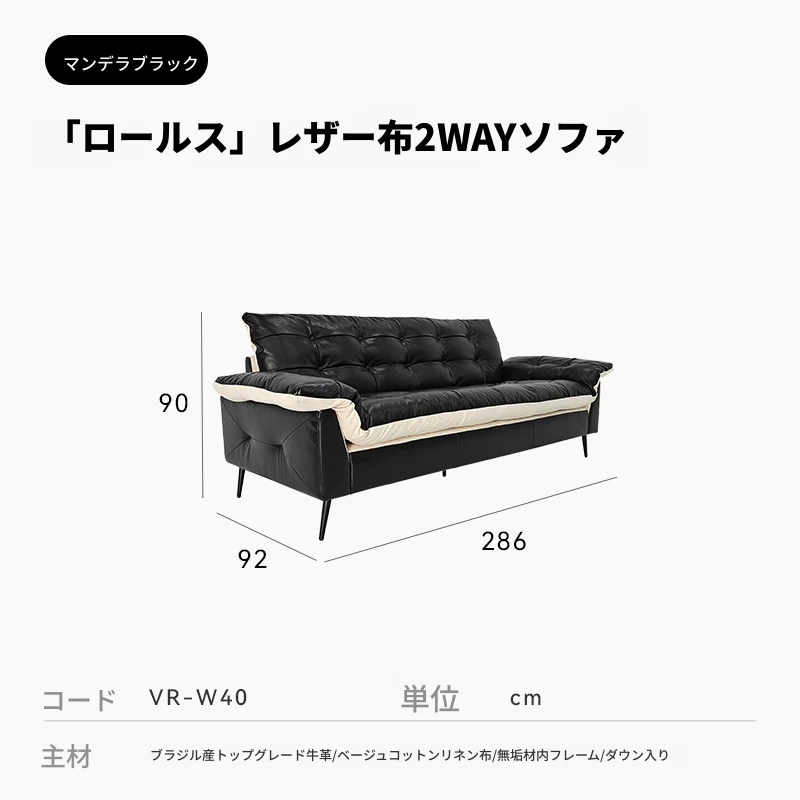 「ロールス」2.86メートルソファ(分割、合皮・布両用/マンドラゴラブラック)【定価19999元、特価11999元】