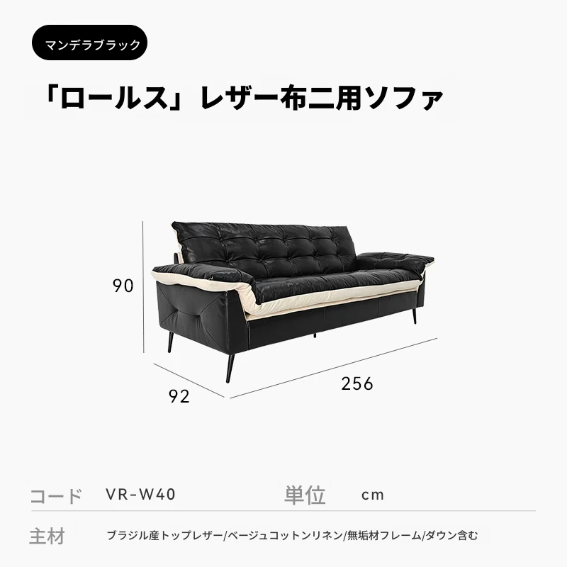 「ロールス」2.56メートルソファ(分割、合皮・布両用/マンドラゴラブラック)【定価18999元、特価10999元】