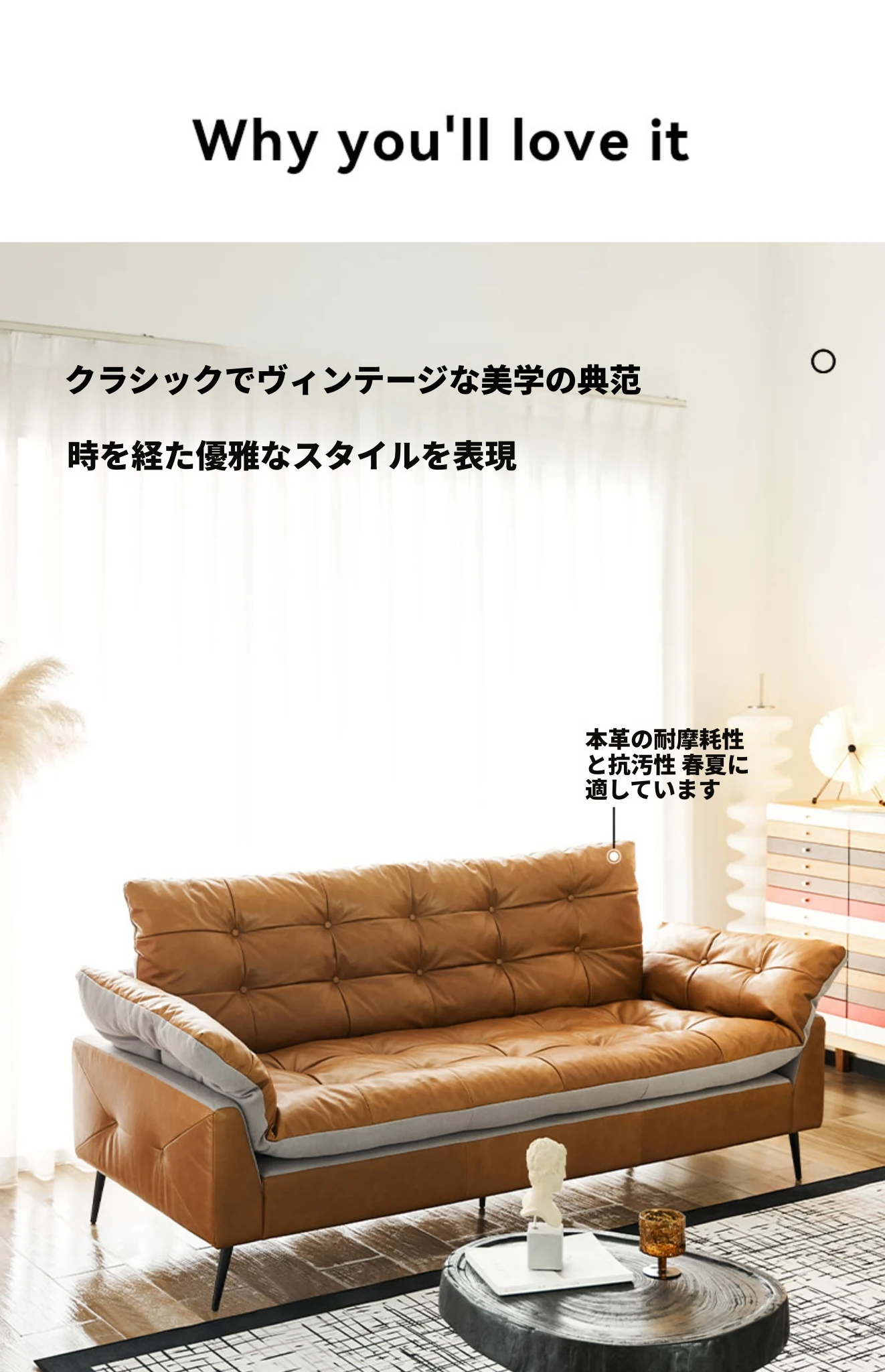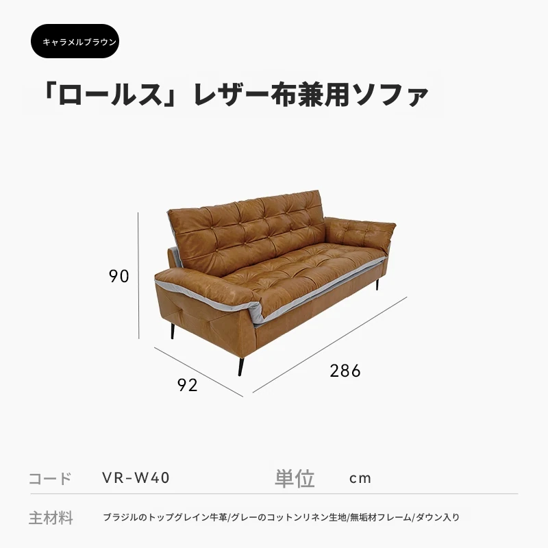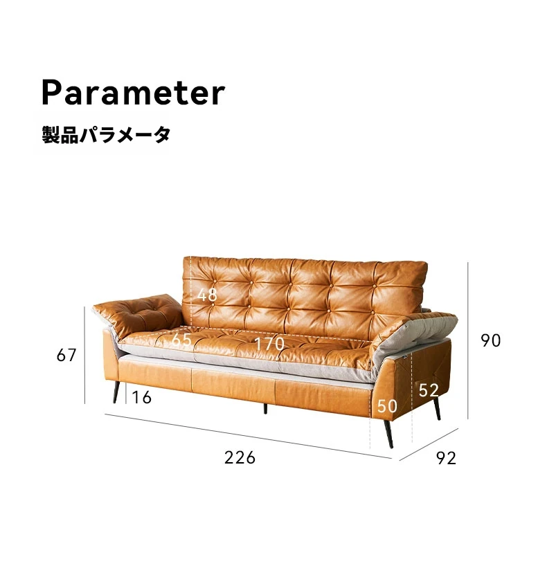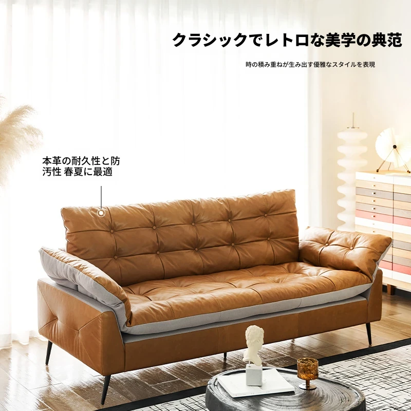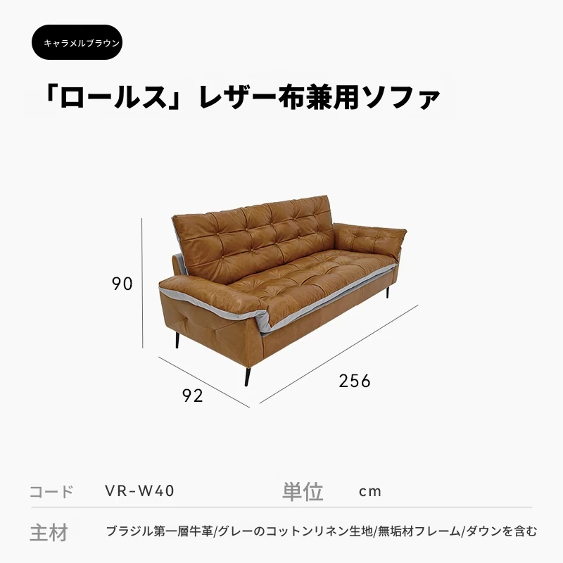 「ロールス」2.56メートルソファ(分割式、合皮/キャラメルブラウン)【定価18999元、特価10999元】