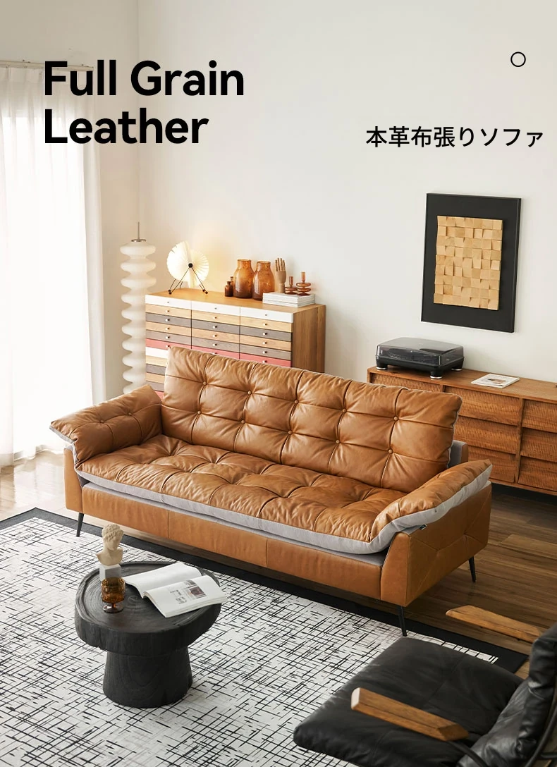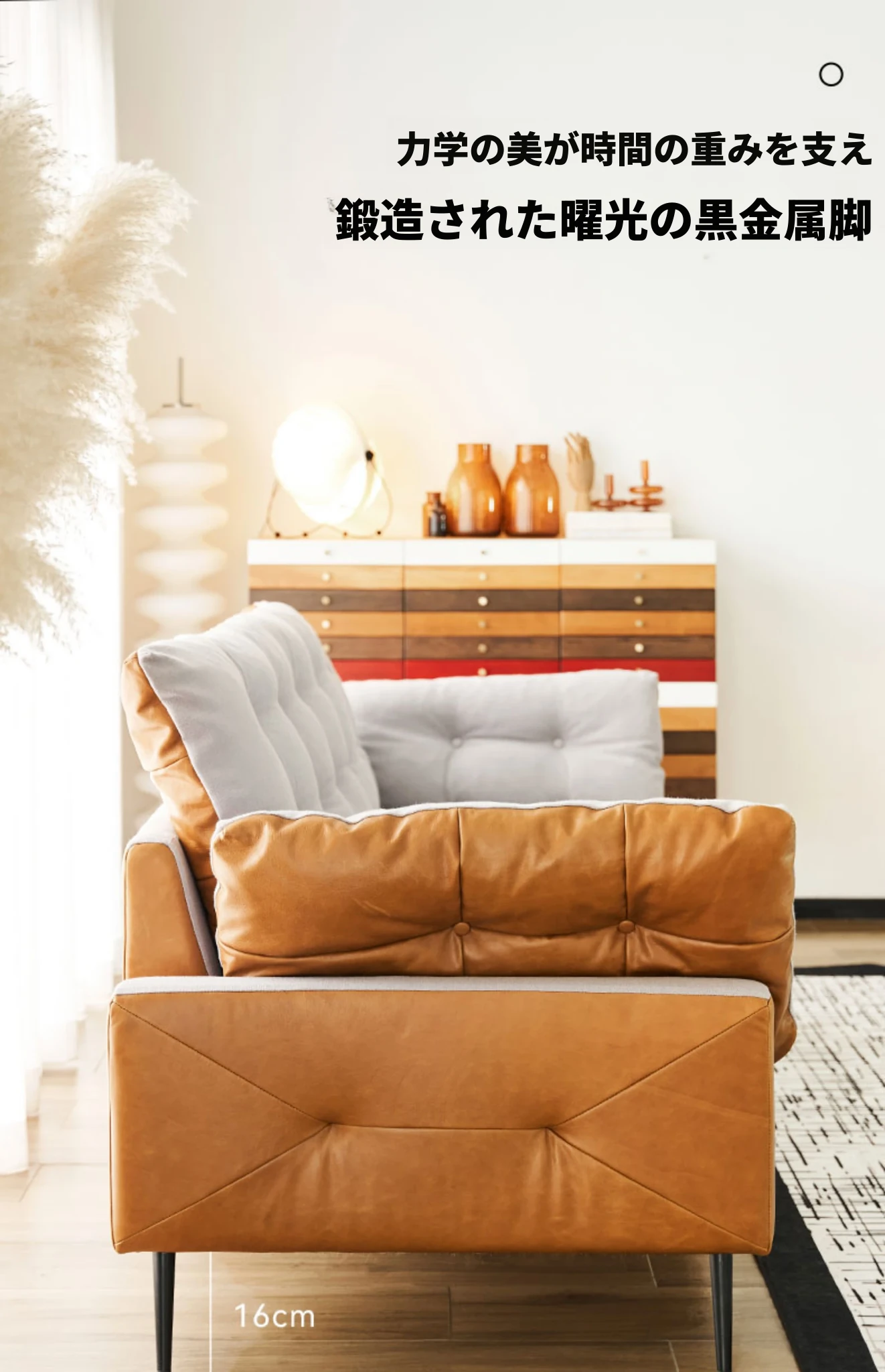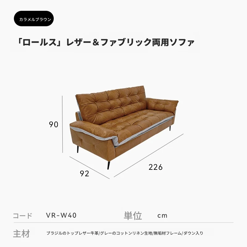「ロールス」2.56メートルソファ(分割式、合皮/キャラメルブラウン)【定価18999元、特価10999元】