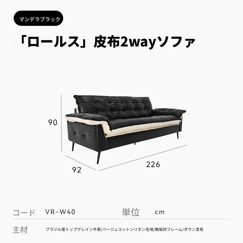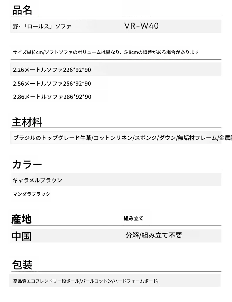 「ロールス」2.56メートルソファ(分割式、合皮/マンダラブラック)【定価18999元、特価10999元】