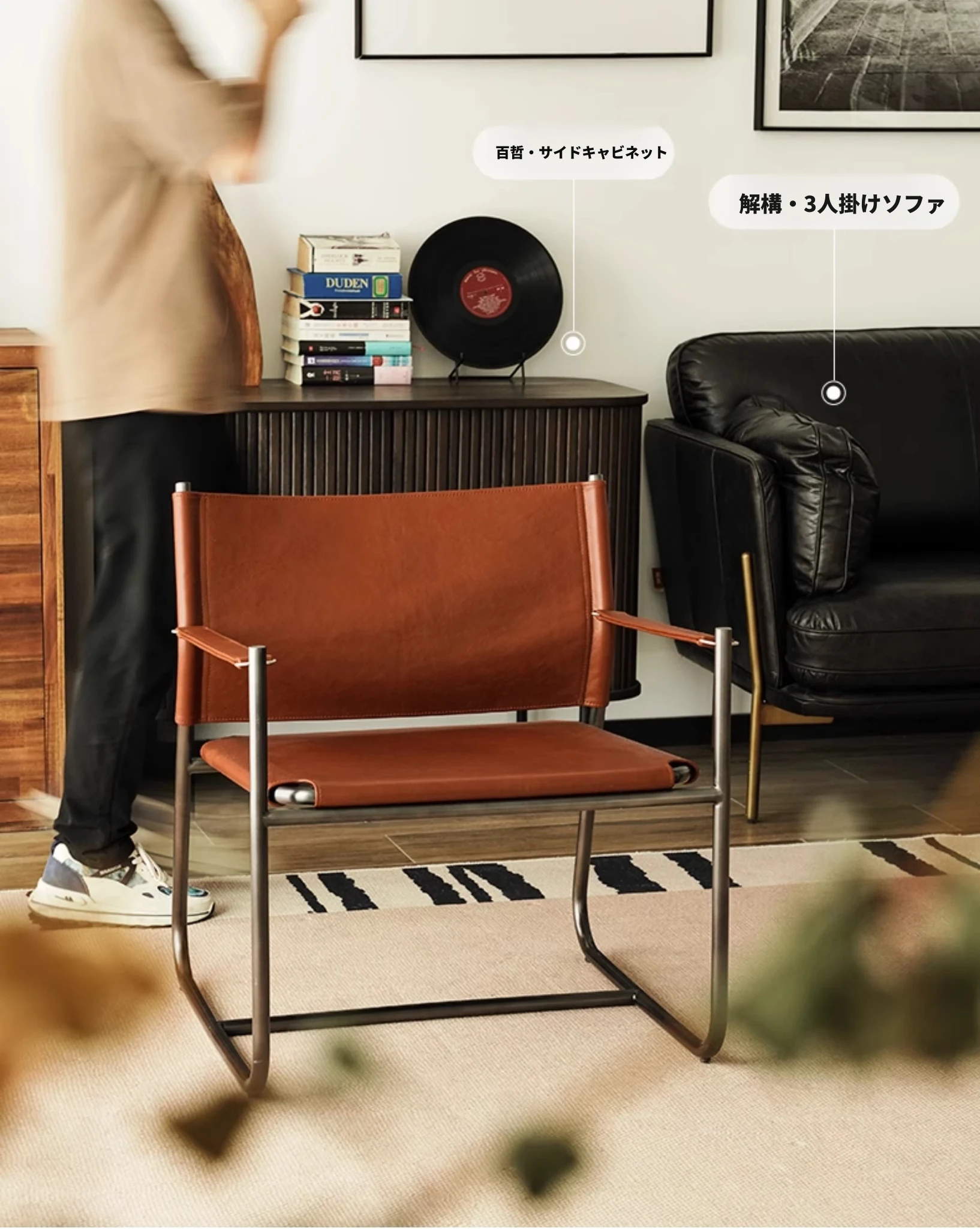 DOJUSリゾートスタイル/ダスレジャーチェア/ブックチェア ヴィンテージ本革ソファチェア 北欧風リビングルームにぴったりなレトロバウハウスデザイン!快適さとスタイルを両立した一品です。