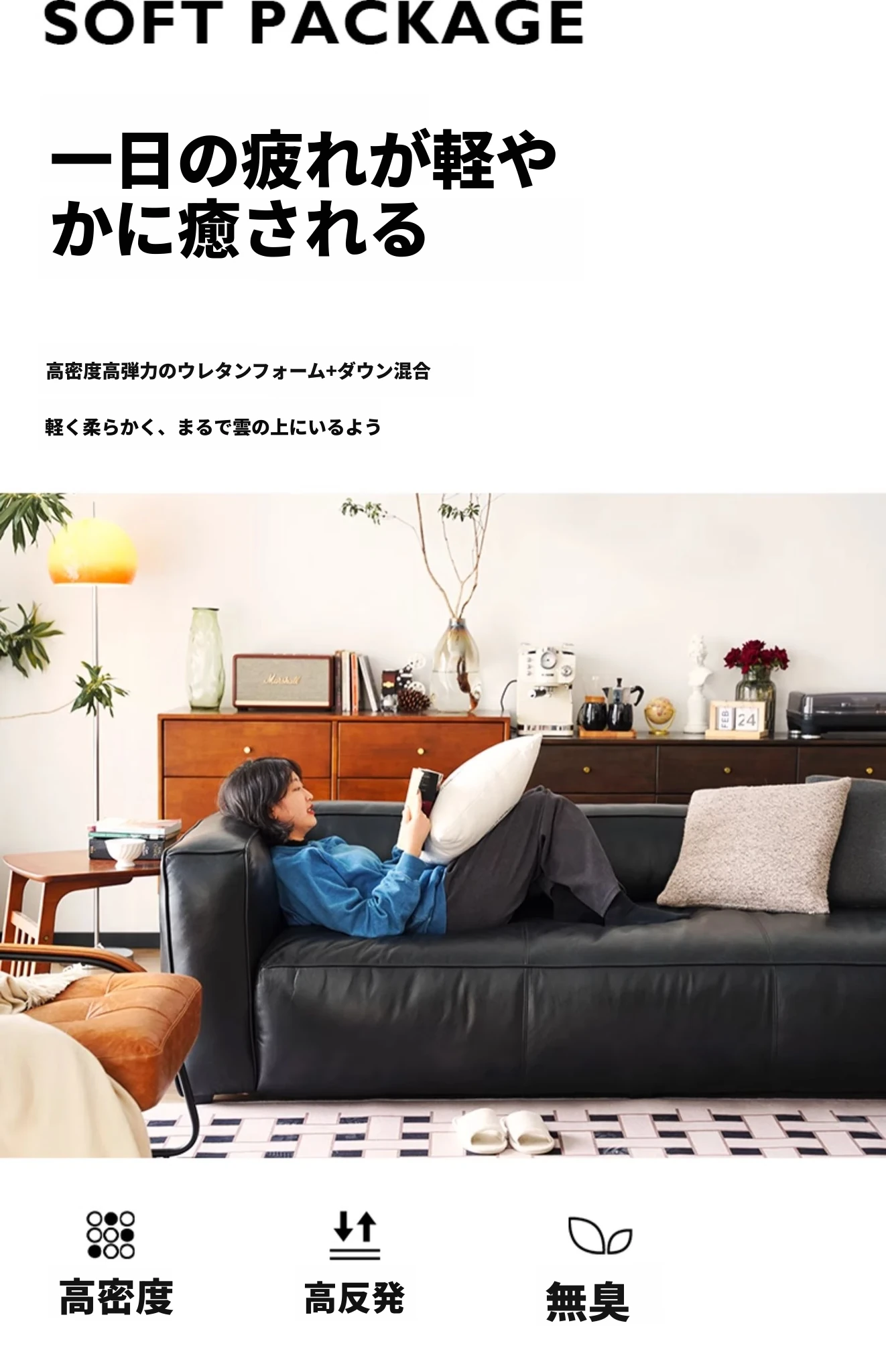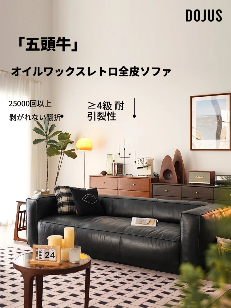 DOJUSリゾートスタイル 北欧本革ソファ レトロトップグレイン牛革 3人掛け リビング用イタリアンライトラグジュアリーソファで、贅沢なひとときをお楽しみください!