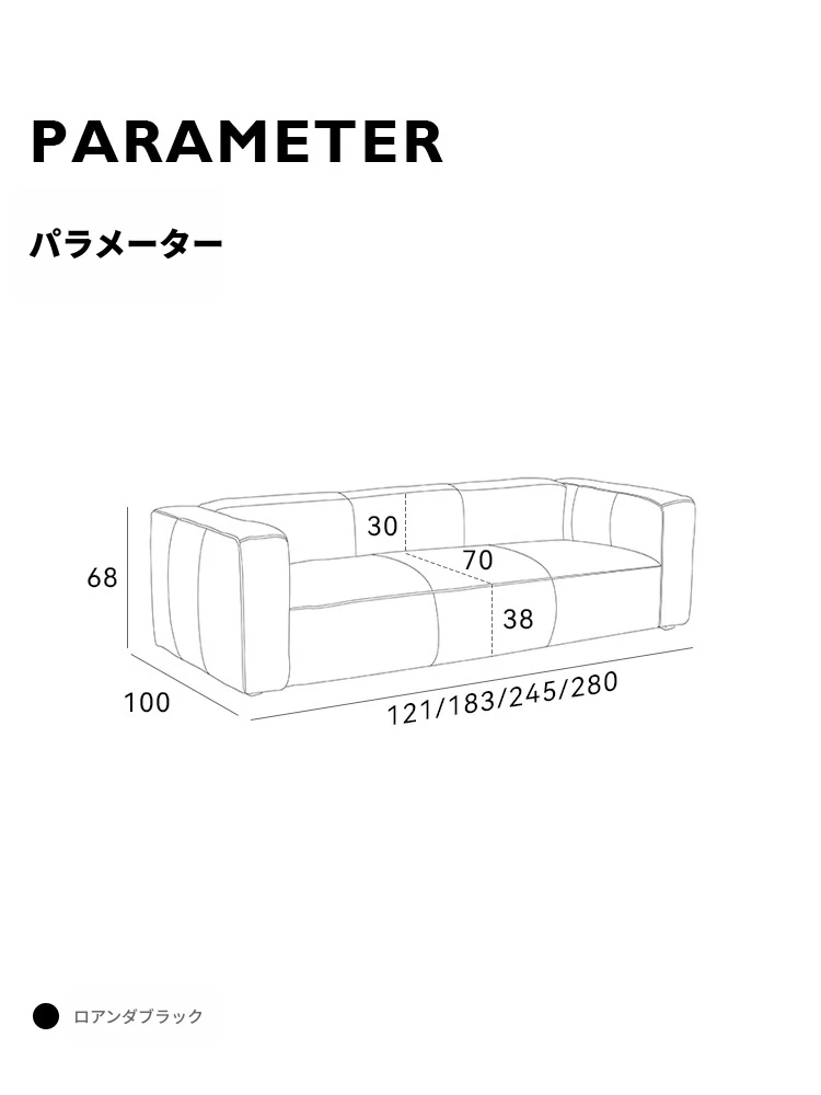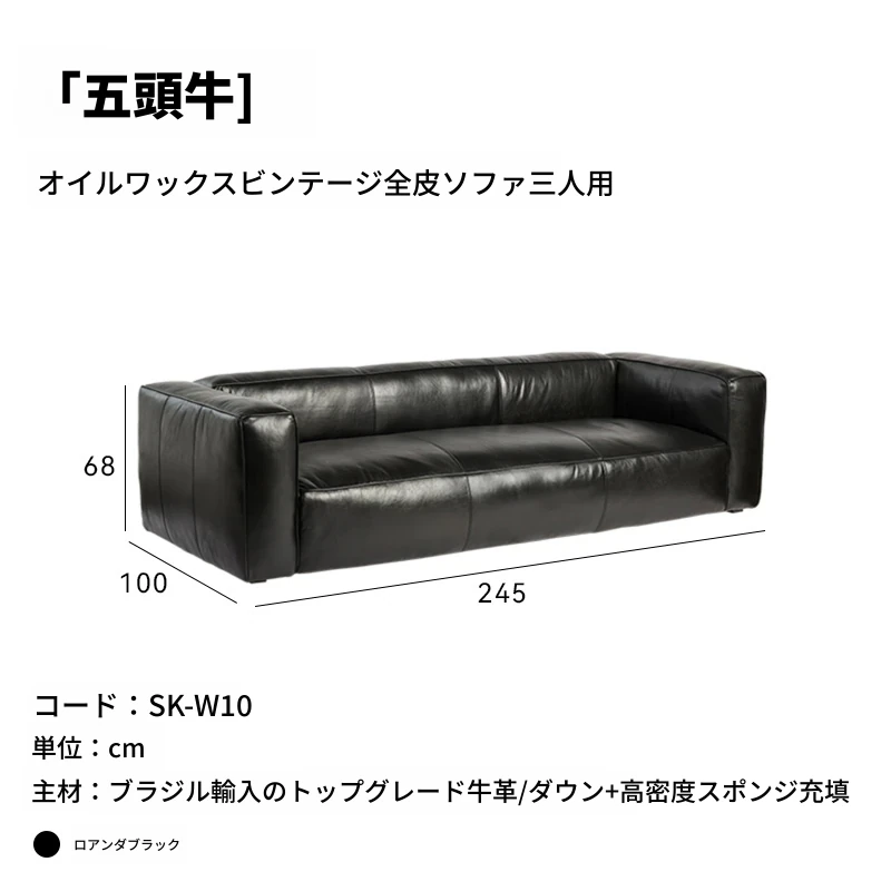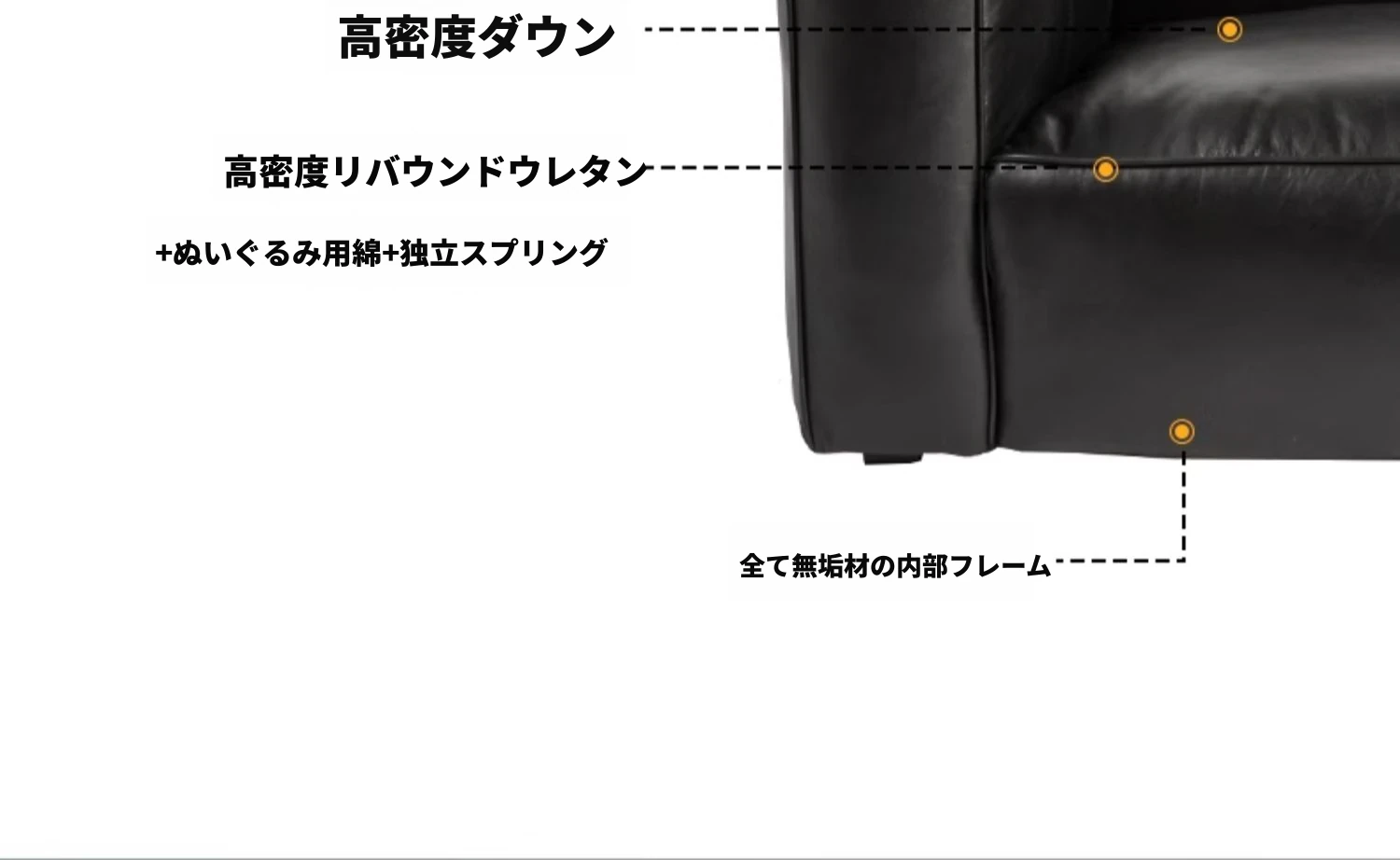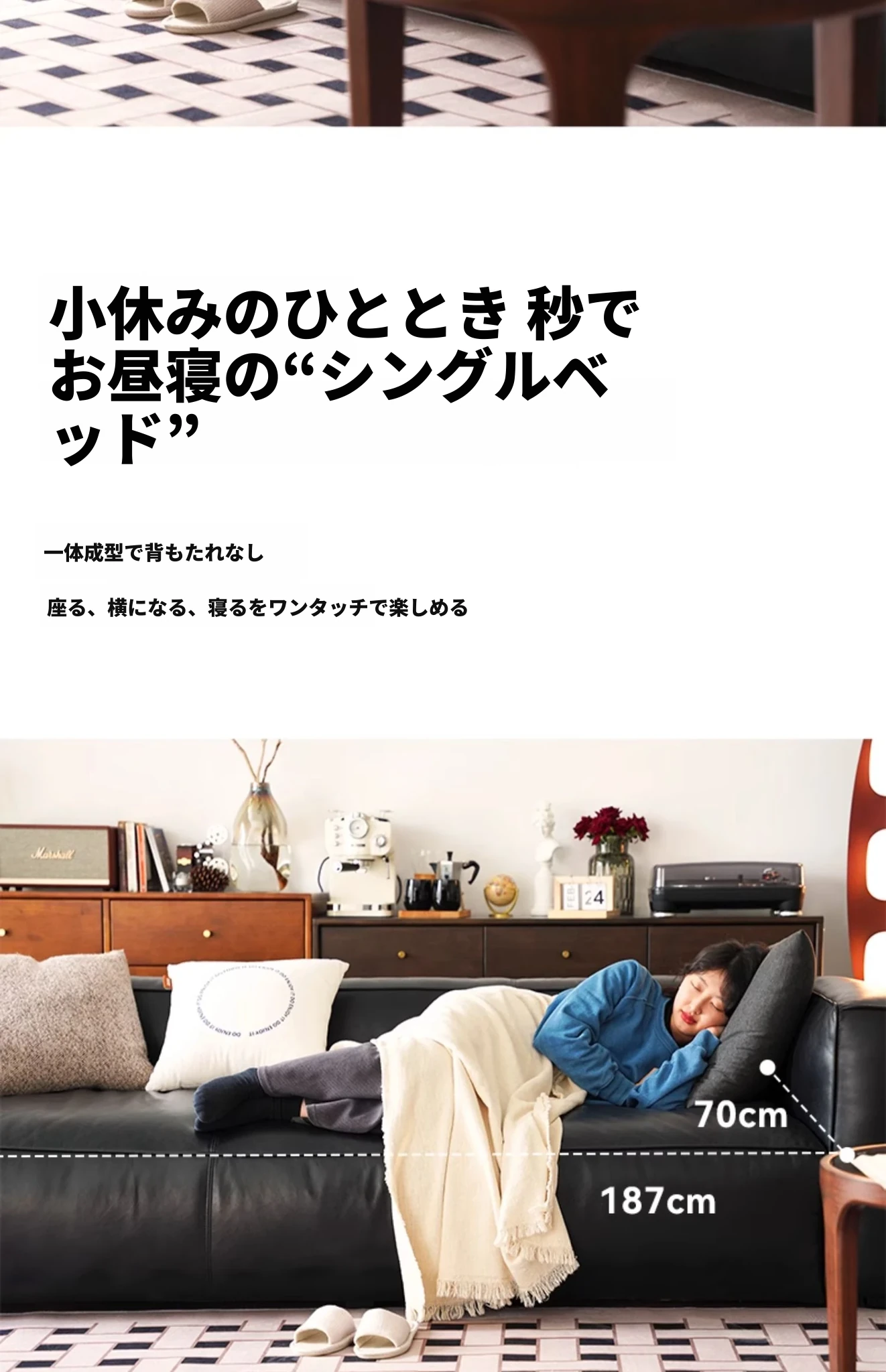 2.45メートル3人掛け本革ソファ(アームレスト取り外し可)