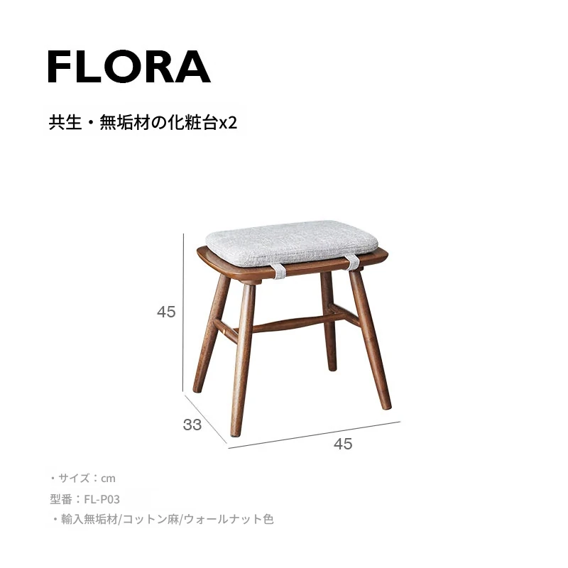 天然木製ドレッシングスツール【布製クッション付き】*2