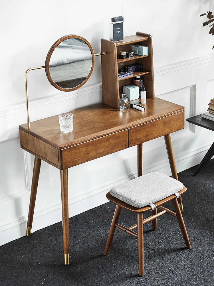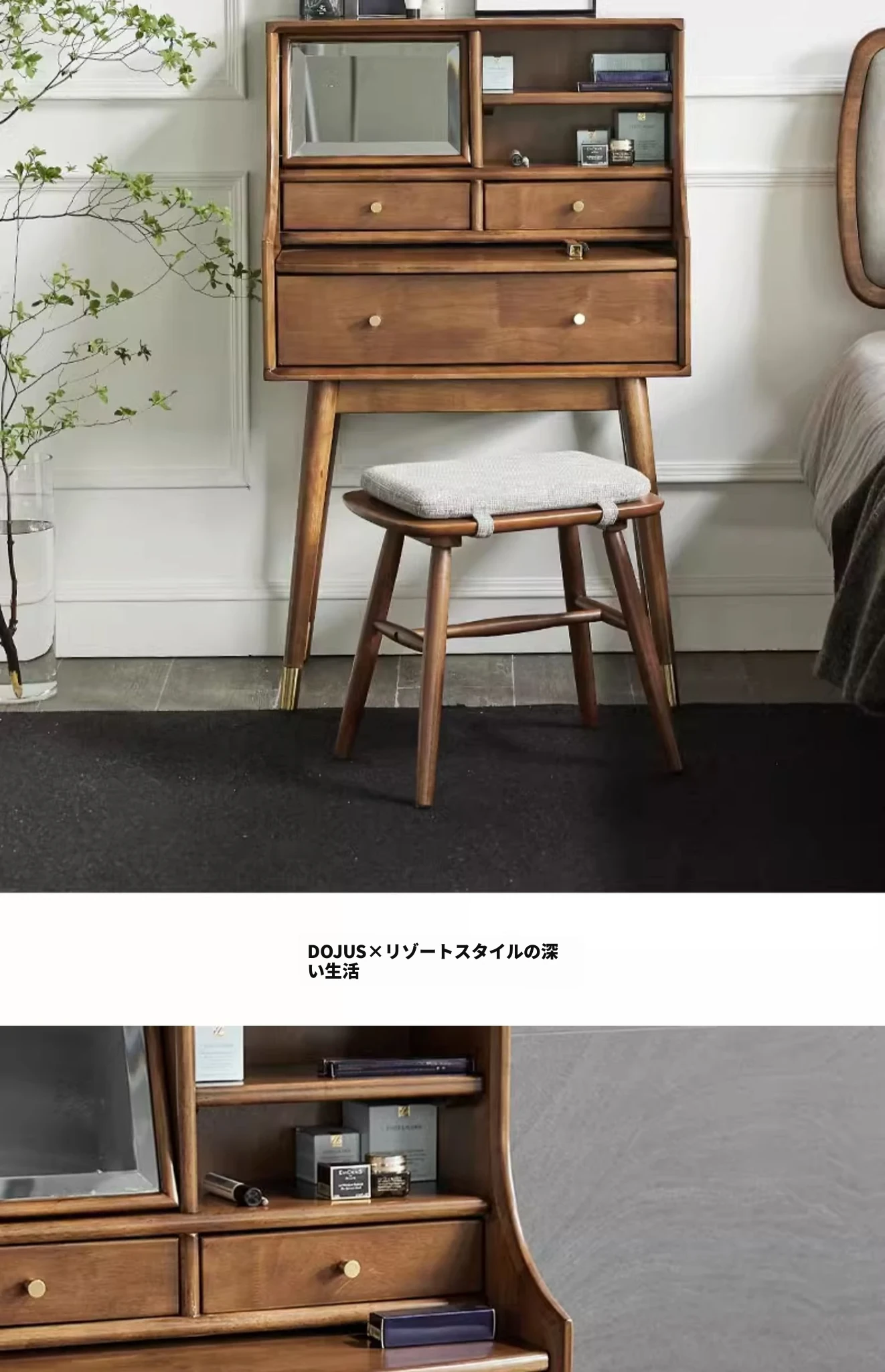 DOJUSリゾートスタイル 木製メイクアップスツール シンプルなデザインの小さなスツール 家庭用 布製クッション付き 寝室のドレッサースツールで、優雅な時間を演出!