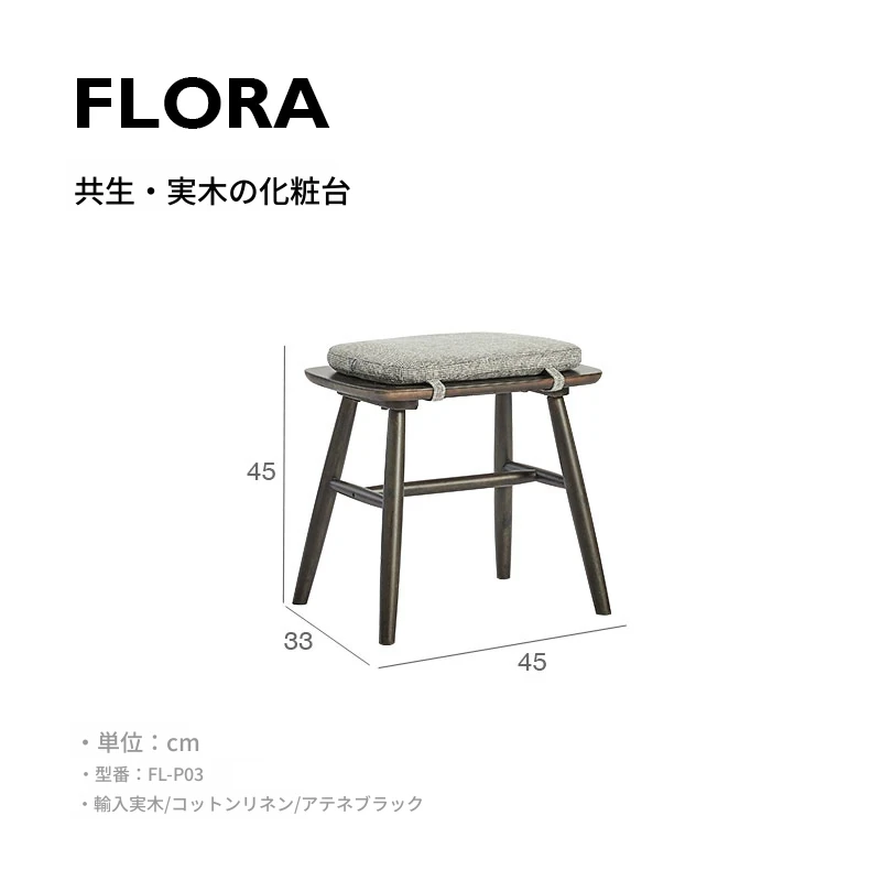 天然木製ドレッシングスツール【布製クッション付き】【アテネブラック】