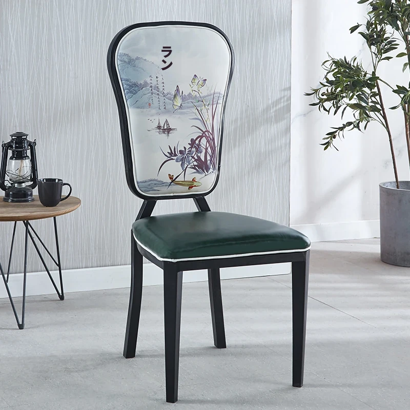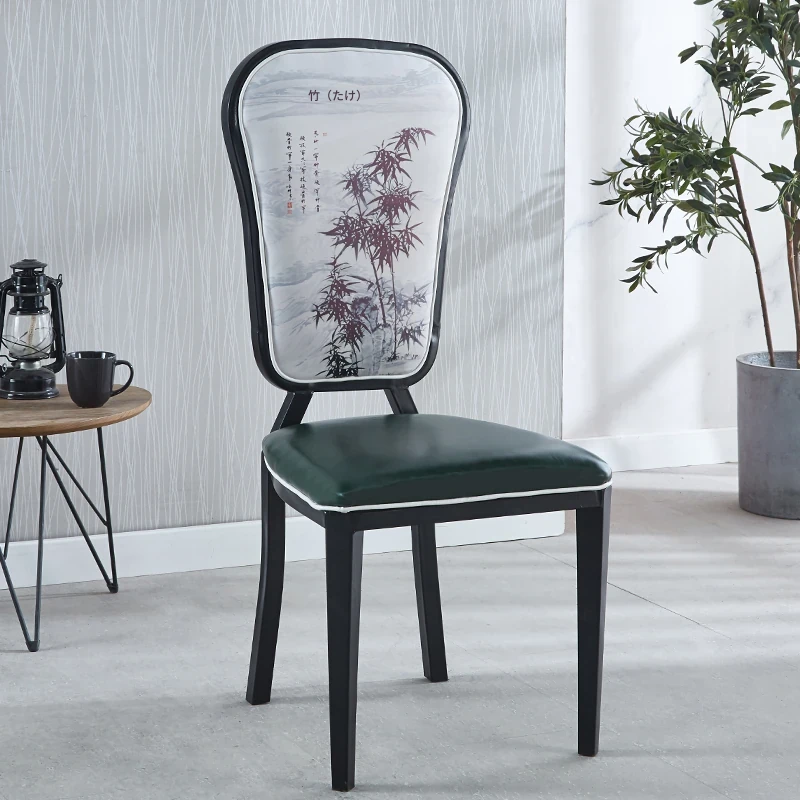 新中式デザインのホテル用高背椅子|茶餐厅や宴会に最適!シンプルで洗練された鉄製の軽奢スタイル|火鍋店やレストランにぴったりな快適な座り心地を実現!