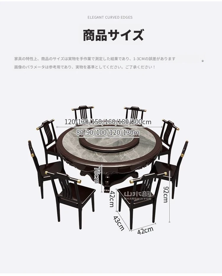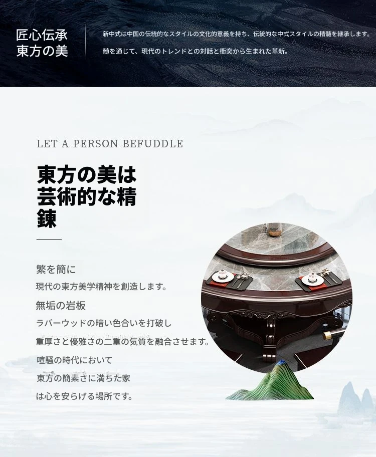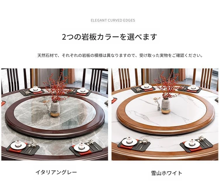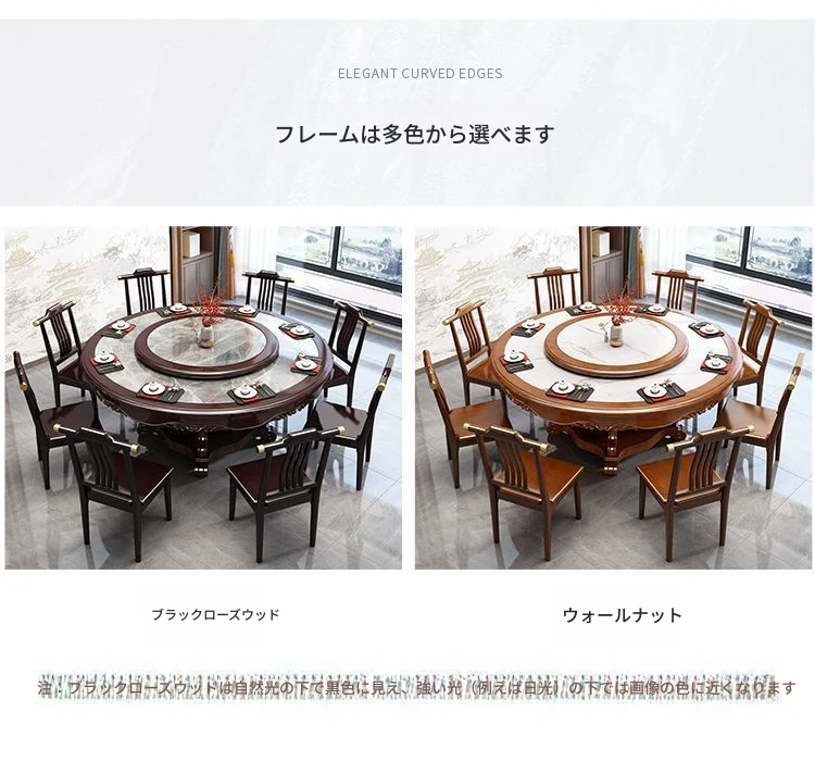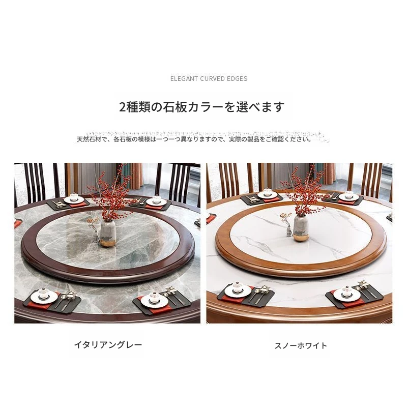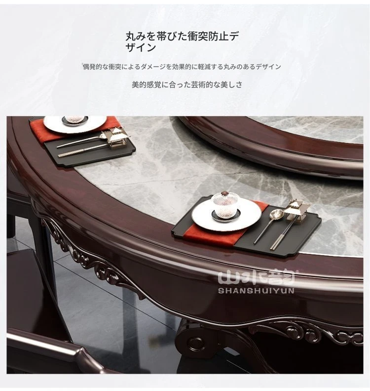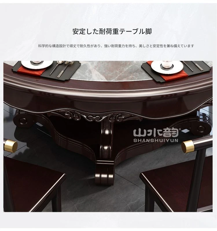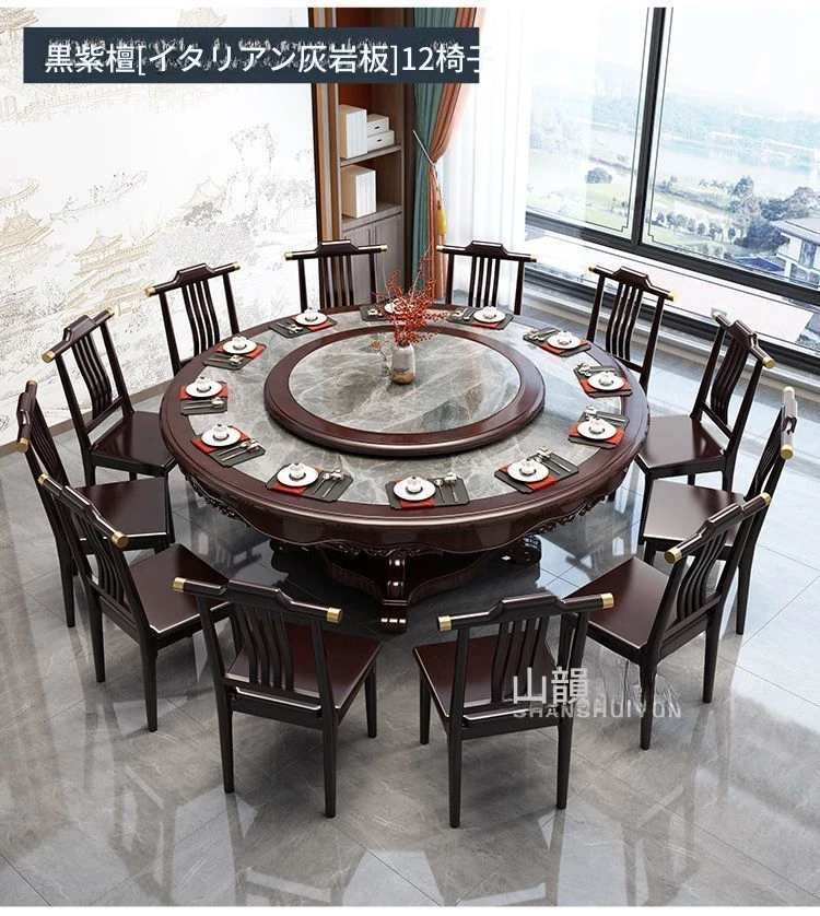 新中式スタイルの高級岩板ダイニングテーブル&チェアセット - 家庭用・実木製・円形回転テーブル・ホテル向け・電磁調理器対応全セットで、上質な食空間を演出します!