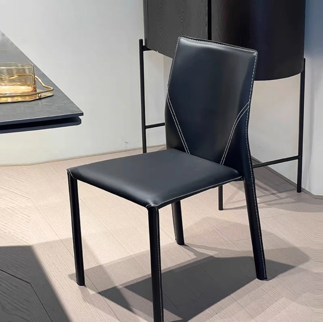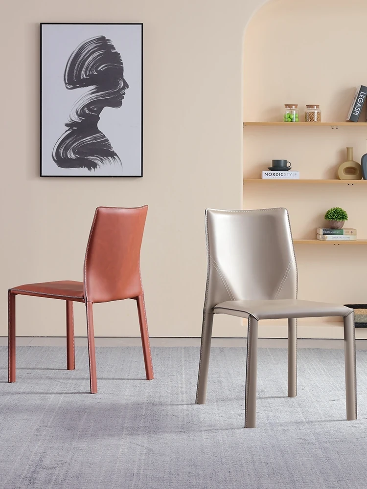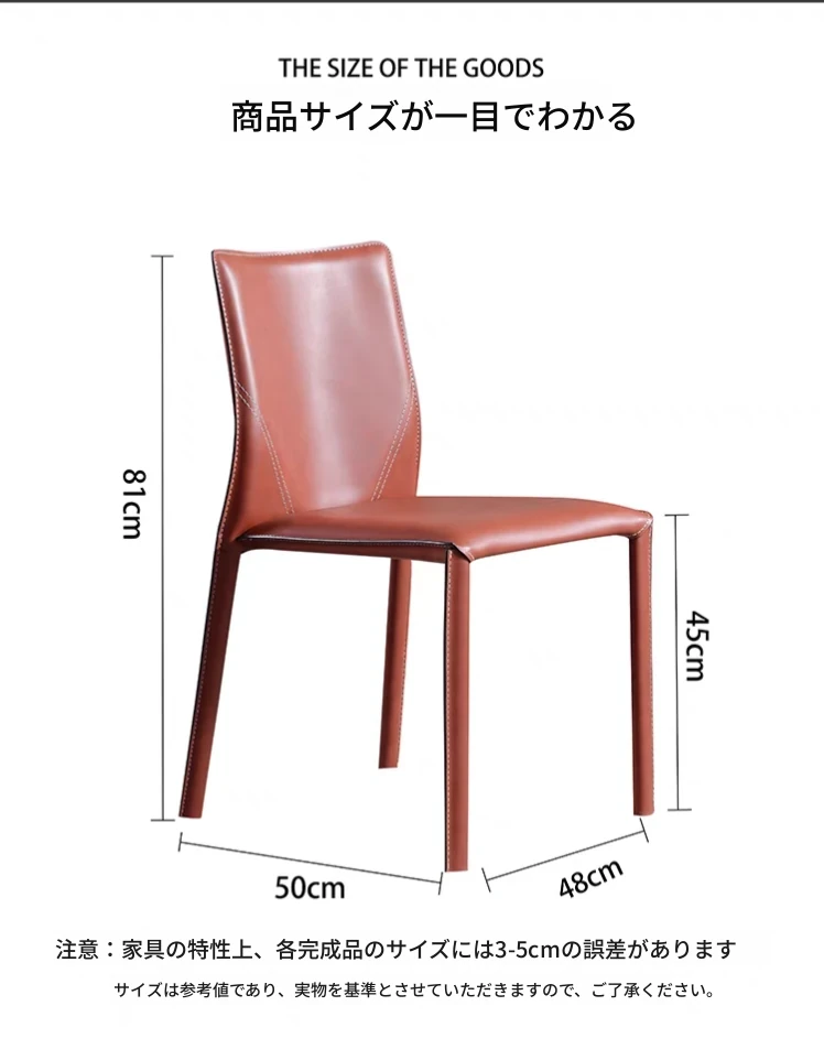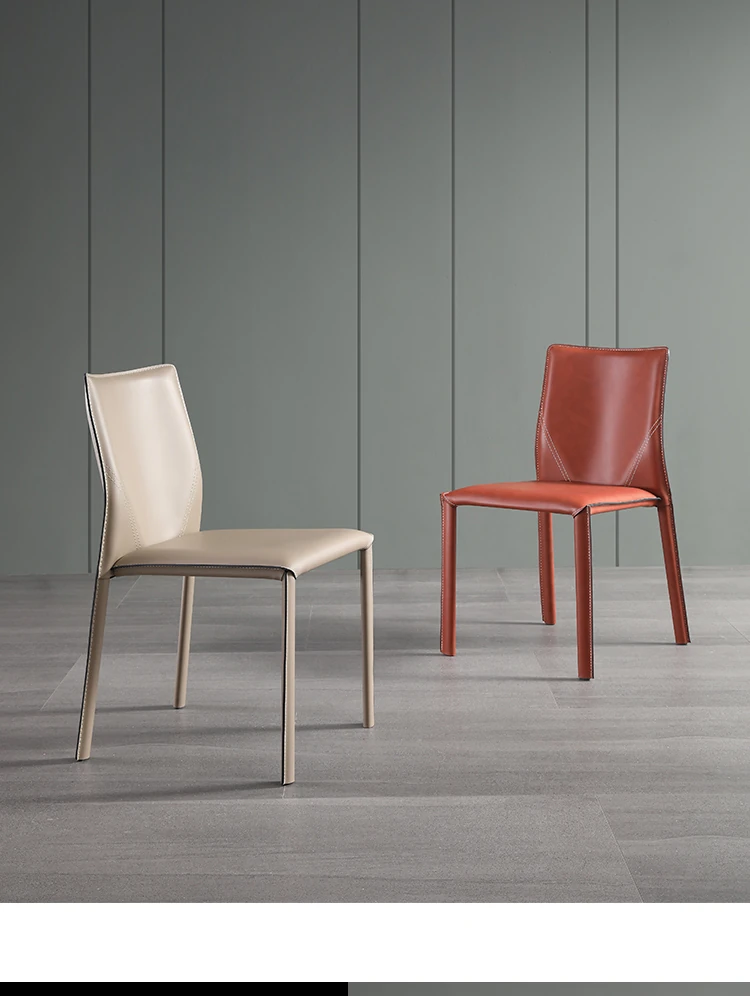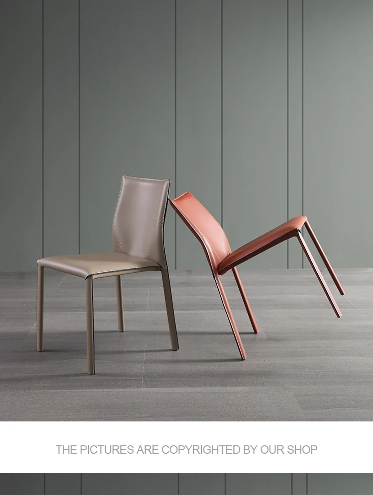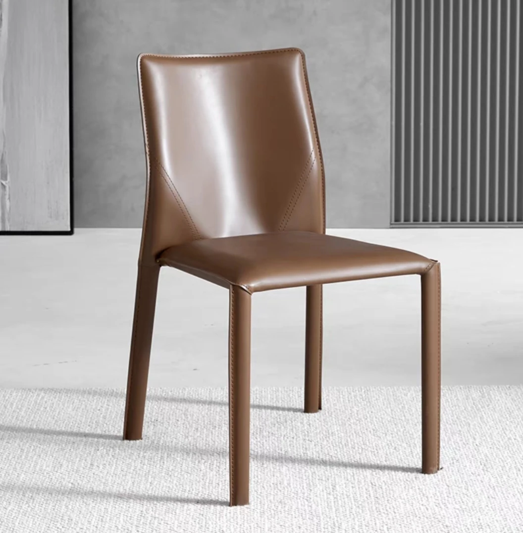 高級感あふれるサドルレザー製ダイニングチェア!デザイナーが手掛けたスタイリッシュな書斎用チェア。イタリアンスタイルの家庭用背もたれ付きレザー椅子、北欧風のトレンディな人気アイテムです。