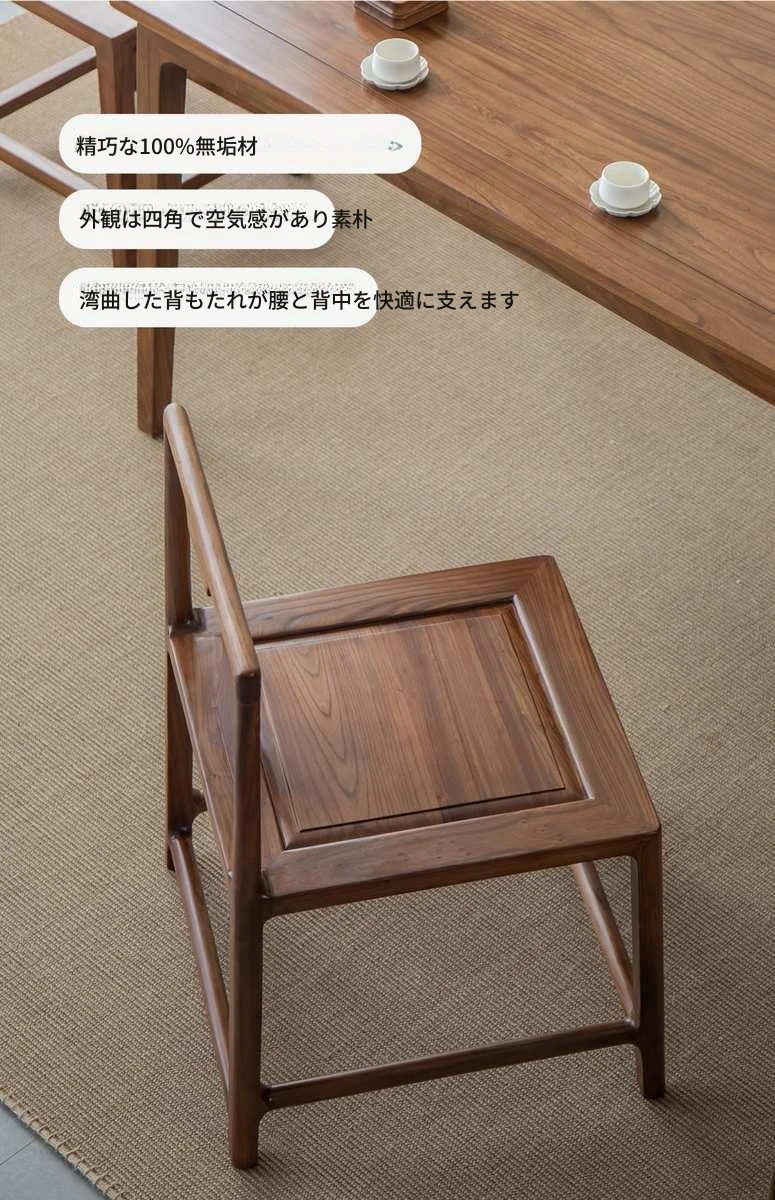新中式無垢材のダイニングチェア - 本物の楡の木製、収納便利な茶椅子、ブラックウォールナット色、アームレス、伝統的な榫接ぎ技術で作られた宋風スタイル!おしゃれで機能的なインテリアを演出します。