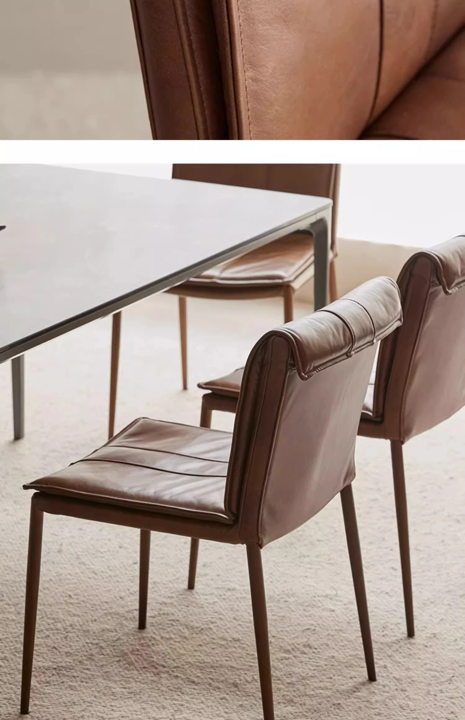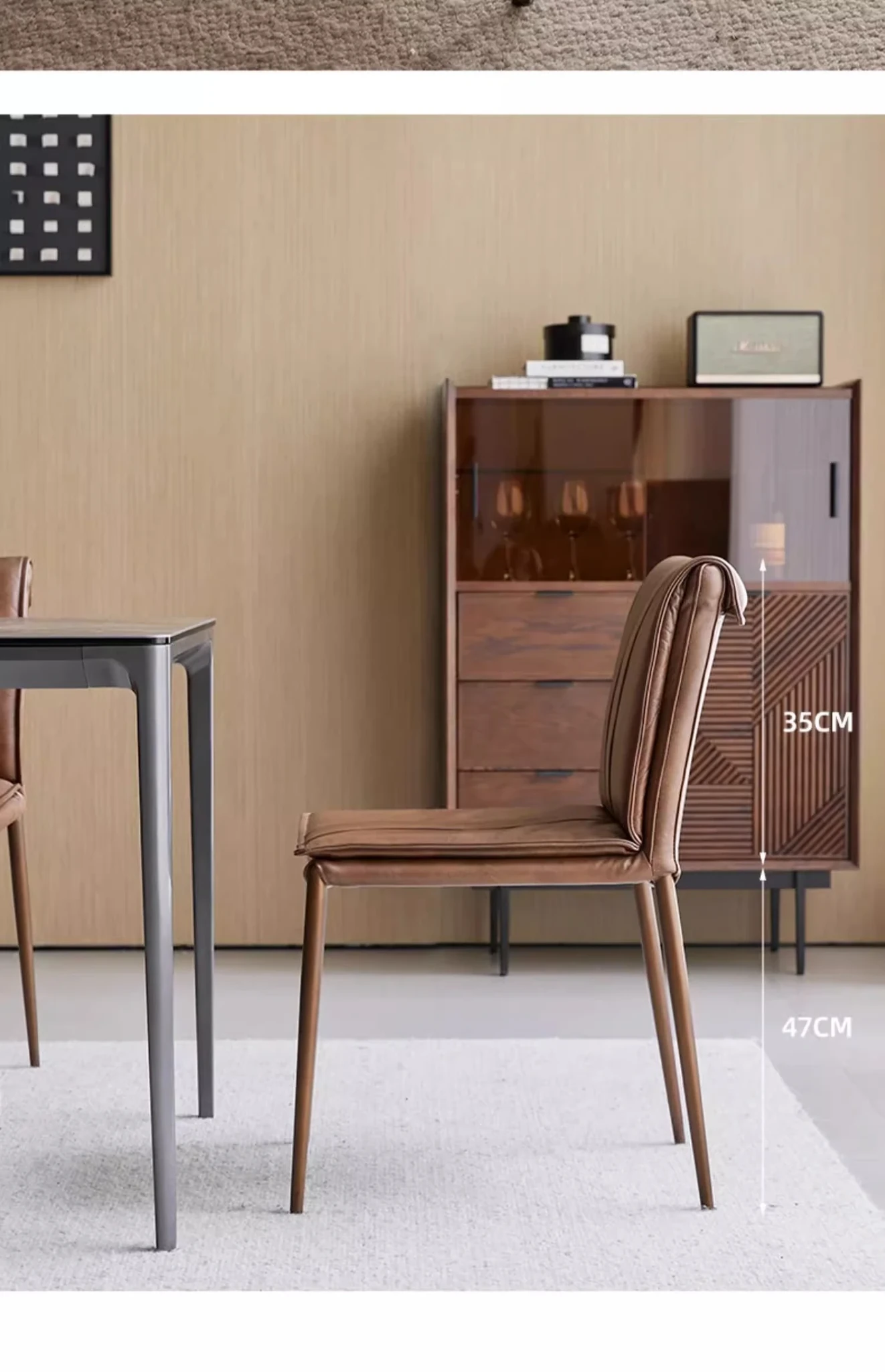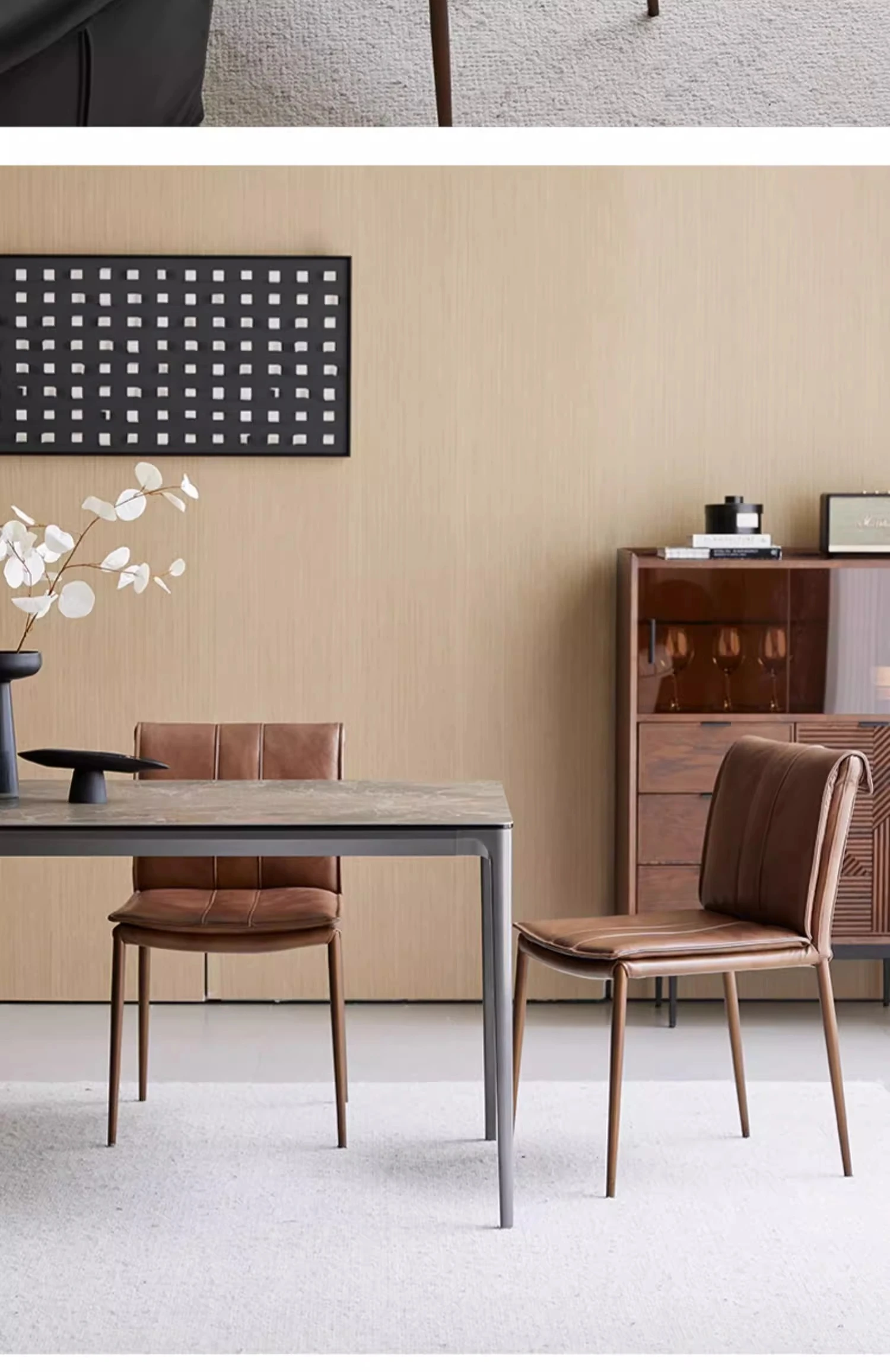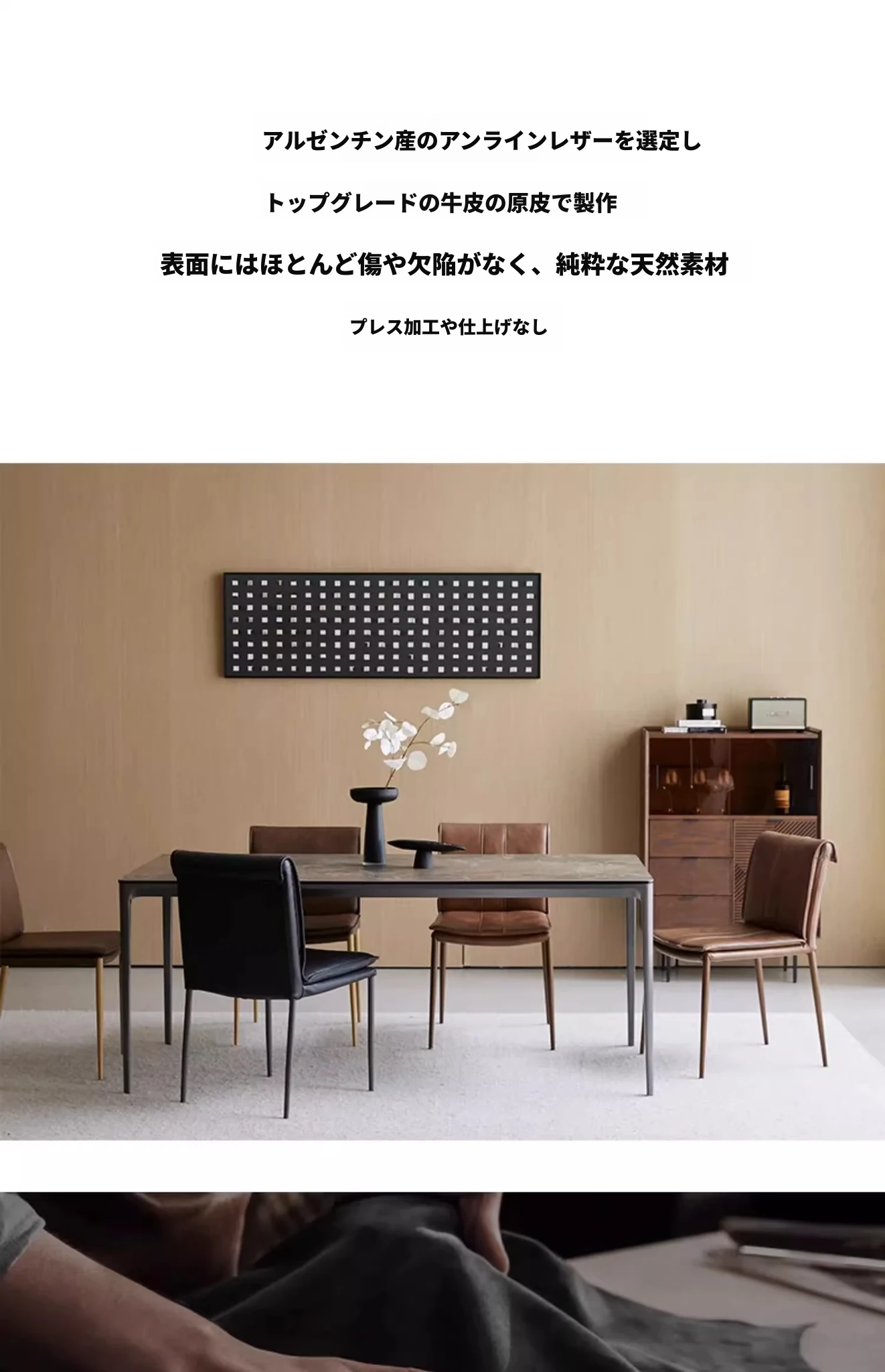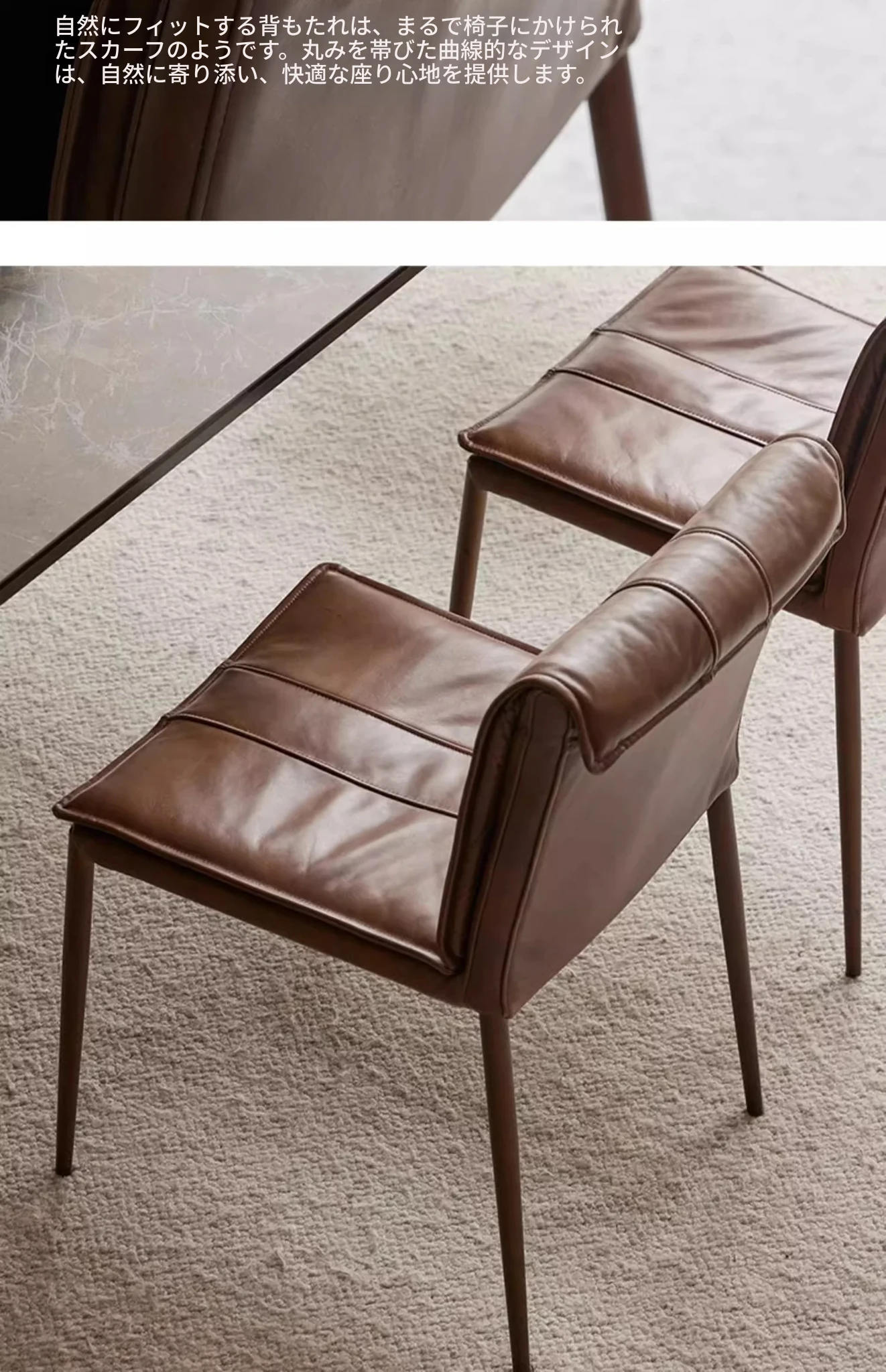 軽奢都市スタイルの本革チェア|背もたれ付き|家庭用ダイニングチェア|モダンでシンプルなレトロデザイン|牛革製リラックスチェア|上質な座り心地をお楽しみください!