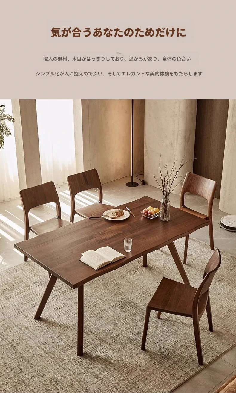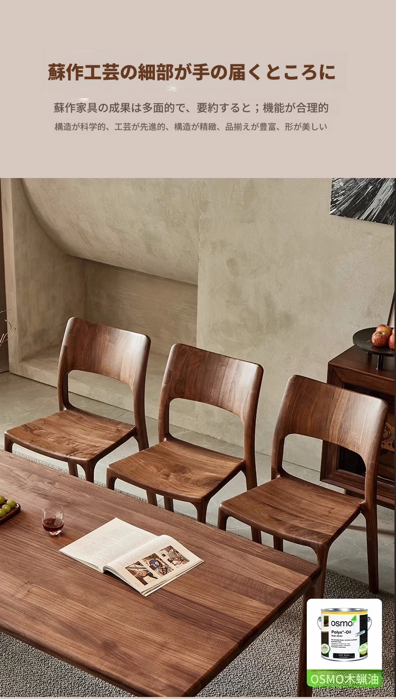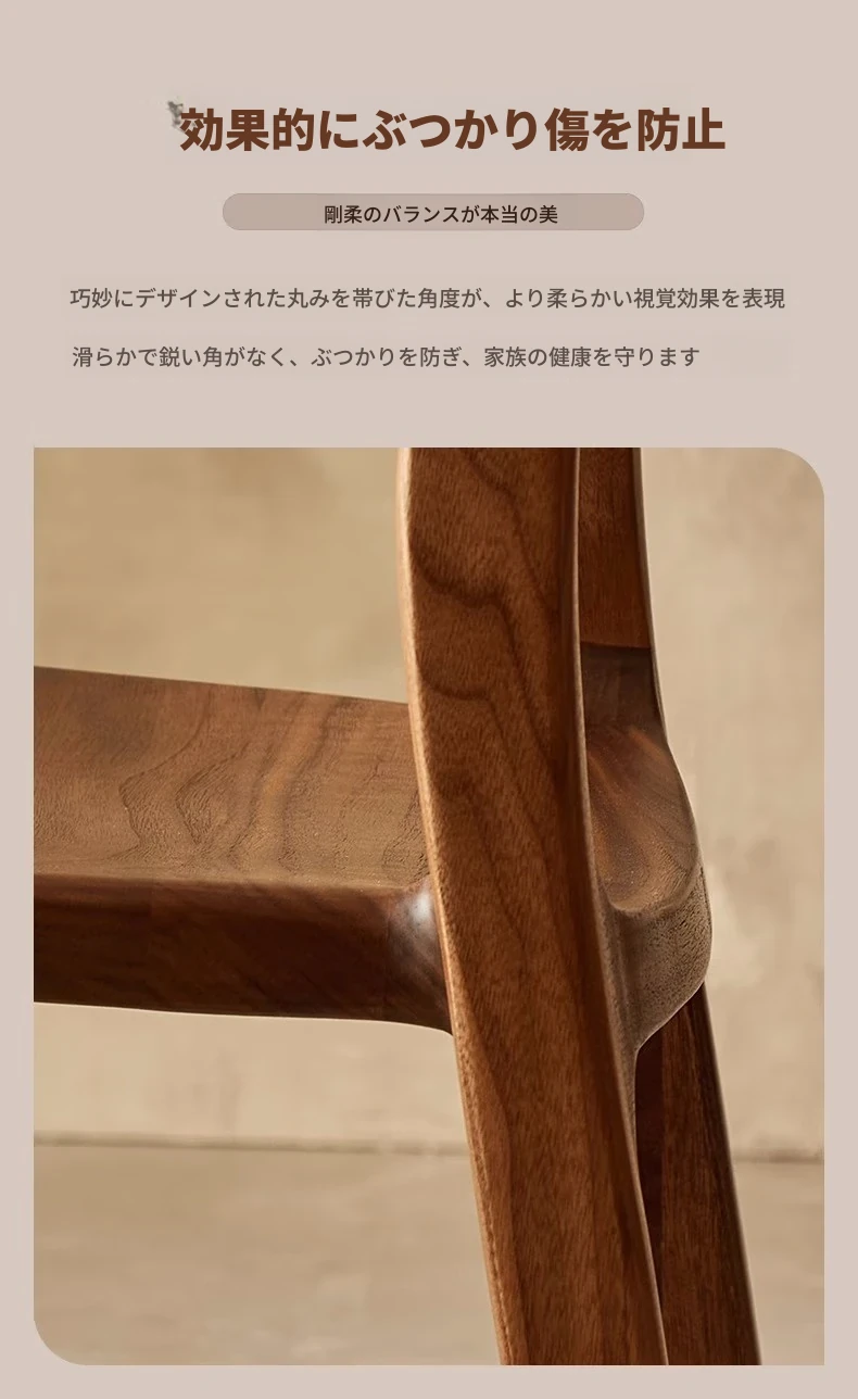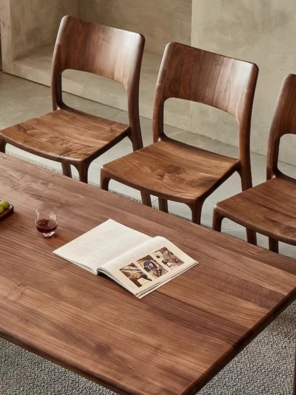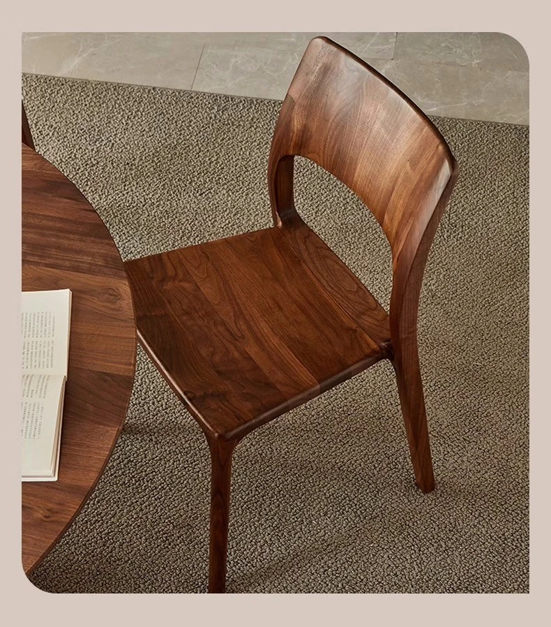 新中式デザインの黒胡桃無垢材を使用したダイニングチェア。優雅なカウホーンスタイルの背もたれ付き、家庭でのリラックスタイムやお茶のひとときにぴったり。高品質な素材で、長くご愛用いただけます。