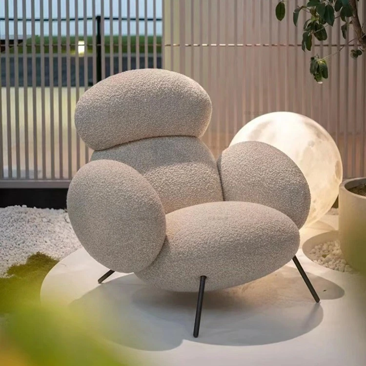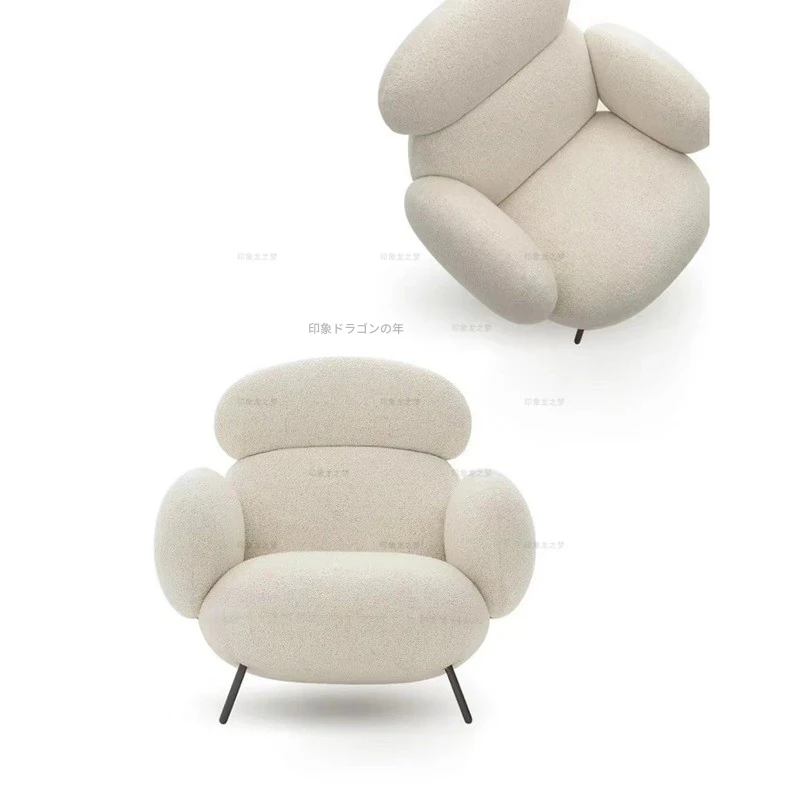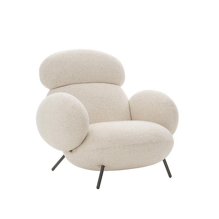 イタリアンミニマリストスタイルのクリーム色ソファチェア - PEBBLE一人用来客用椅子、快適なリラックスと昼寝に最適な小石デザインのリビングルーム用チェア!