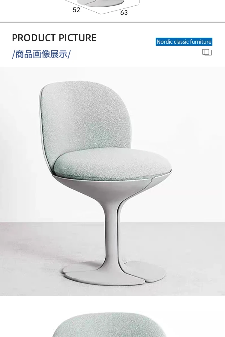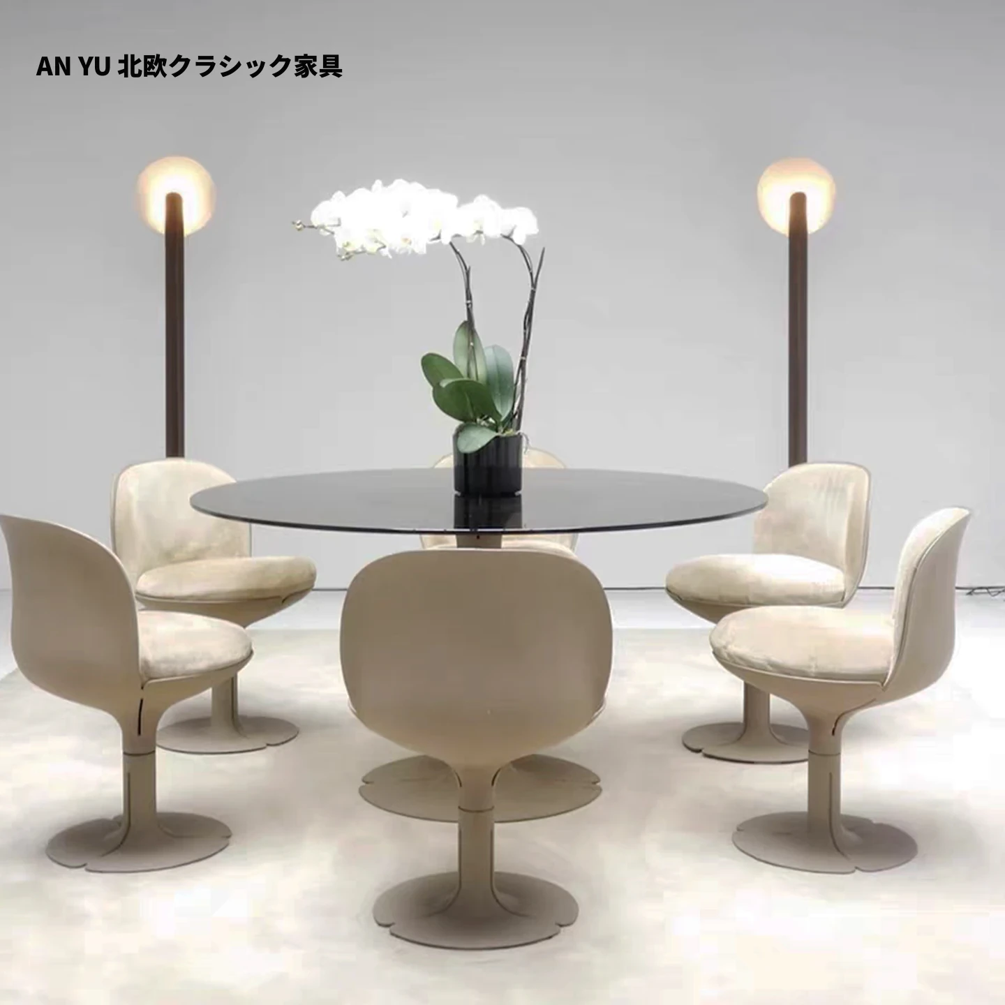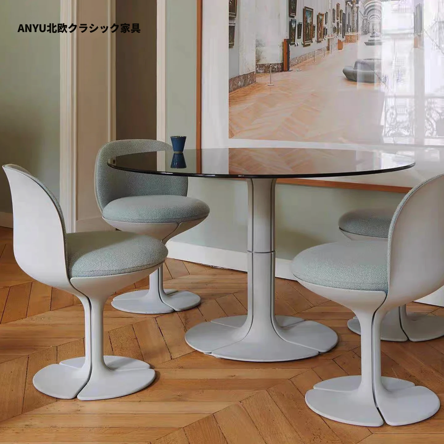 イタリアンミニマルアートデザインのユニークなチューリップ型ダイニングチェア!リラックスできるモダンなデザイン、ガラス繊維製で軽量&耐久性抜群。商談やリビングルームに最適な一品です!