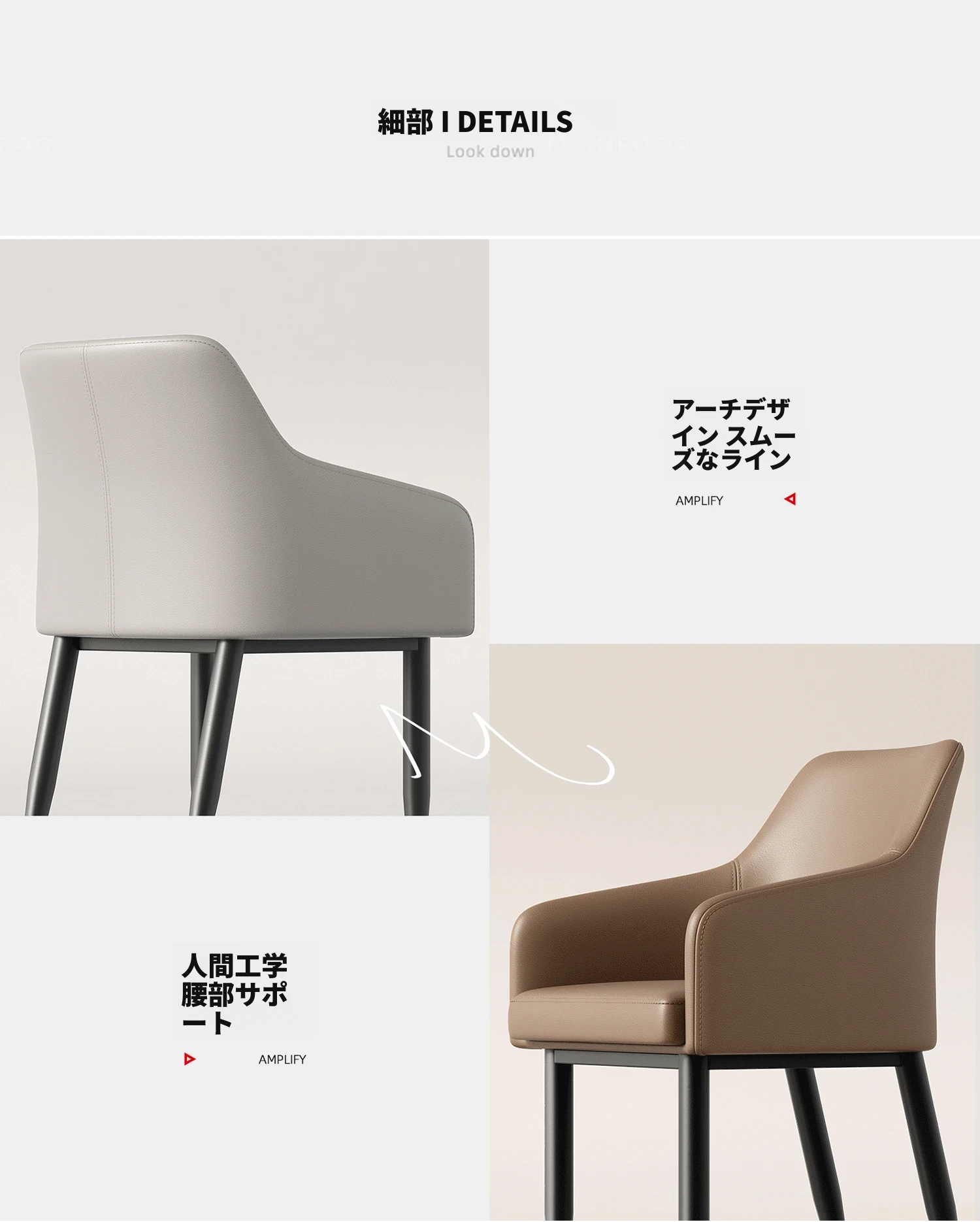 イタリアンミニマルデザインの高級感あふれるダイニングチェア|現代的なシンプルさで、家庭やレストランに最適な背もたれ付きの椅子|洗練されたスタイルでお食事を特別なひとときに!
