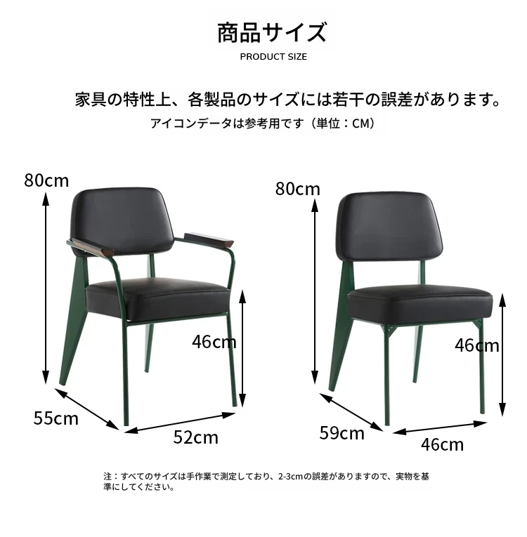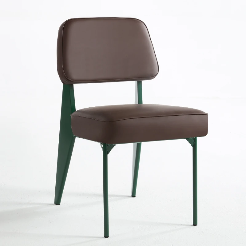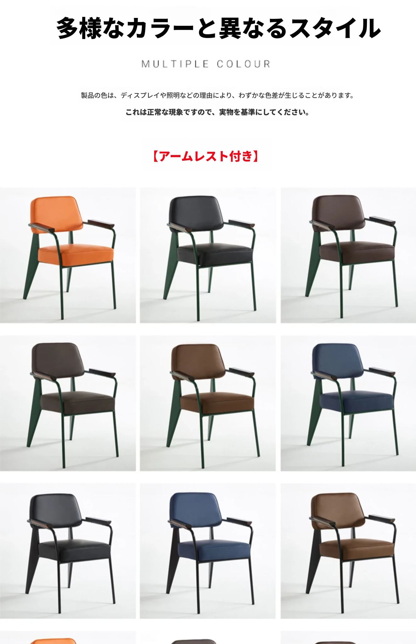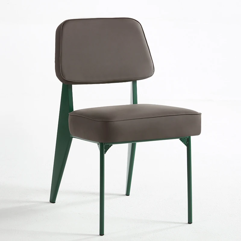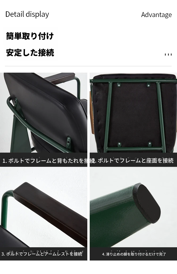 カーキ色の脚にアームレスト付きのダークブラウン面