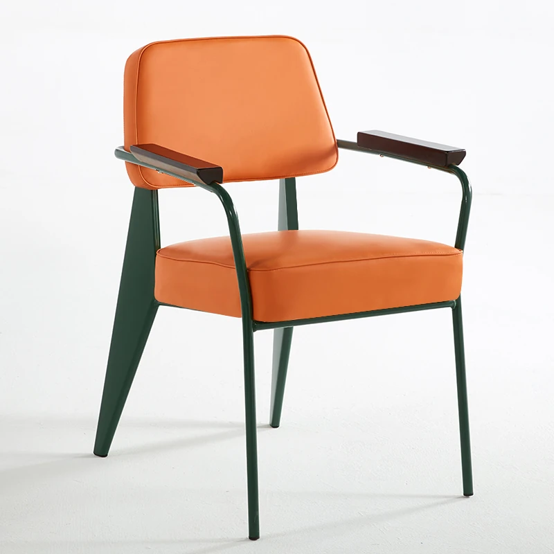 カーキ色の脚にアームレスト付きのオレンジ色面