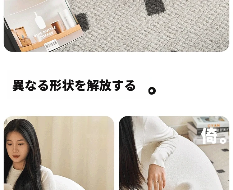 簡約北欧スタイルのラウンジソファ!ふわふわの長短パイルと無地デザインで、リラックス空間を演出。DIY組み立て可能で、洗える内外カバー付き。あなたのスタイルに合わせてカスタマイズできます!