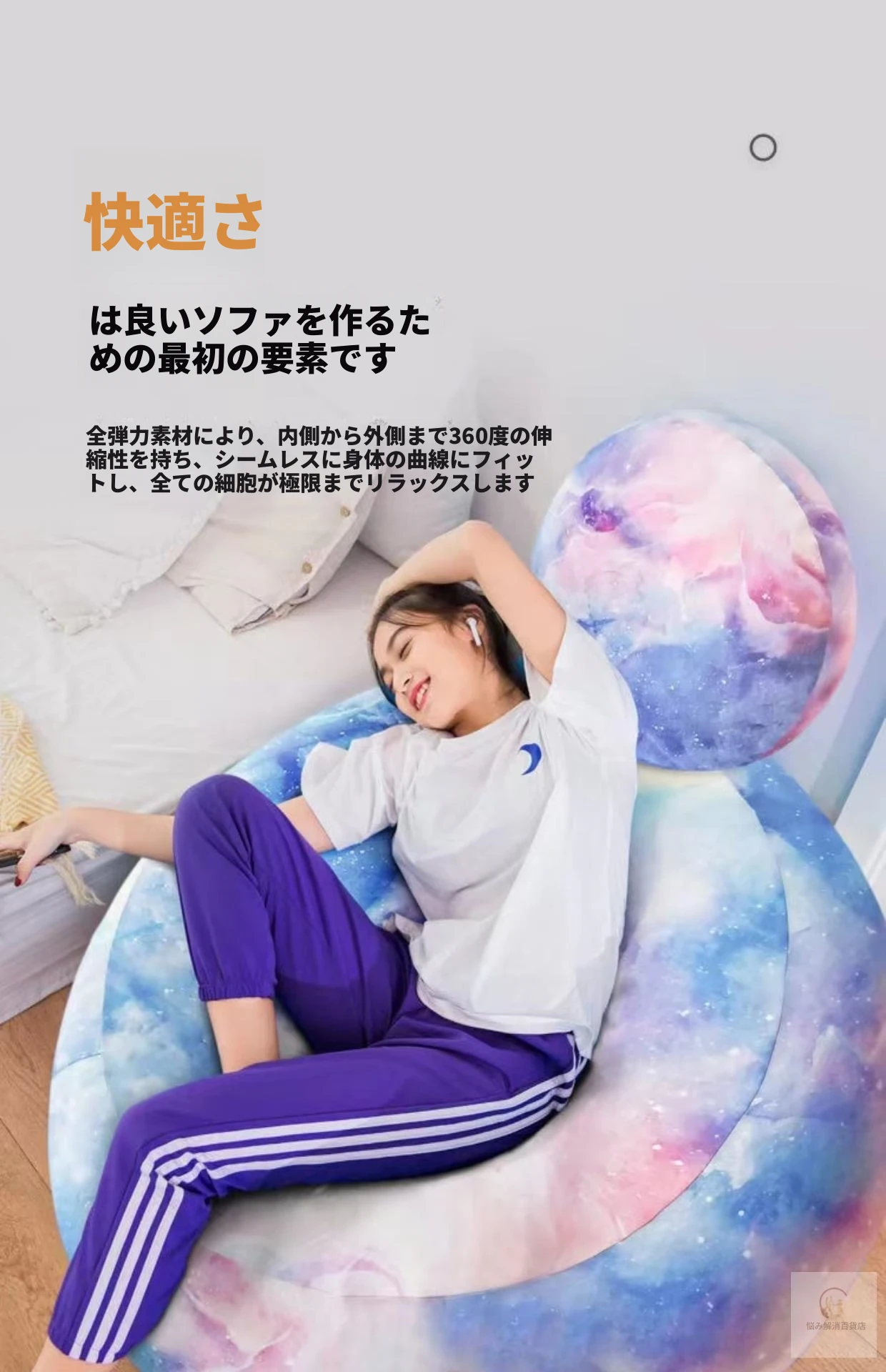 おしゃれなラウンジソファ!粒状充填のビーズクッション、人気のまるいデザインで、林妙妙も愛用。寝室やバルコニーでのリラックスタイムに最適!