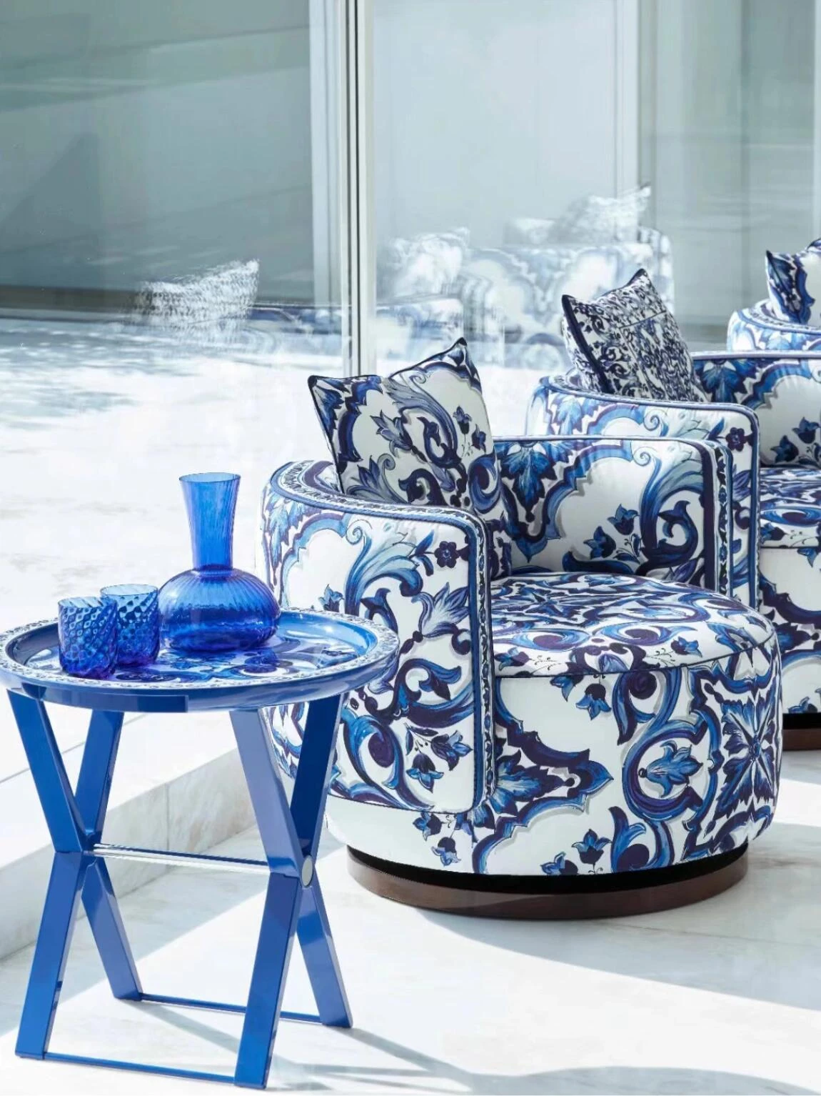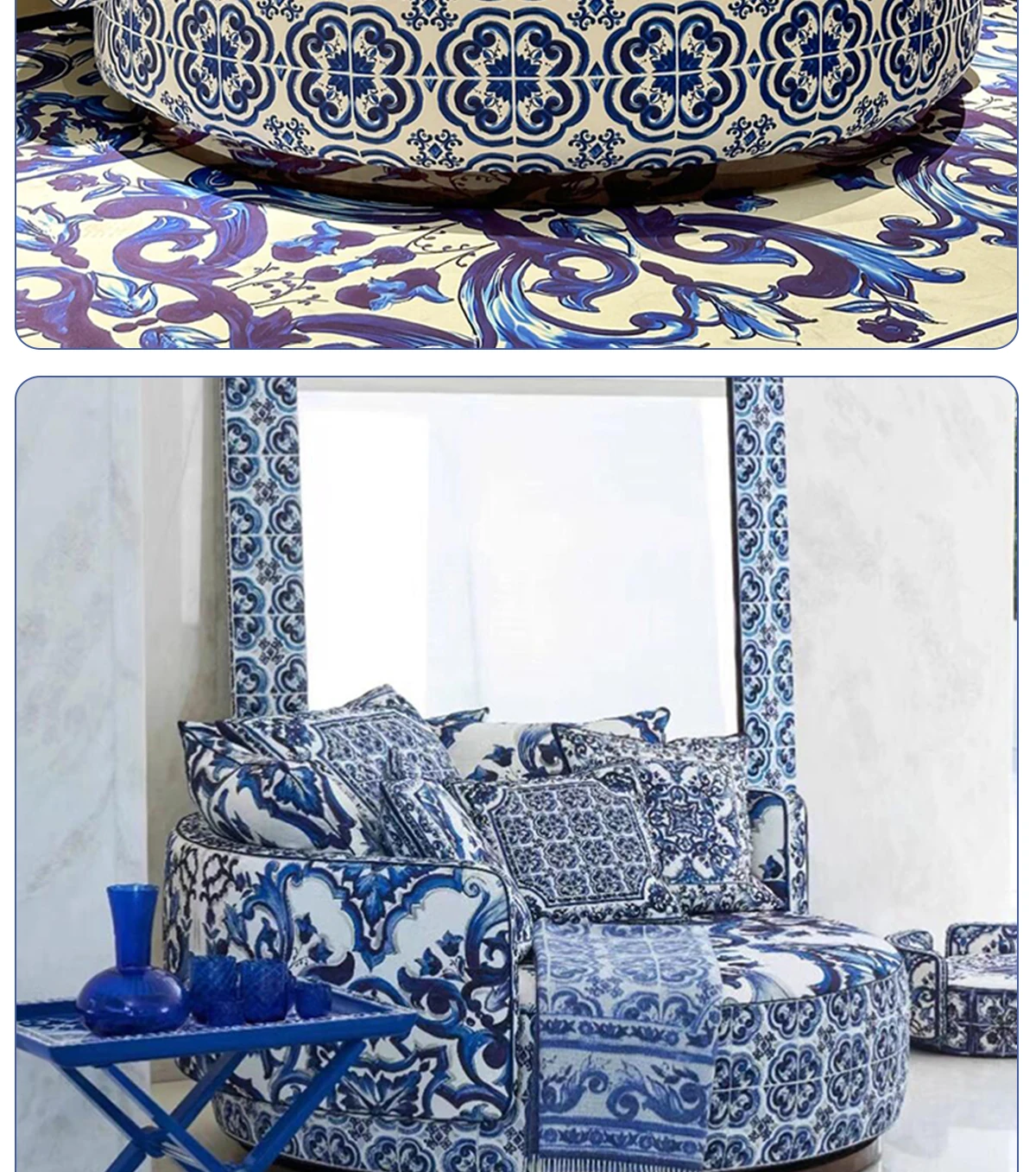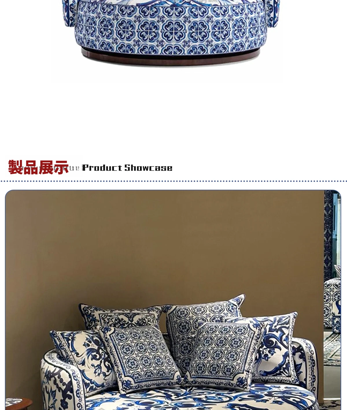 高級青花瓷デザインの布製ソファ|アート感溢れる新中式スタイル|別荘・豪宅に最適な快適リクライニングチェア