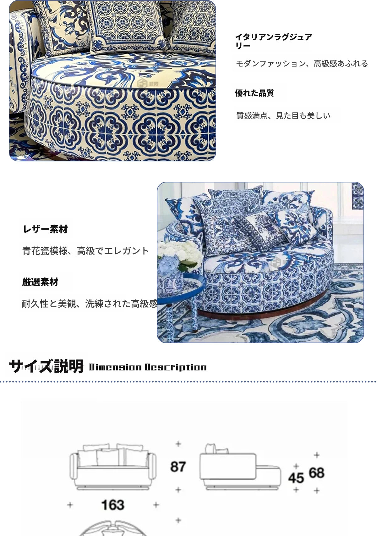 青花瓷大きな二人用ソファ(163*153*68cm)
