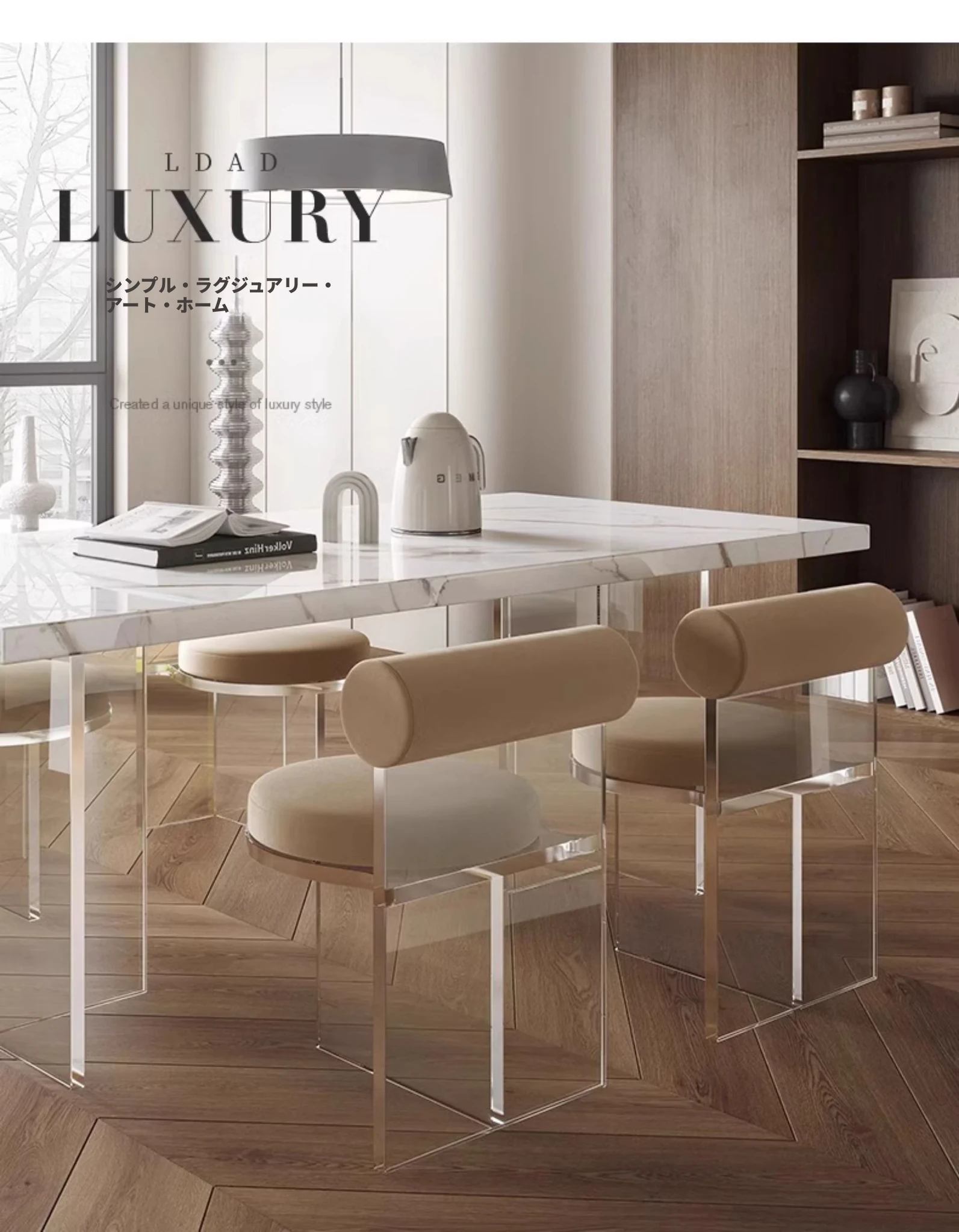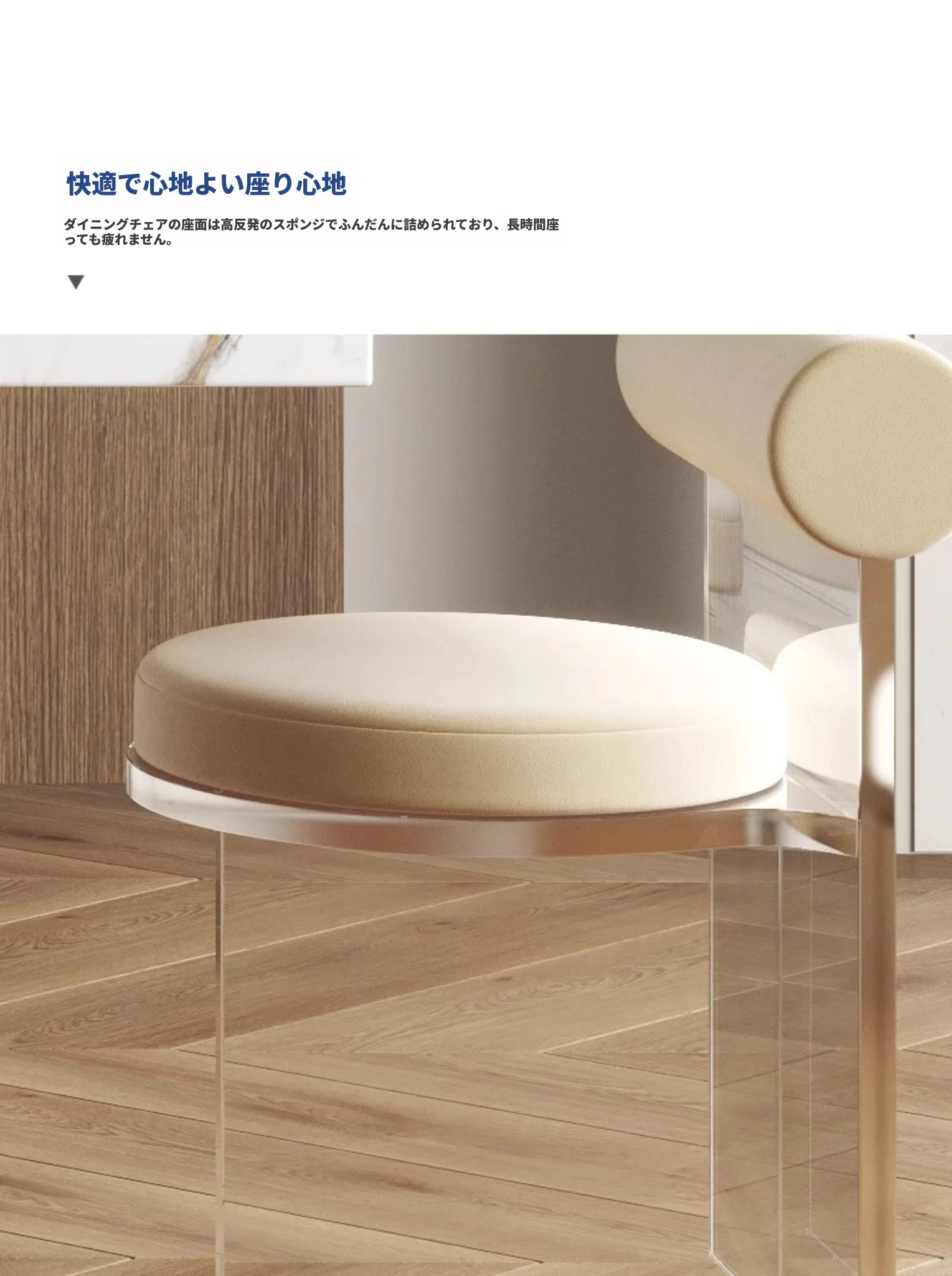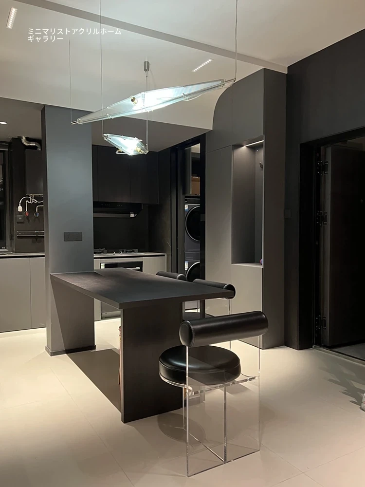 シンプルなアクリル製浮遊透明ダイニングテーブル&チェアセット。イタリアンデザインの高級感あふれるアイランドカウンター用ダイニングチェアと洗練されたドレッシングスツール。スタイリッシュな空間を演出します!