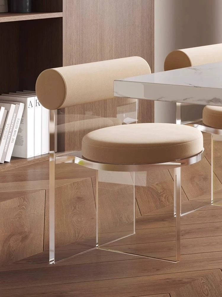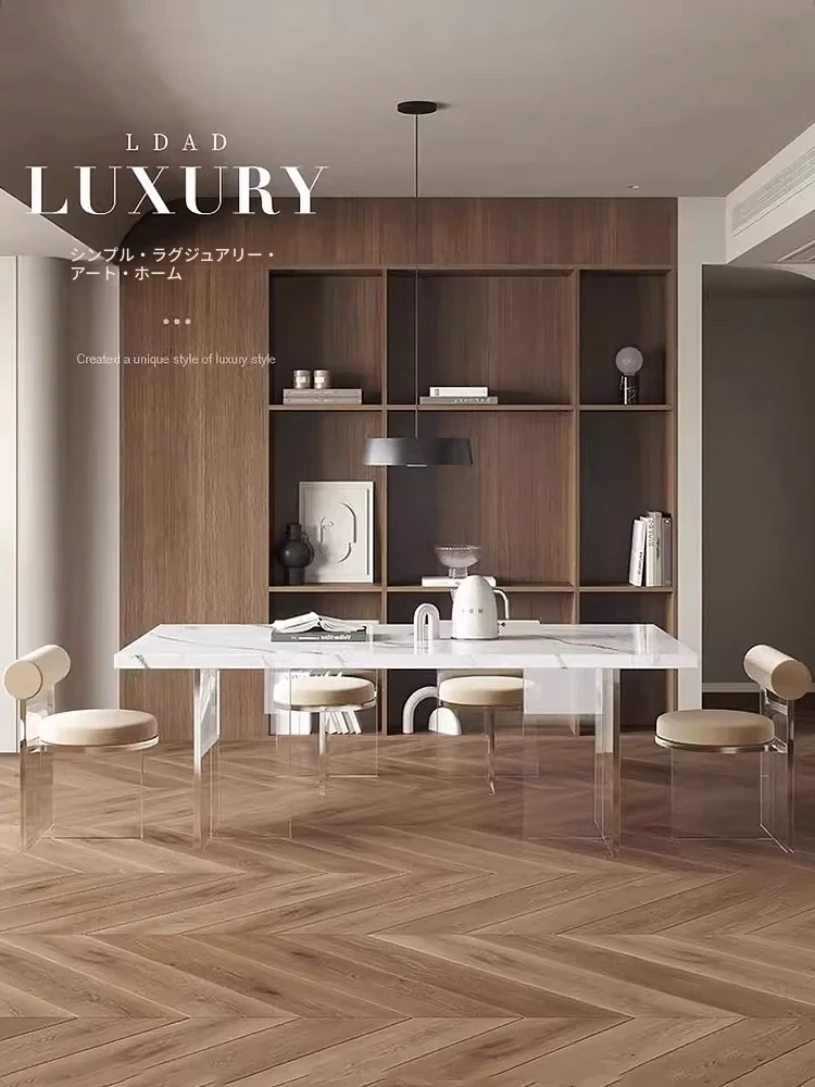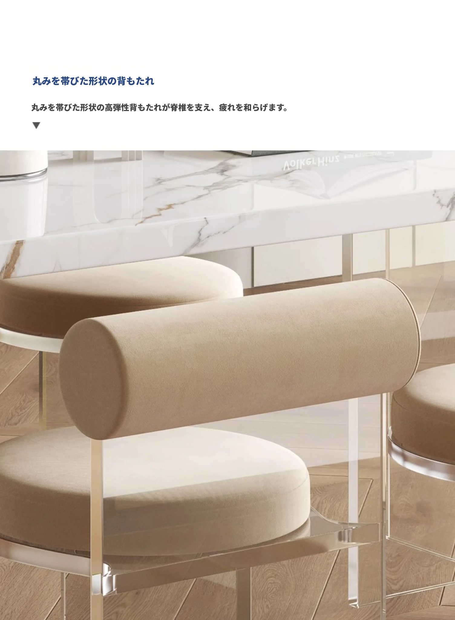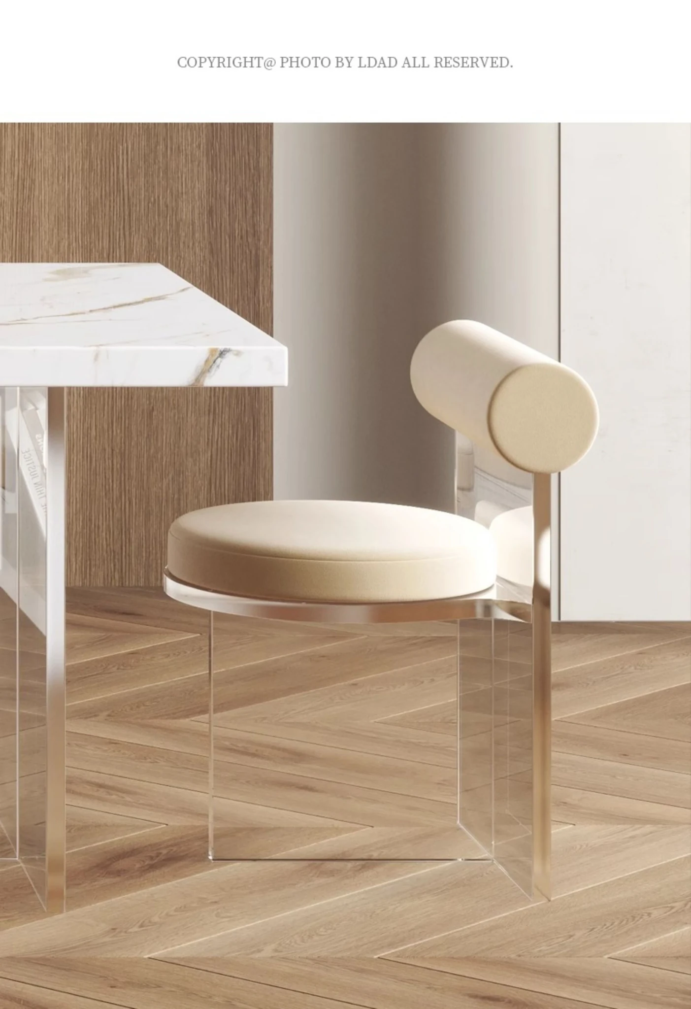 シンプルなアクリル製浮遊透明ダイニングテーブル&チェアセット。イタリアンデザインの高級感あふれるアイランドカウンター用ダイニングチェアと洗練されたドレッシングスツール。スタイリッシュな空間を演出します!