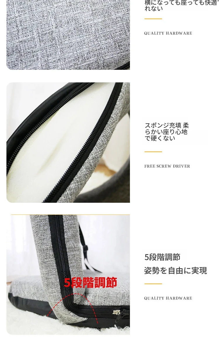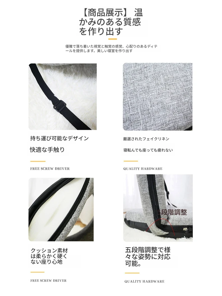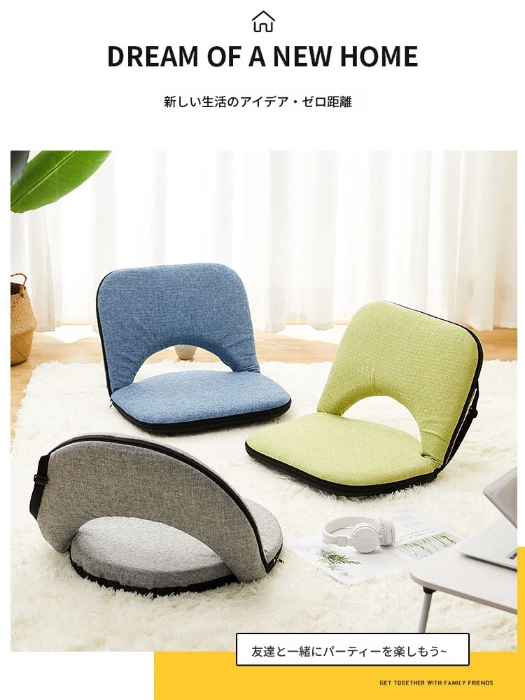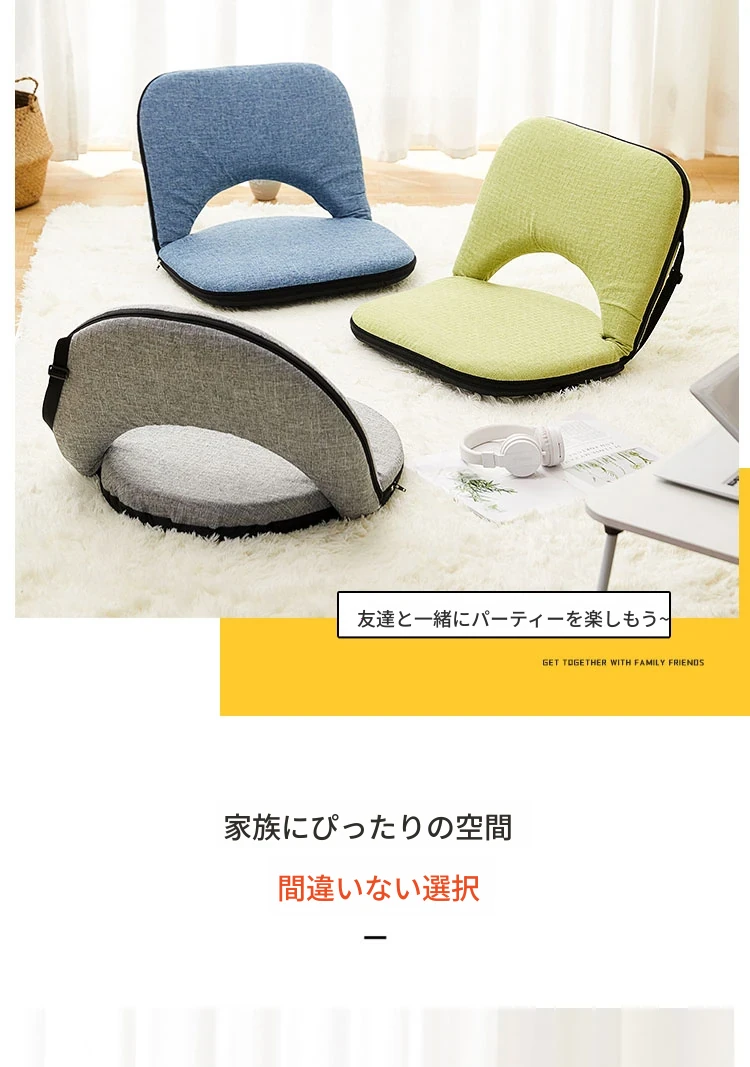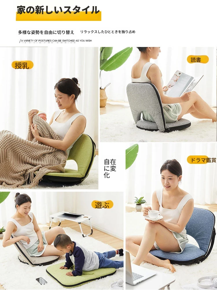 シンプルで折りたたみ可能なリラックスソファ!寮やベッド上で使える背もたれ付きチェア。授乳やお食事にも最適な無脚のコンパクトチェア。畳にもぴったりな座椅子で、快適なひとときをお楽しみください!