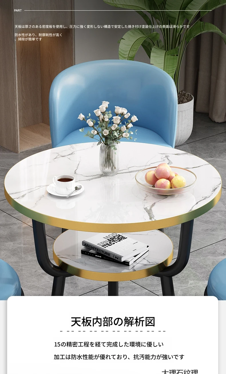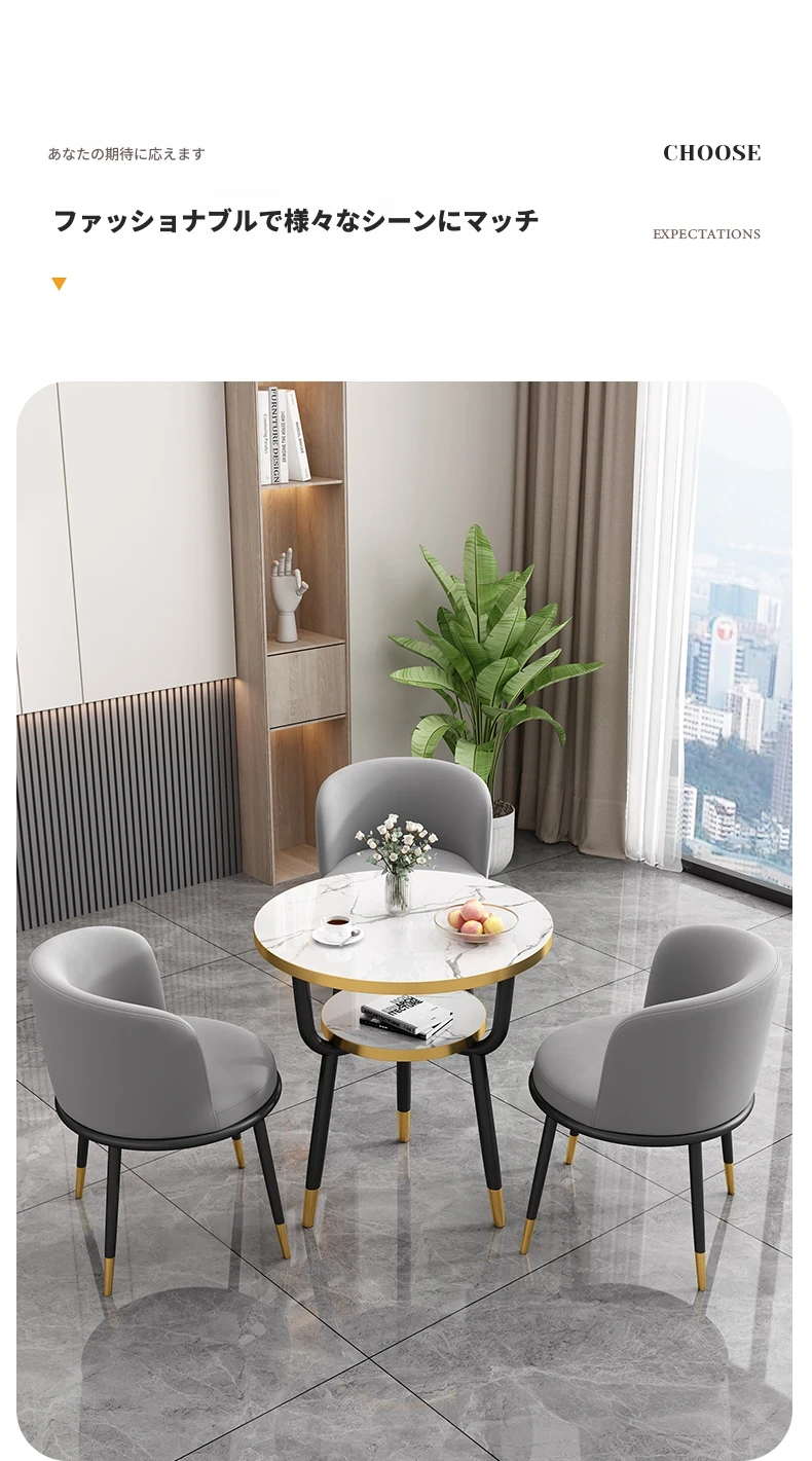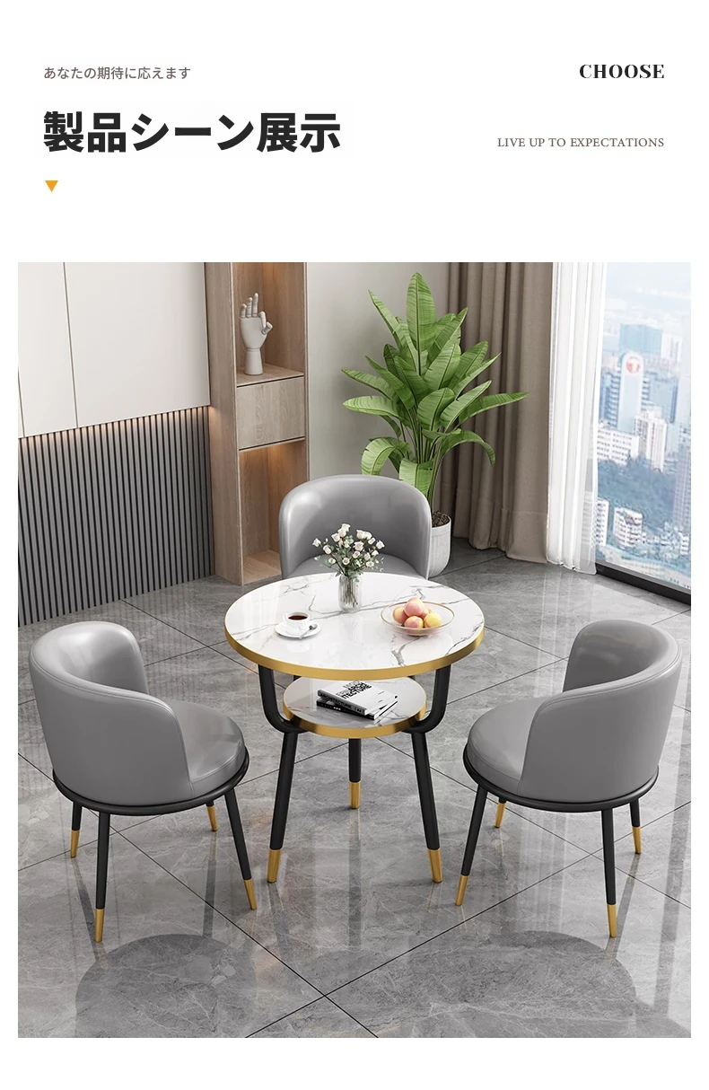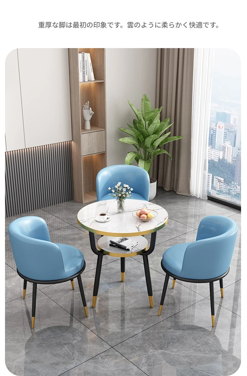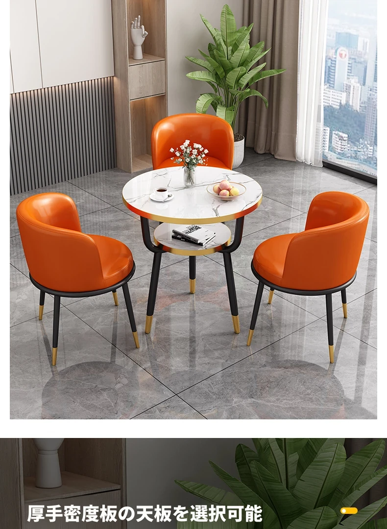シンプルでラグジュアリーなカフェテーブル&チェアセット - おしゃれな店舗やオフィスにぴったり!リラックスできる会議や接待に最適な小さな円形テーブルで、心地よいひとときを提供します。