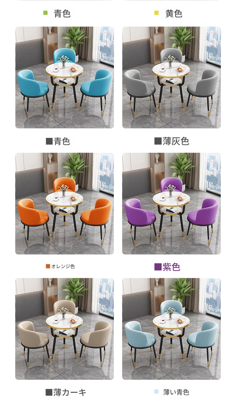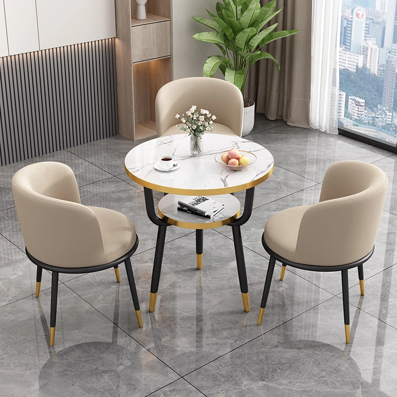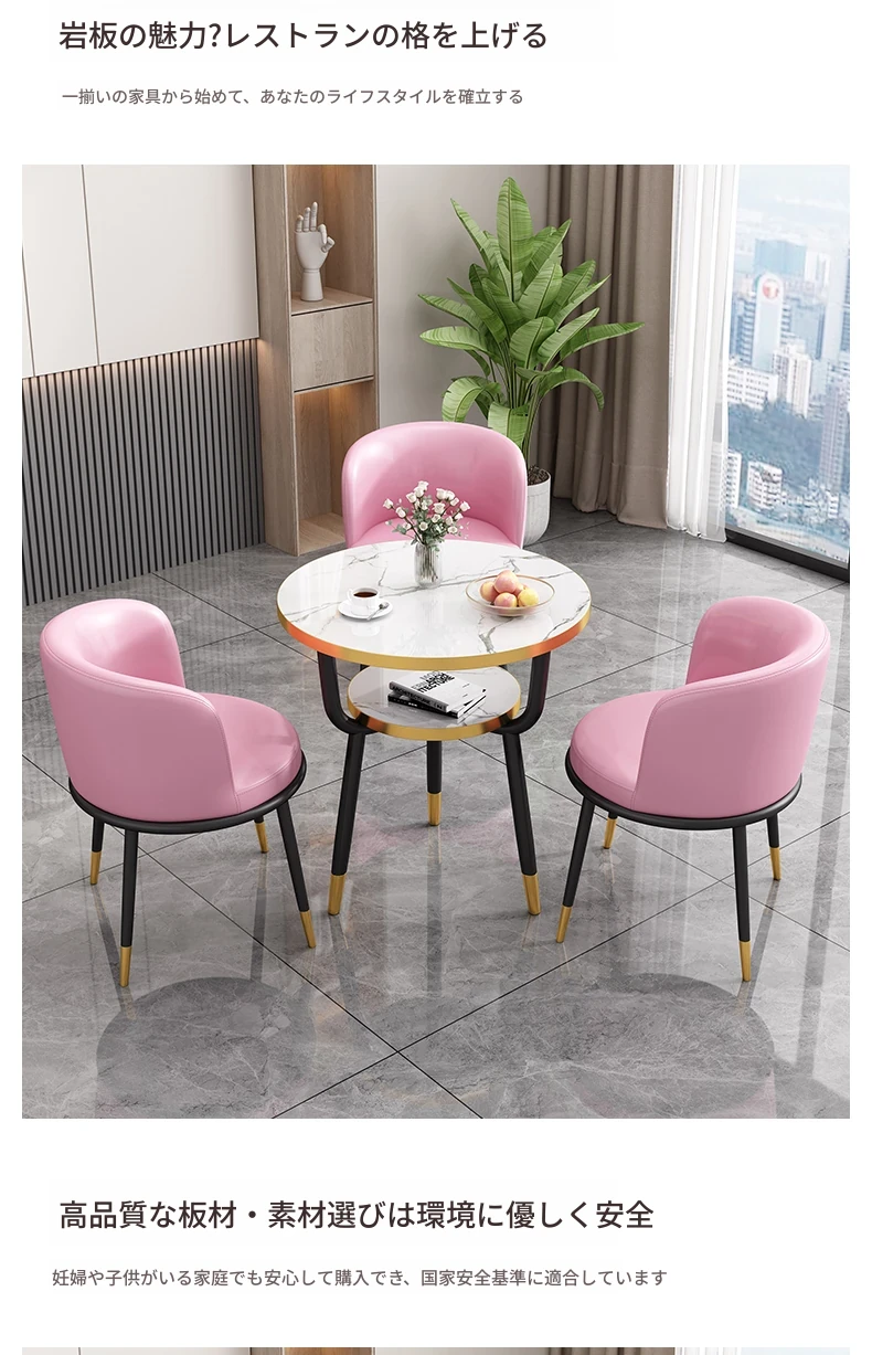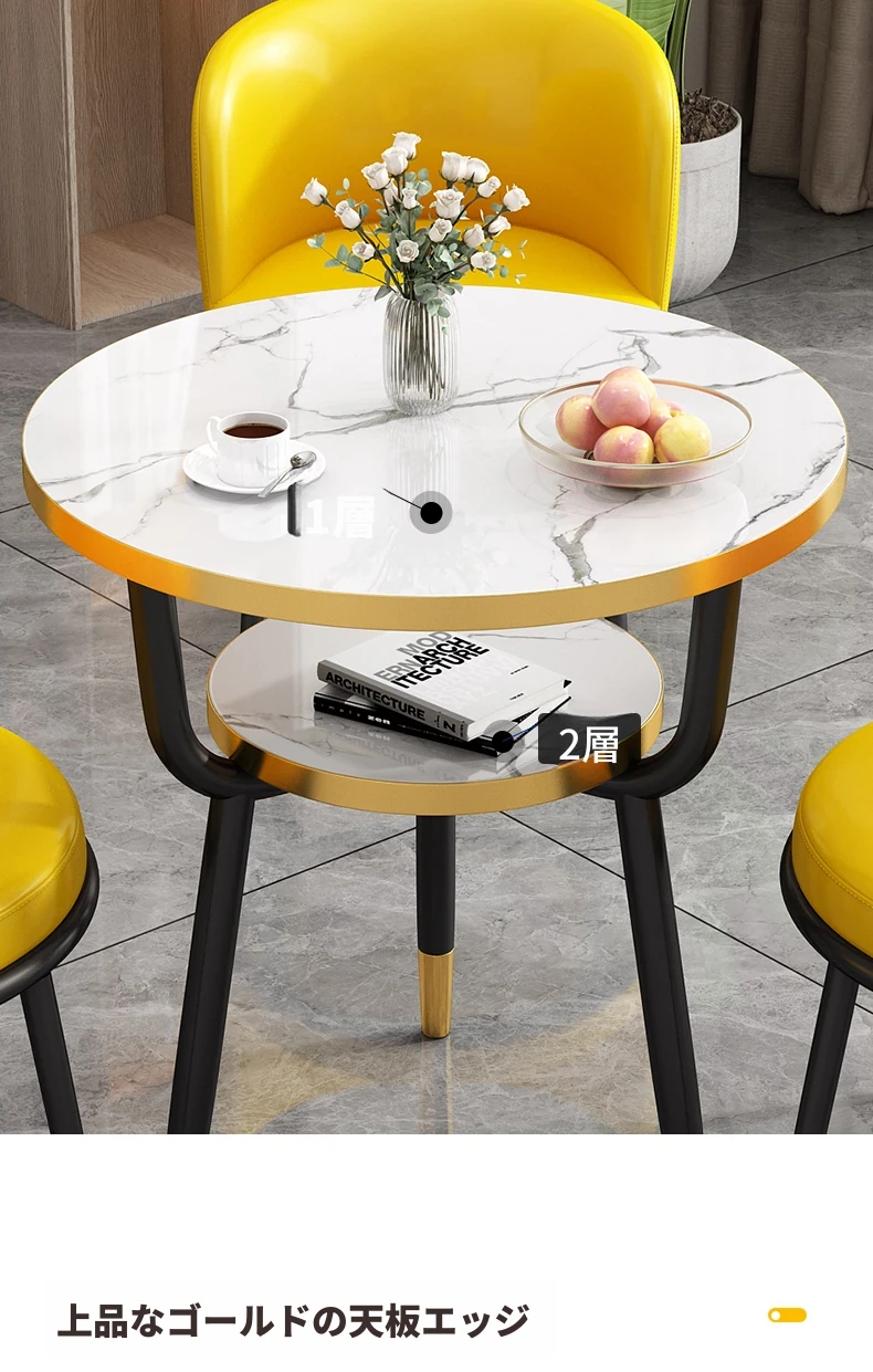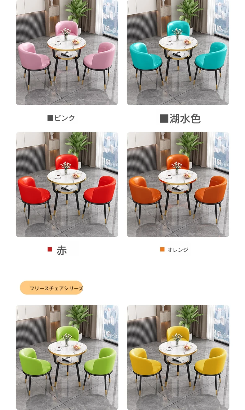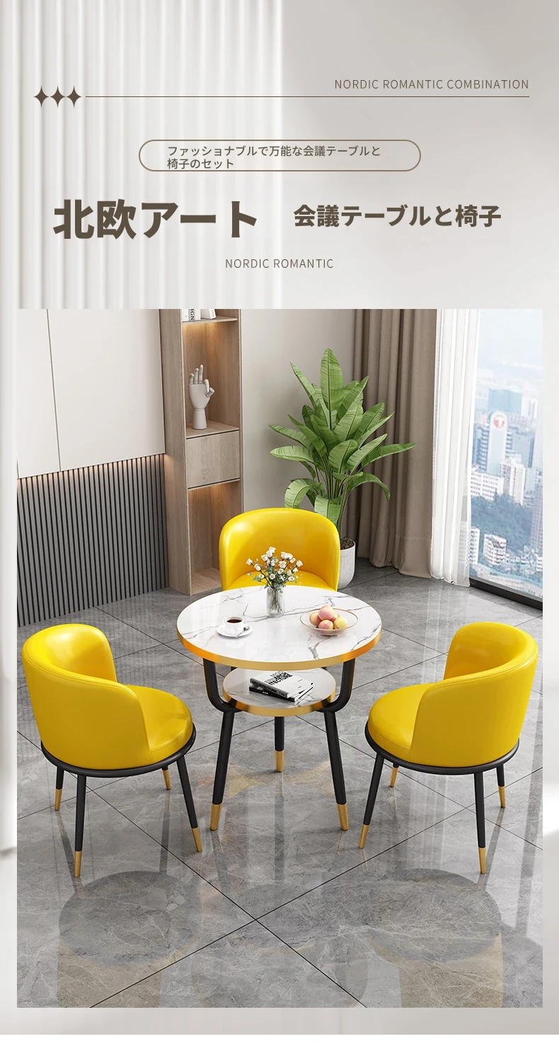シンプルでラグジュアリーなカフェテーブル&チェアセット - おしゃれな店舗やオフィスにぴったり!リラックスできる会議や接待に最適な小さな円形テーブルで、心地よいひとときを提供します。