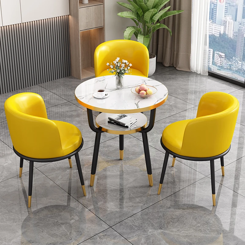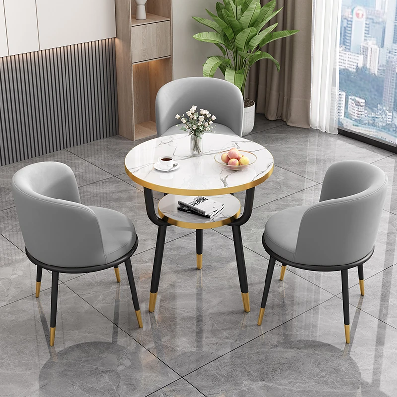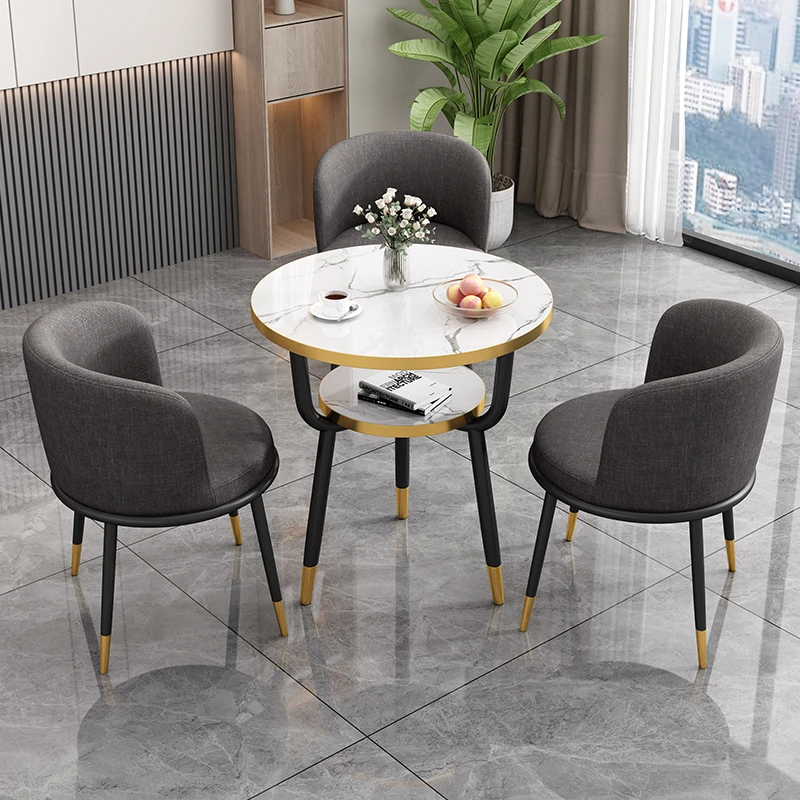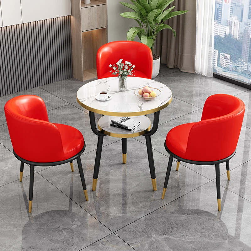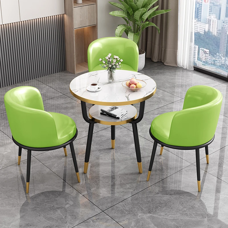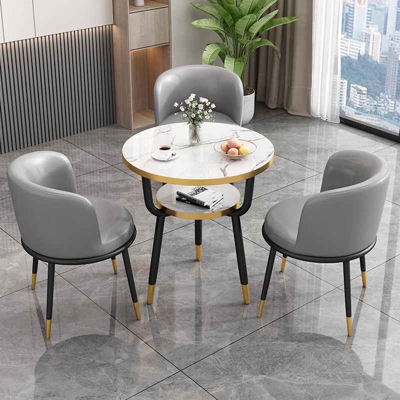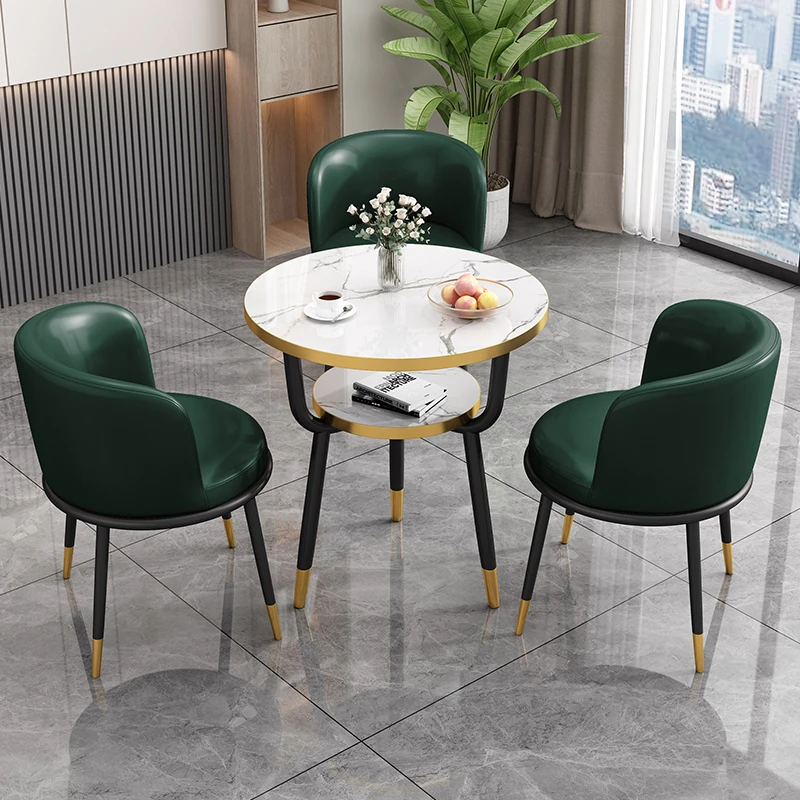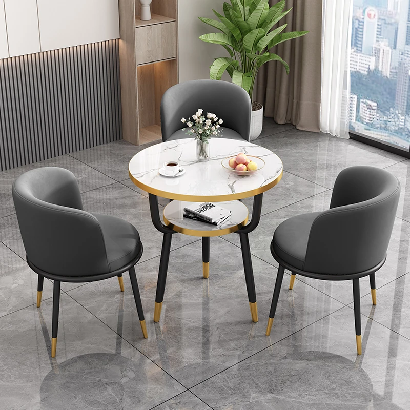 シンプルでラグジュアリーなカフェテーブル&チェアセット - おしゃれな店舗やオフィスにぴったり!リラックスできる会議や接待に最適な小さな円形テーブルで、心地よいひとときを提供します。