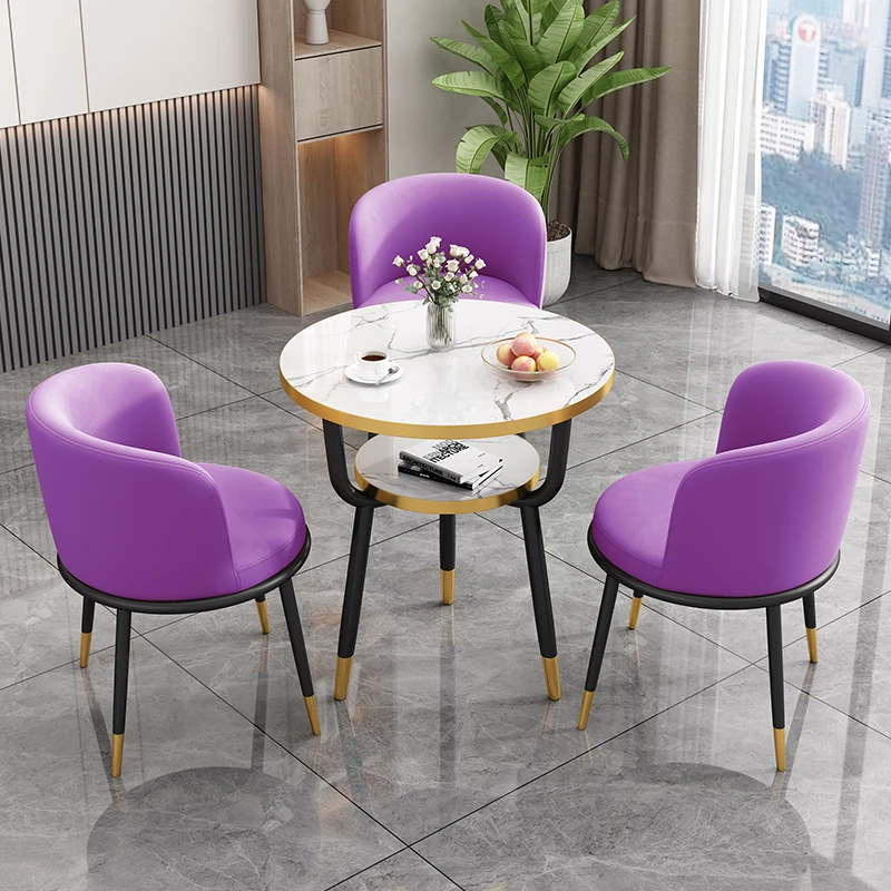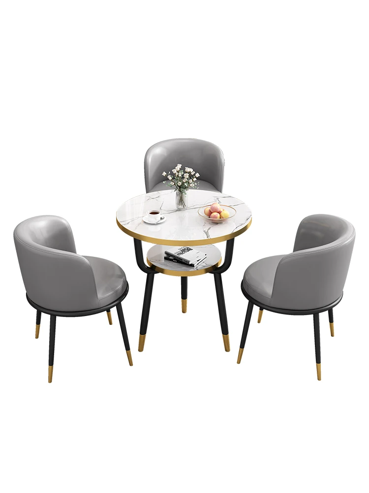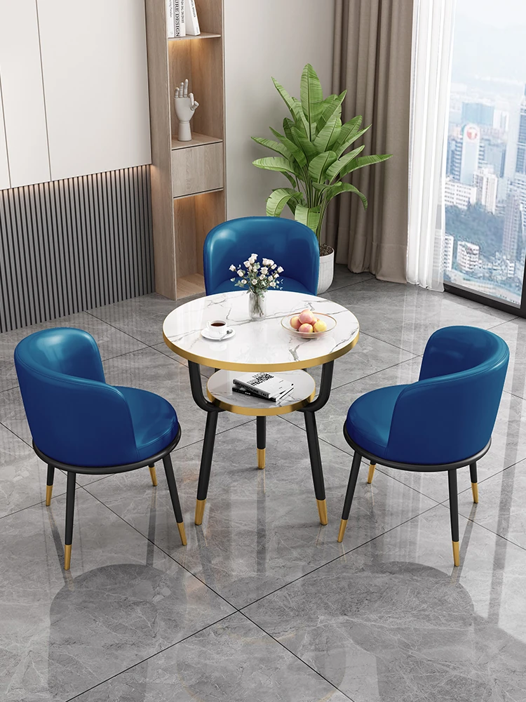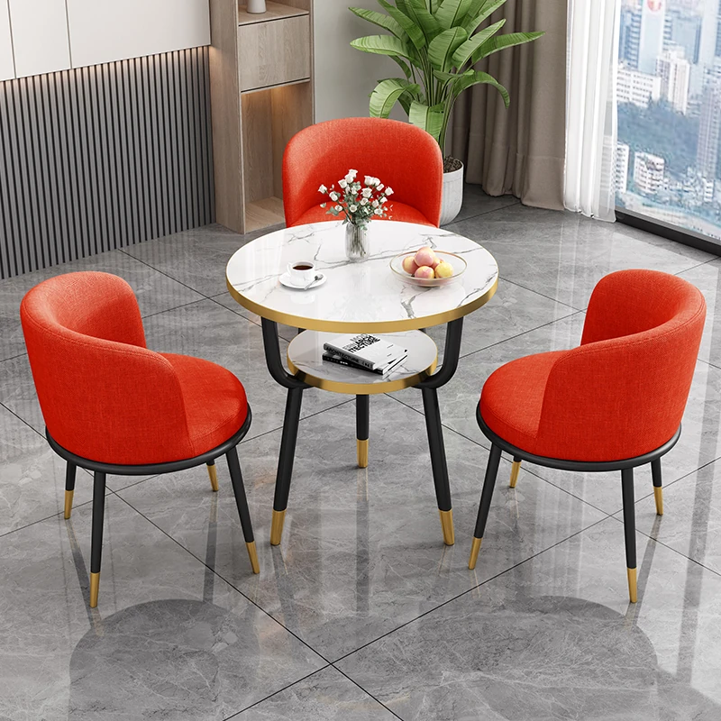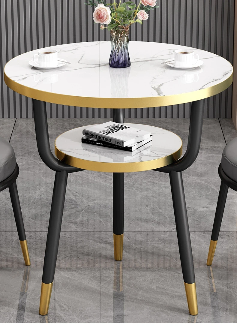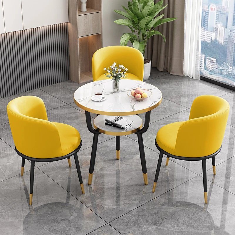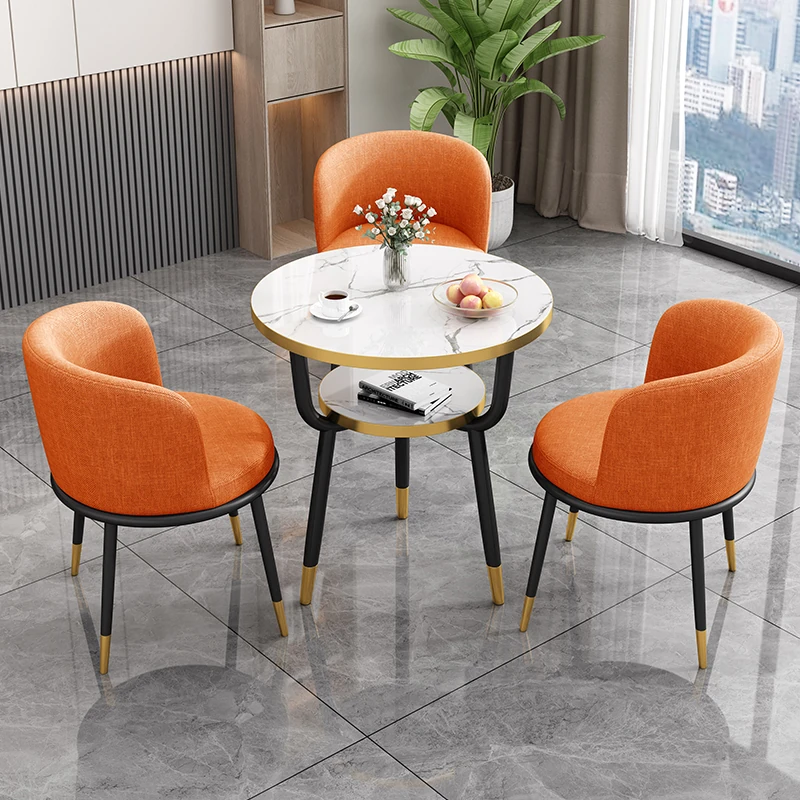 シンプルでラグジュアリーなカフェテーブル&チェアセット - おしゃれな店舗やオフィスにぴったり!リラックスできる会議や接待に最適な小さな円形テーブルで、心地よいひとときを提供します。