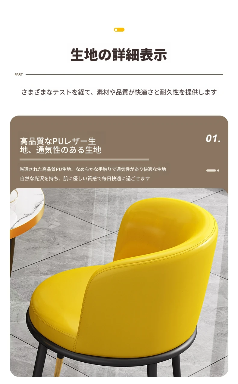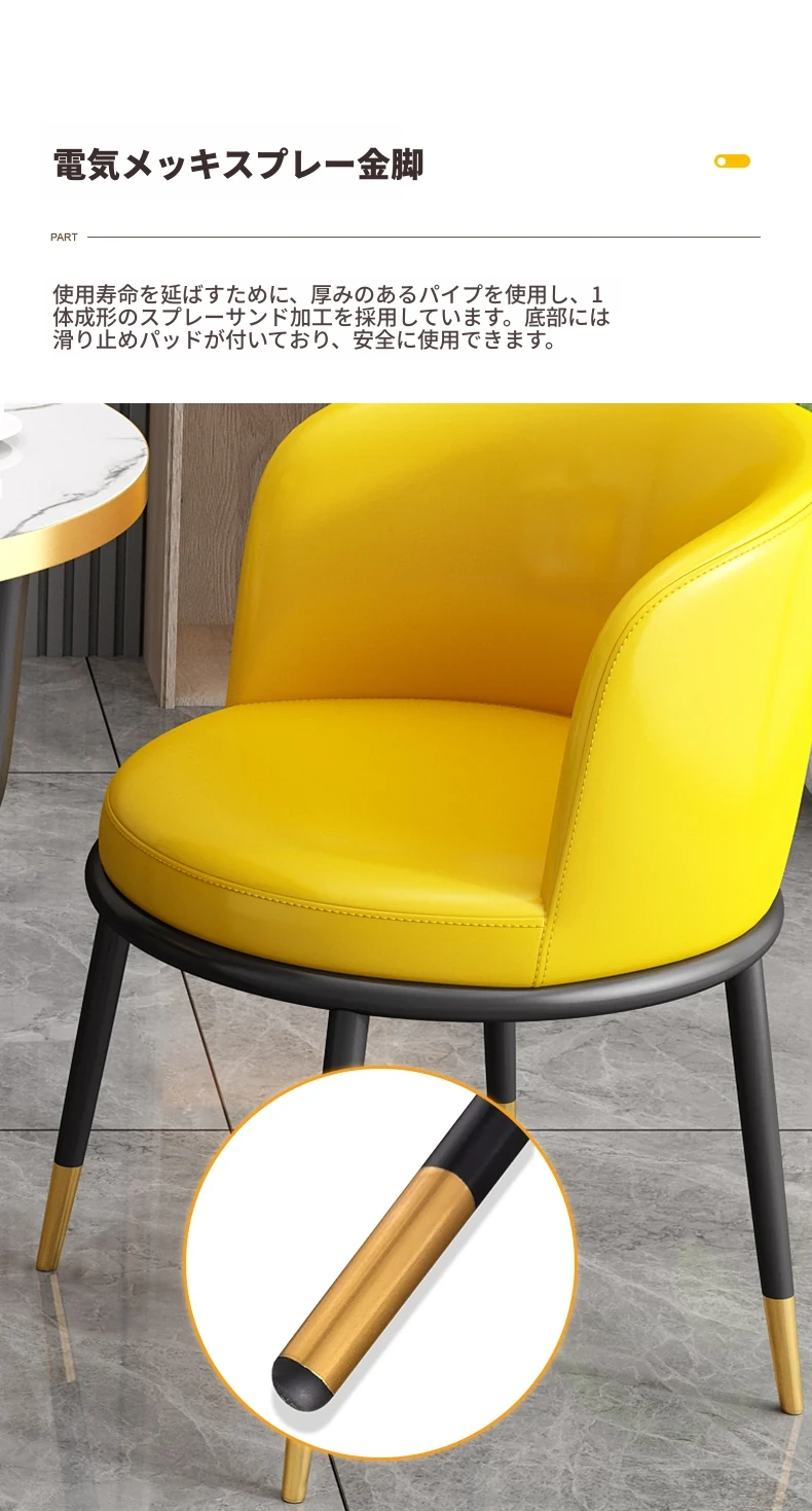 黄色60大理石模様テーブル+3レザー椅子