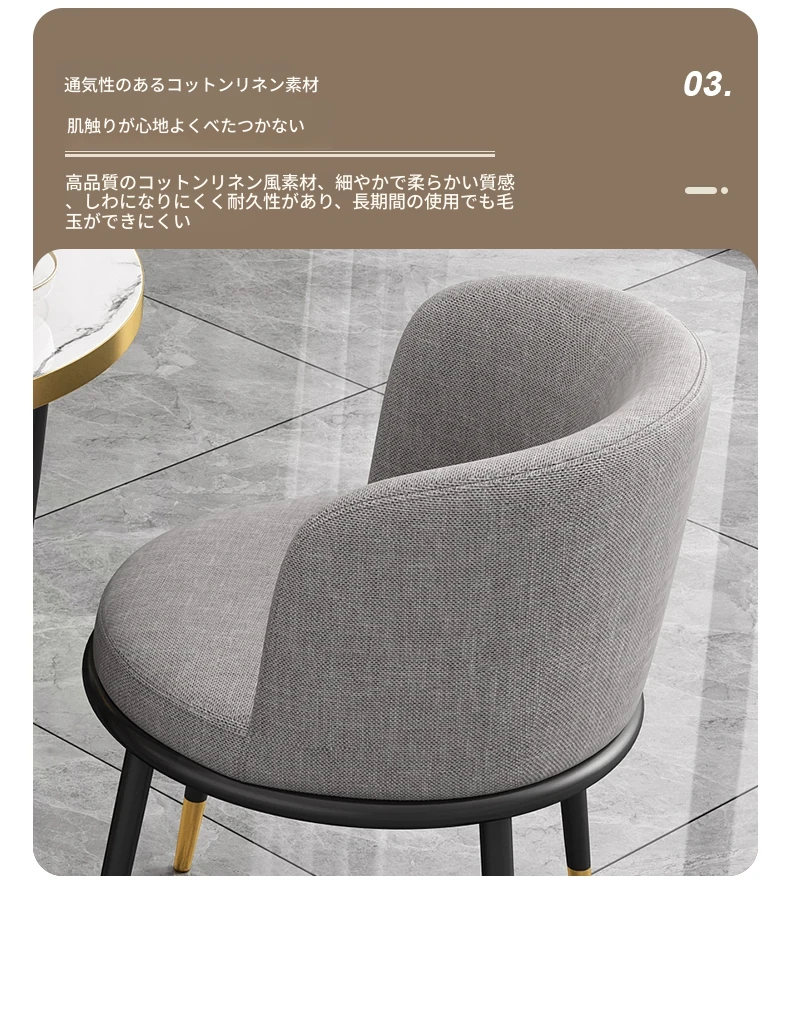 浅灰色60大理石模様テーブル+3コットンリネンチェア