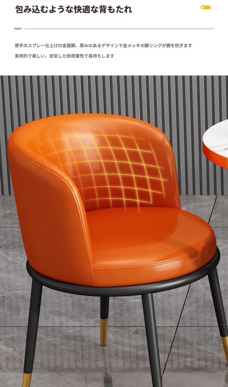 オレンジ色60大理石模様テーブル+3レザー椅子