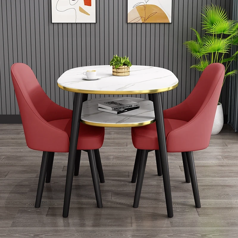レッド80*60オーバル二重テーブル+2レザー椅子