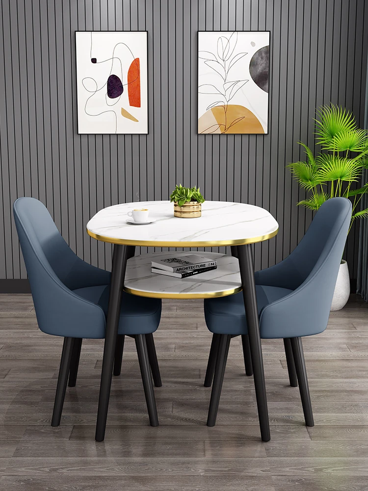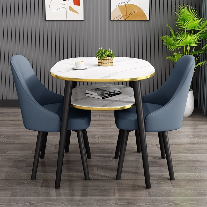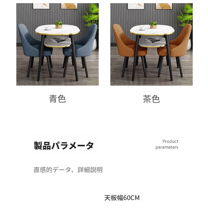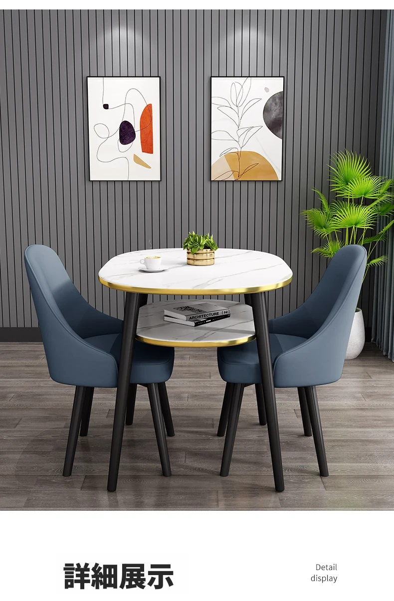 ディープブルー80*60オーバル二重テーブル+2レザー椅子