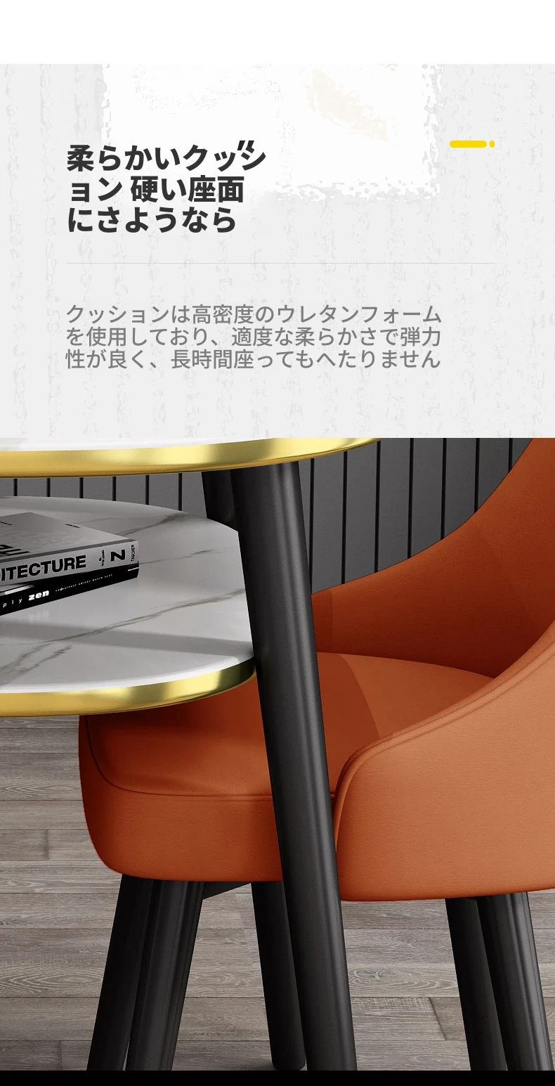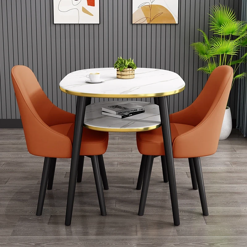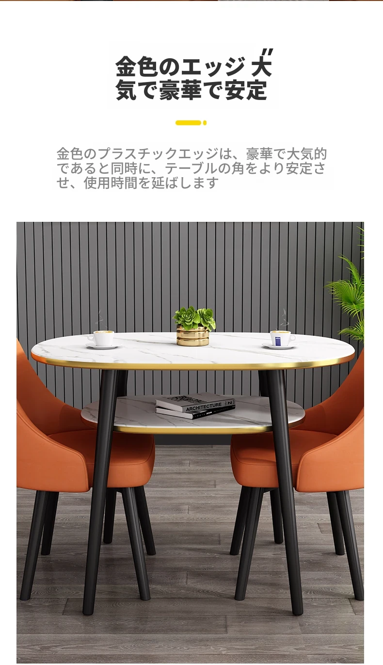オレンジ80*60オーバル二重テーブル+2レザー椅子