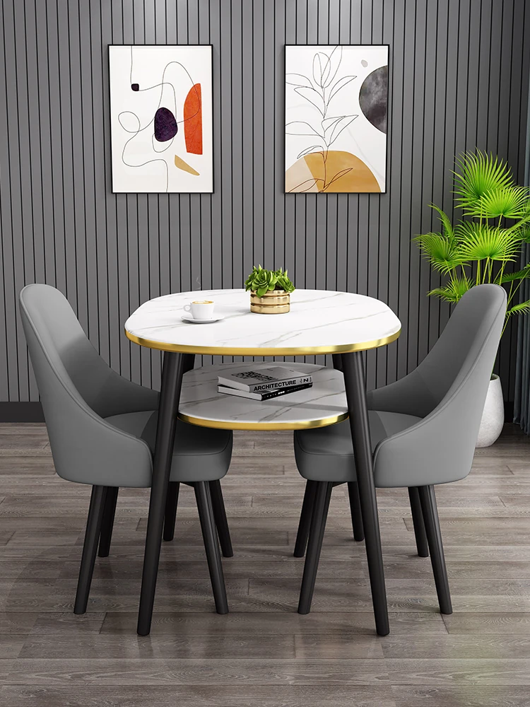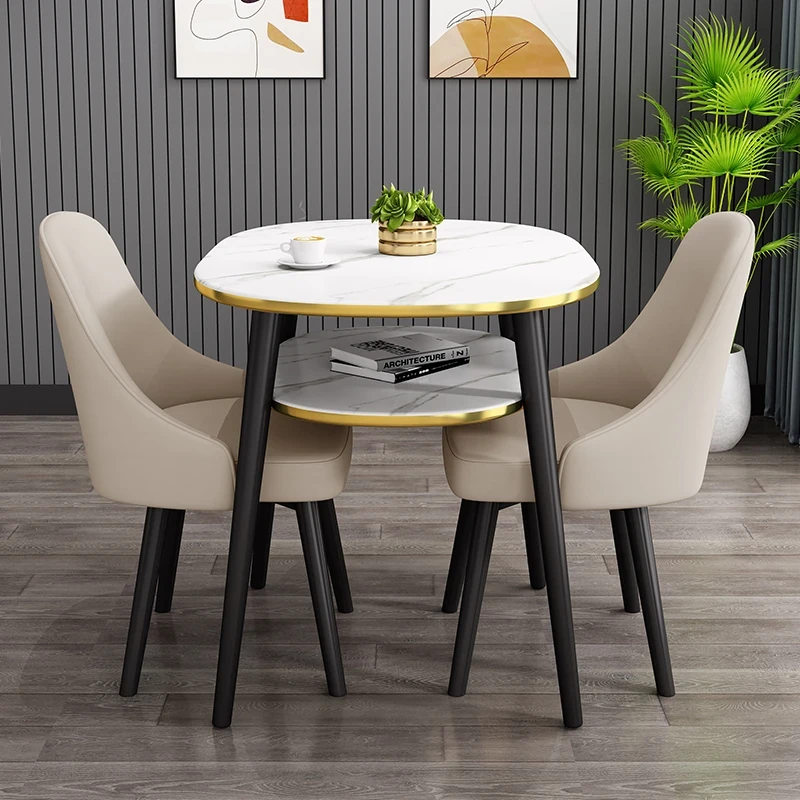 ライトグレー80*60オーバル二重テーブル+2レザー椅子