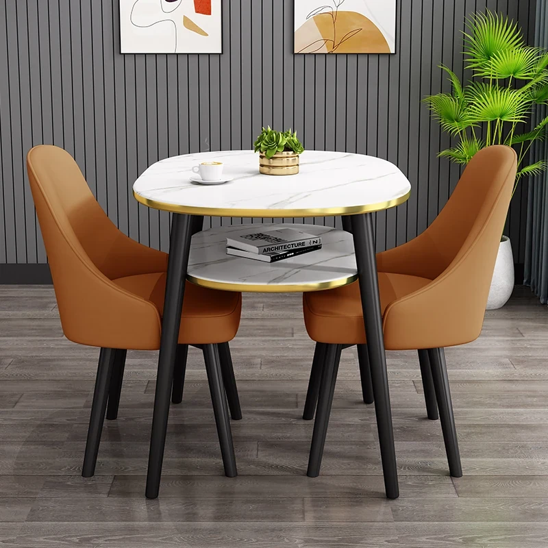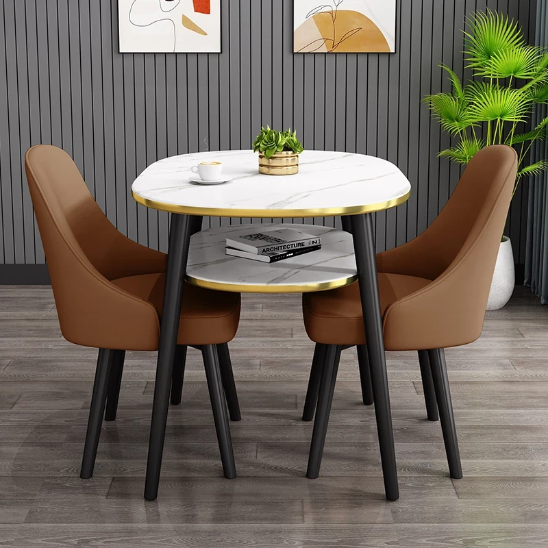 ブラウン80*60オーバル二重テーブル+2レザー椅子