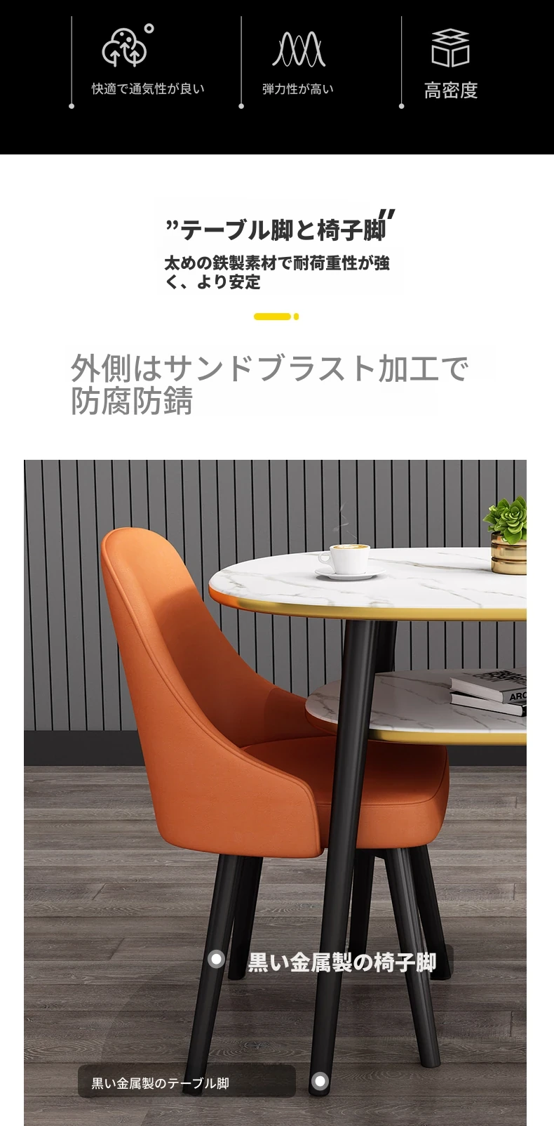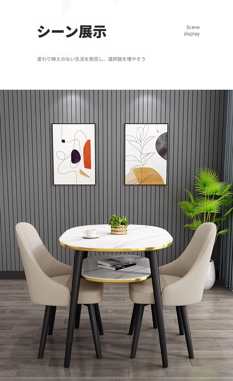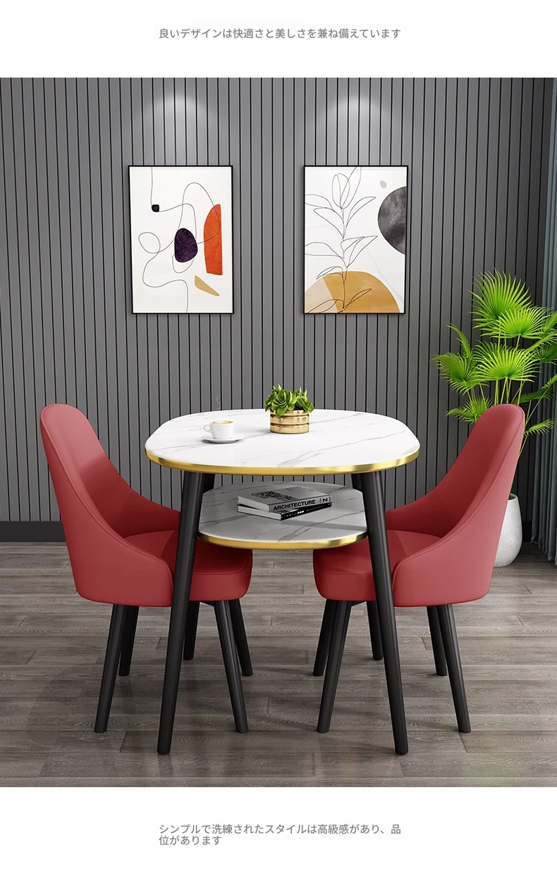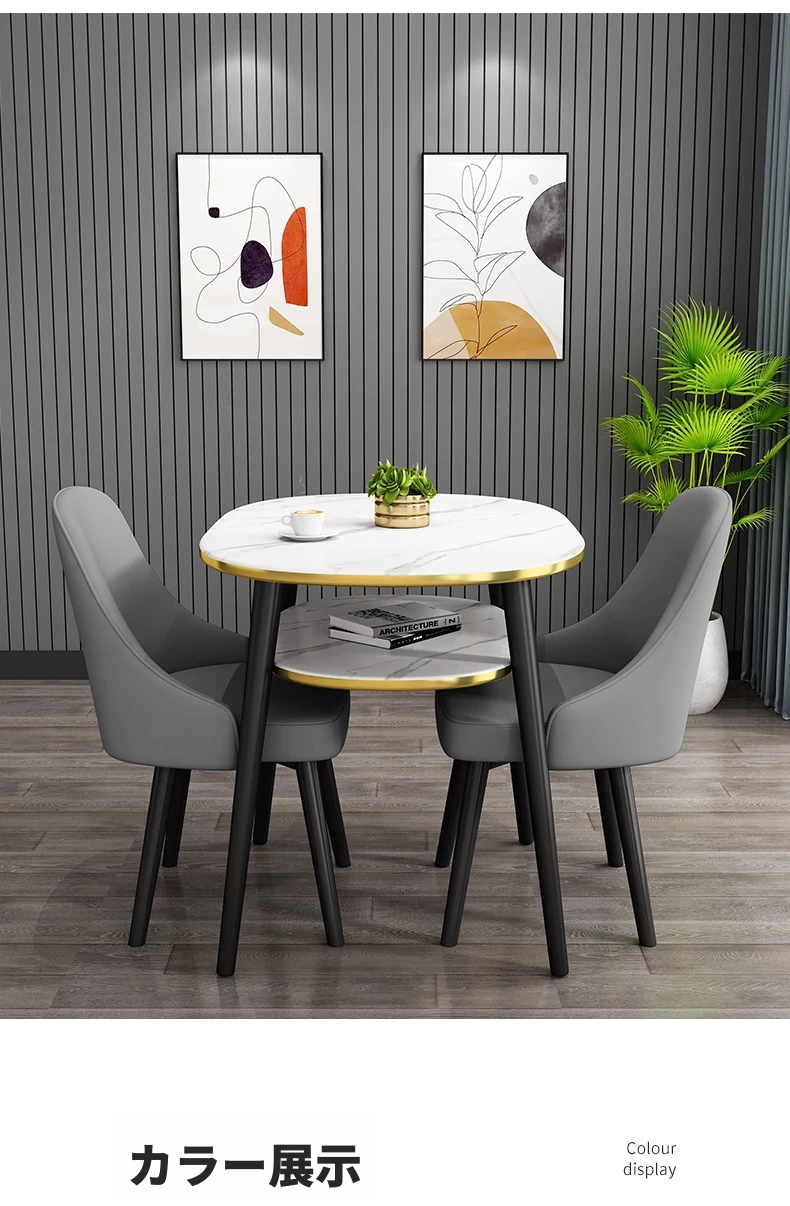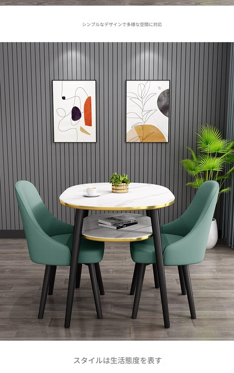 シンプルでスタイリッシュな接客用テーブルセット - 営業所やカフェに最適!リラックスできるひとときを提供する軽やかなラウンドテーブルと椅子のコンビネーション。バルコニーにもぴったりなデザインで、日常を特別な空間に演出します。