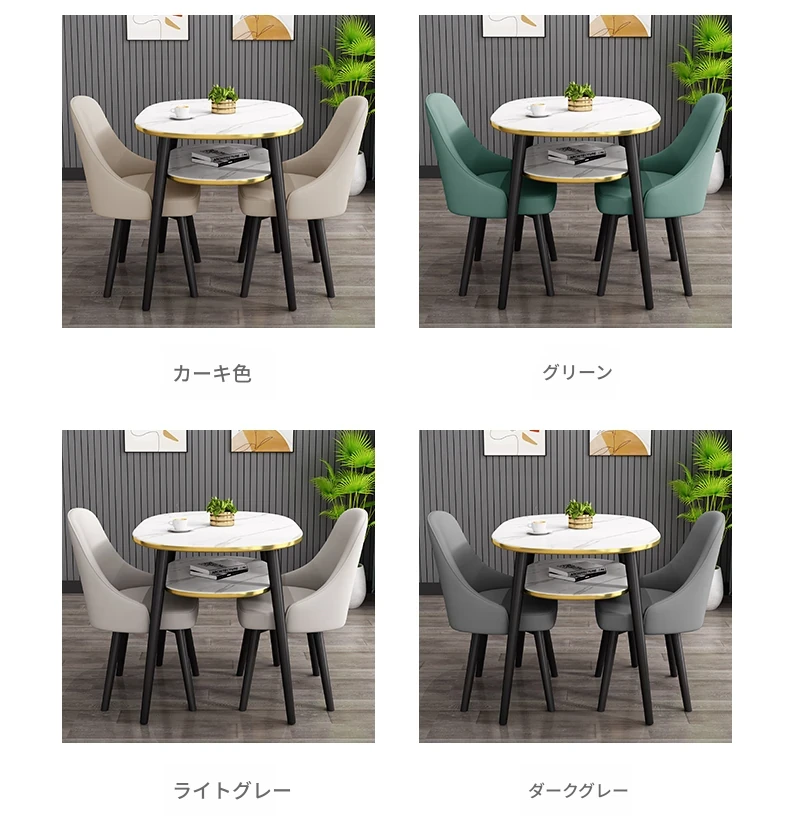カーキ80*60オーバル二重テーブル+2レザー椅子