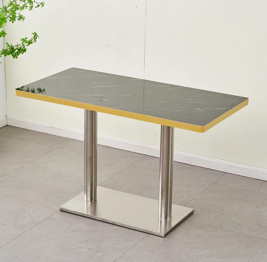 厚手ステンレス鋼プレート120*60黒白模様の金色の縁の長テーブル