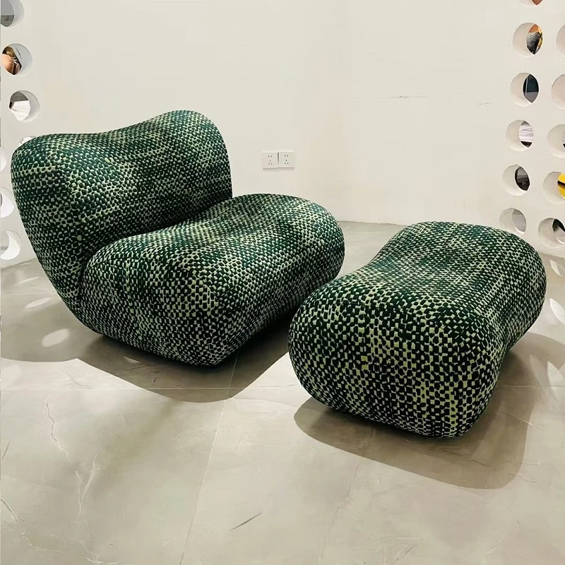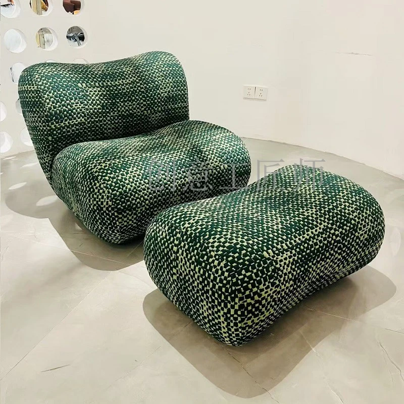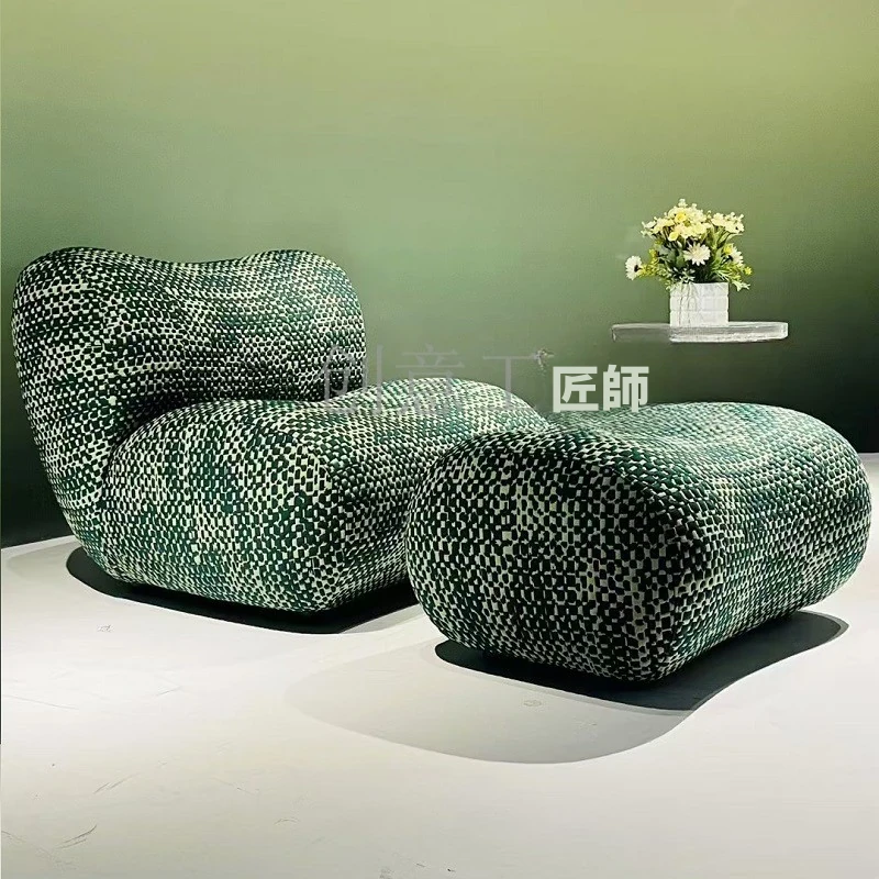 アメリカンカントリースタイルの布製1人掛けソファチェア - コンパクトなサイズで、リビングやバルコニーにぴったり!リラックスできる虎型デザインのラウンジチェアで、くつろぎの時間をお楽しみください。