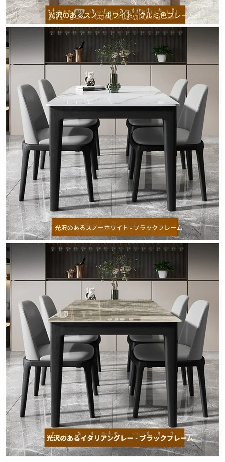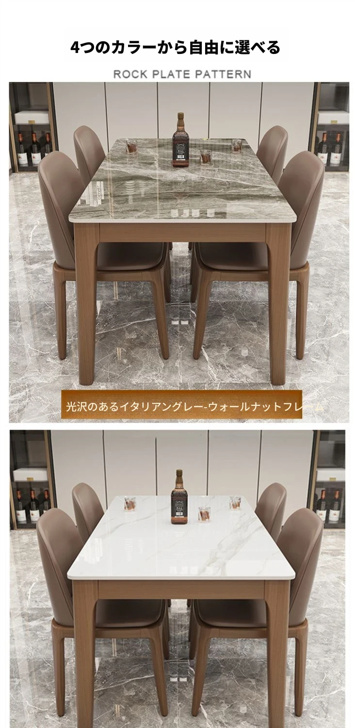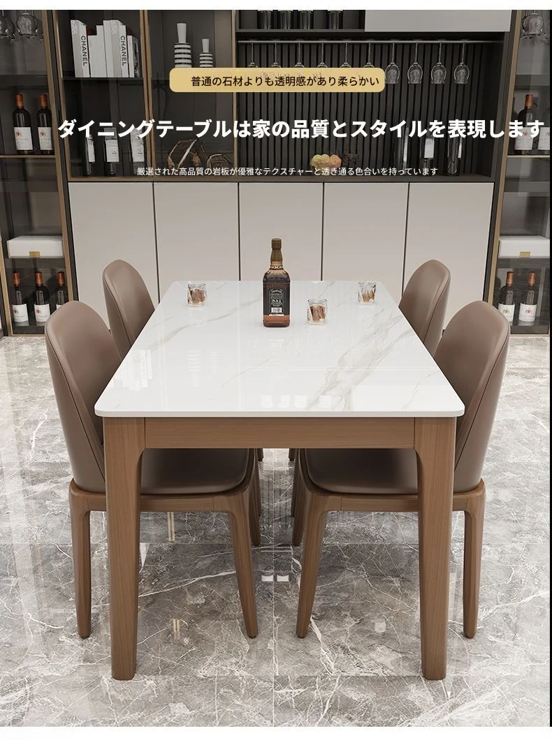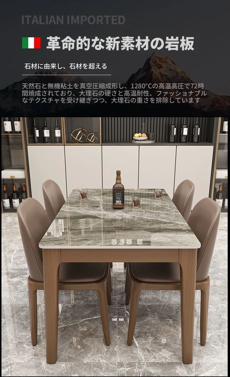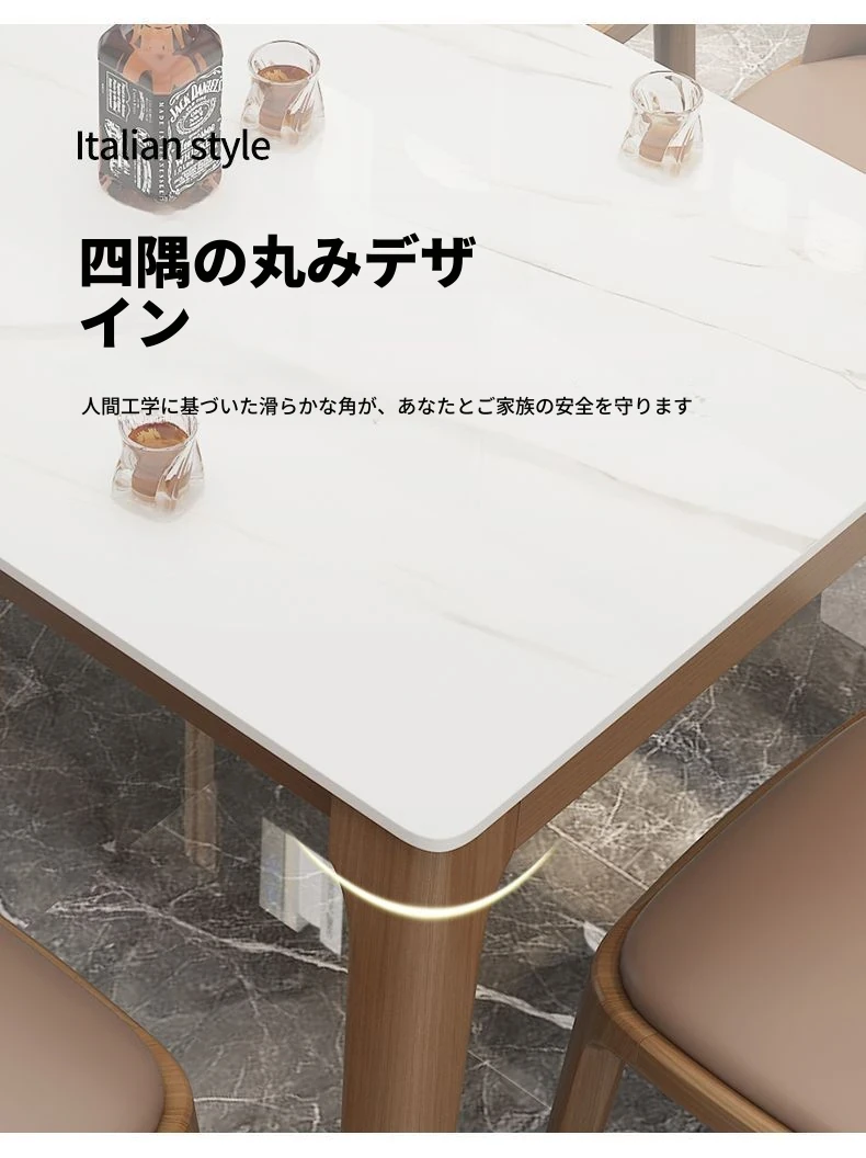 モダンなイタリアンスタイルのダイニングテーブル&チェアセット - 高級感あふれる無垢材使用、コンパクトサイズで小さなお部屋にも最適な厚みのある長方形西洋風テーブル。