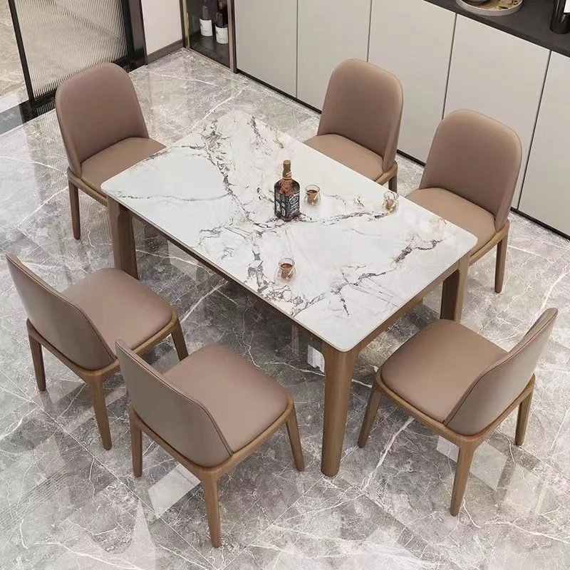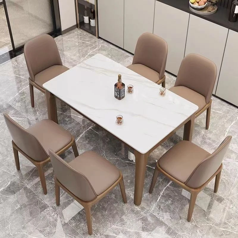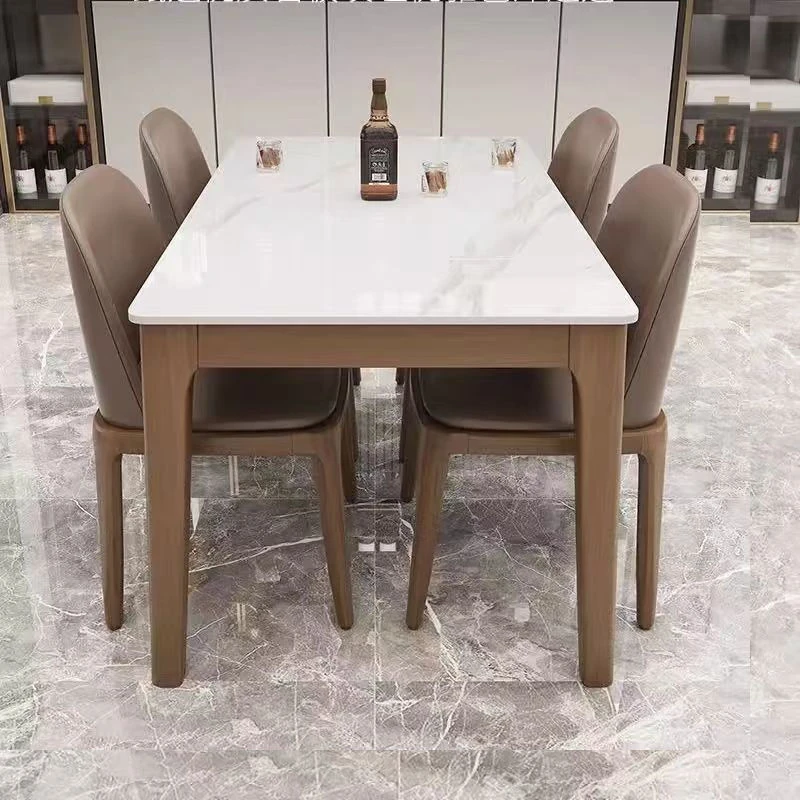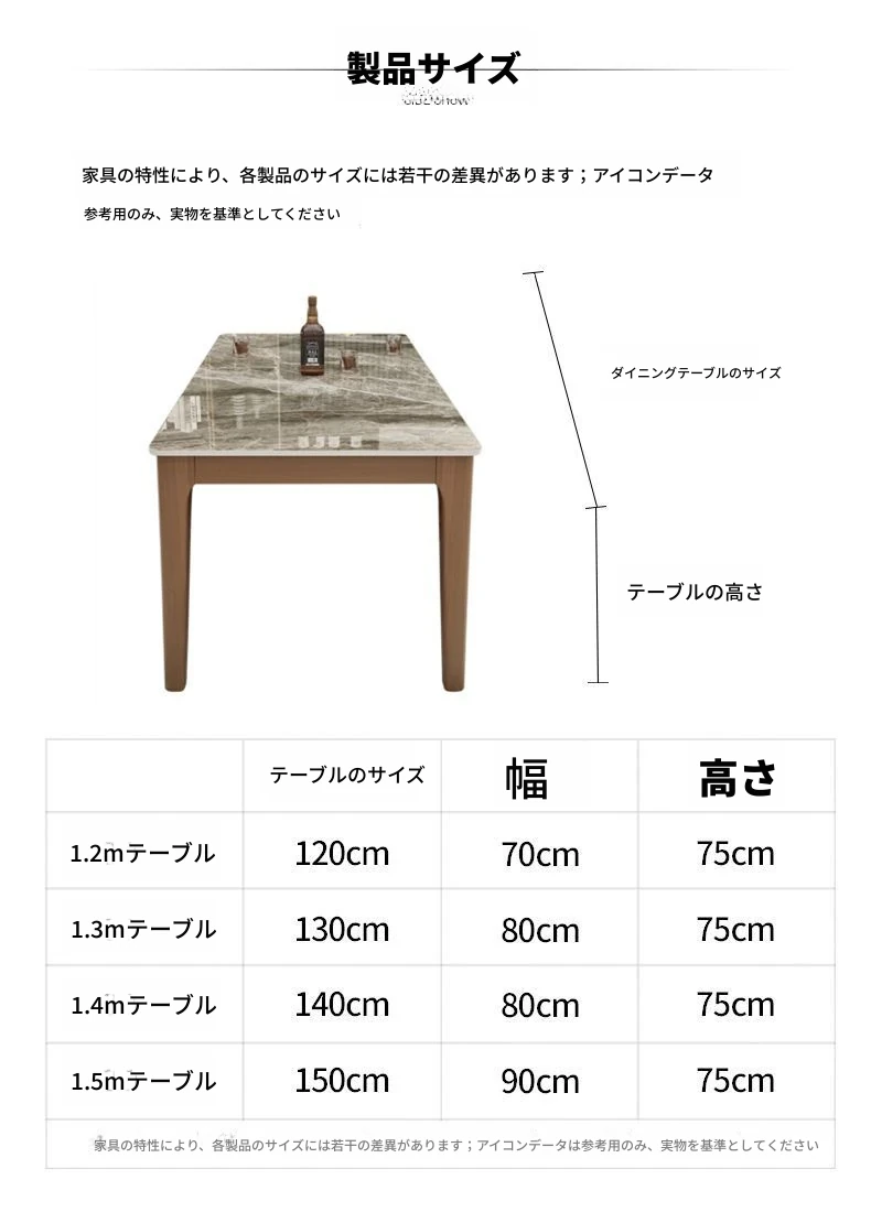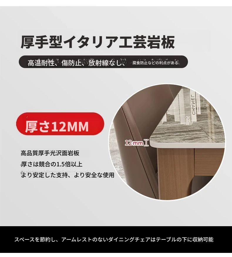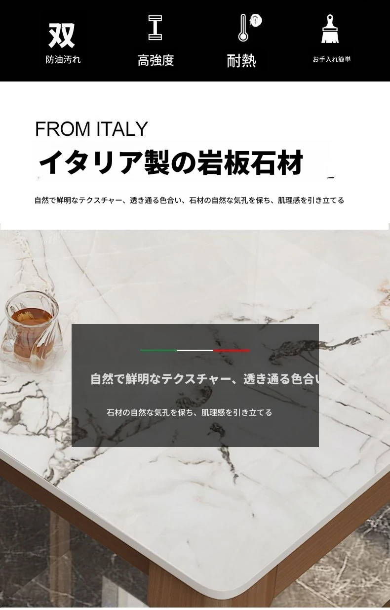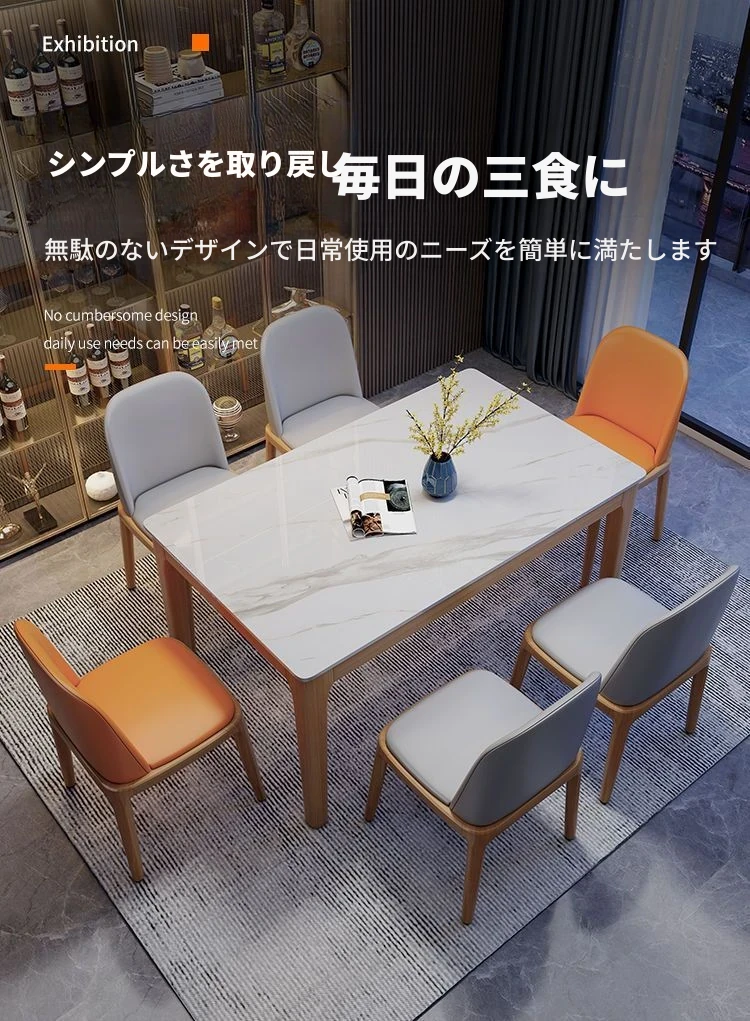 モダンなイタリアンスタイルのダイニングテーブル&チェアセット - 高級感あふれる無垢材使用、コンパクトサイズで小さなお部屋にも最適な厚みのある長方形西洋風テーブル。