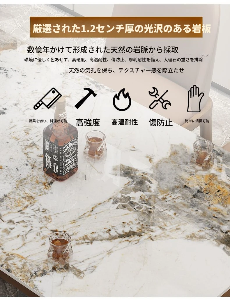 1.2メートル+4オクタゴンチェア/黒色フレーム/雪山白光沢岩板【横梁付き】