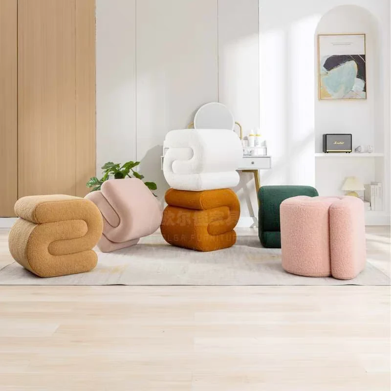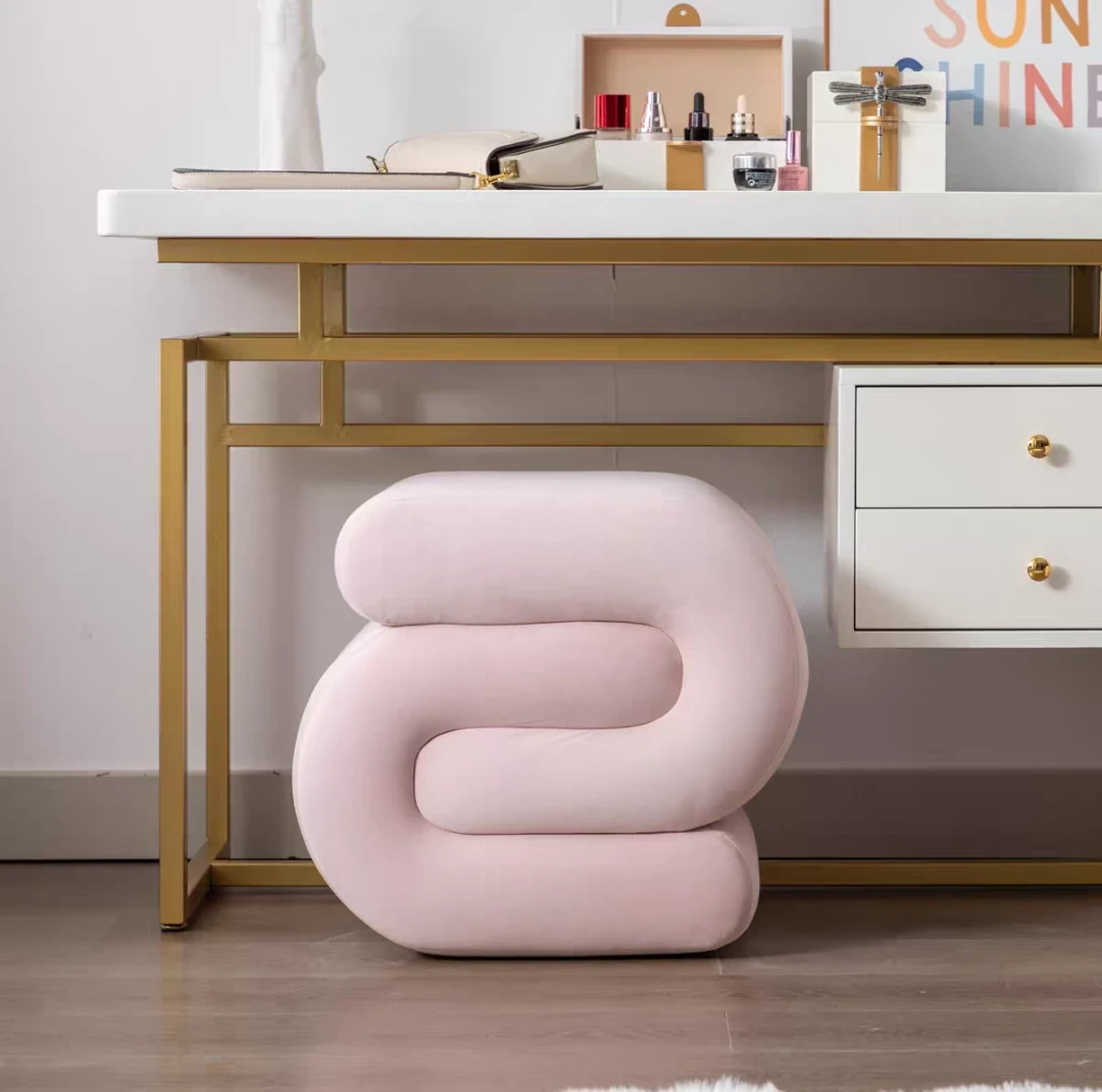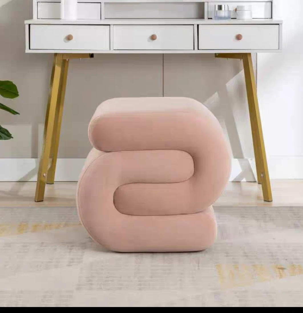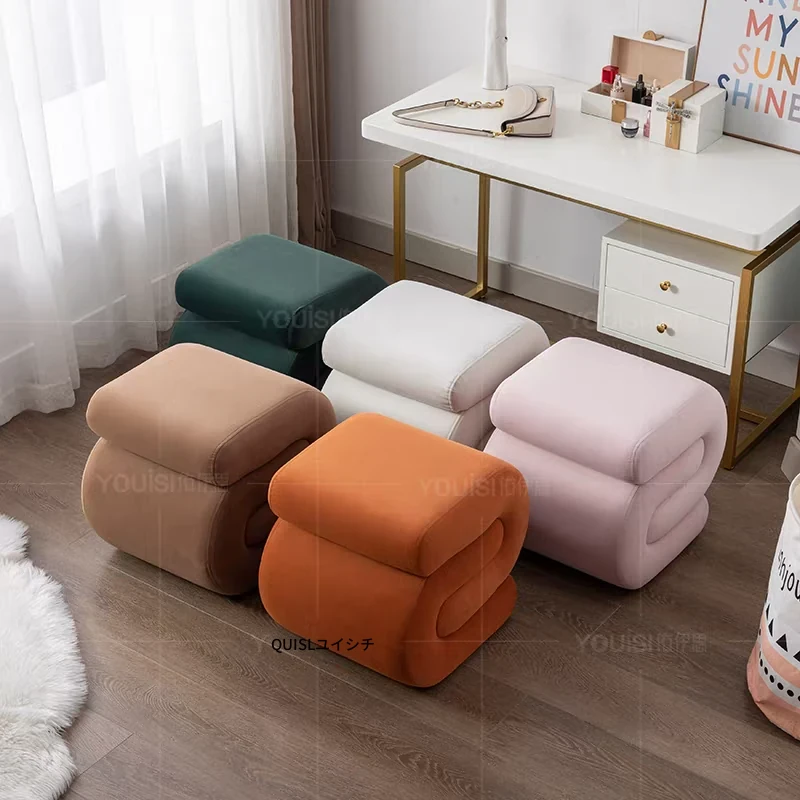 モダンミニマリストデザインのクリエイティブなフロッキングスツール - リビングルーム、書斎、玄関に最適な快適なシューズチェンジ&メイクアップ用スツール!あなたの空間をスタイリッシュに演出します。